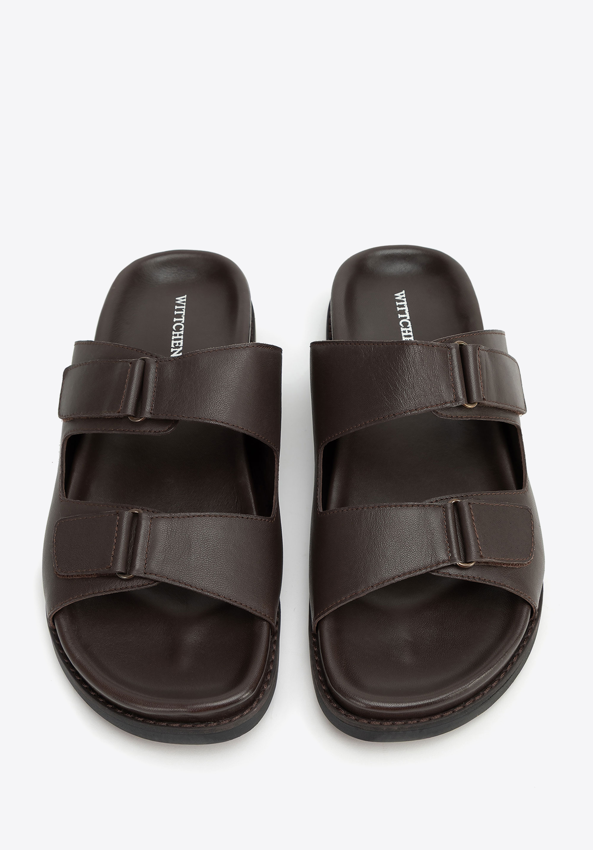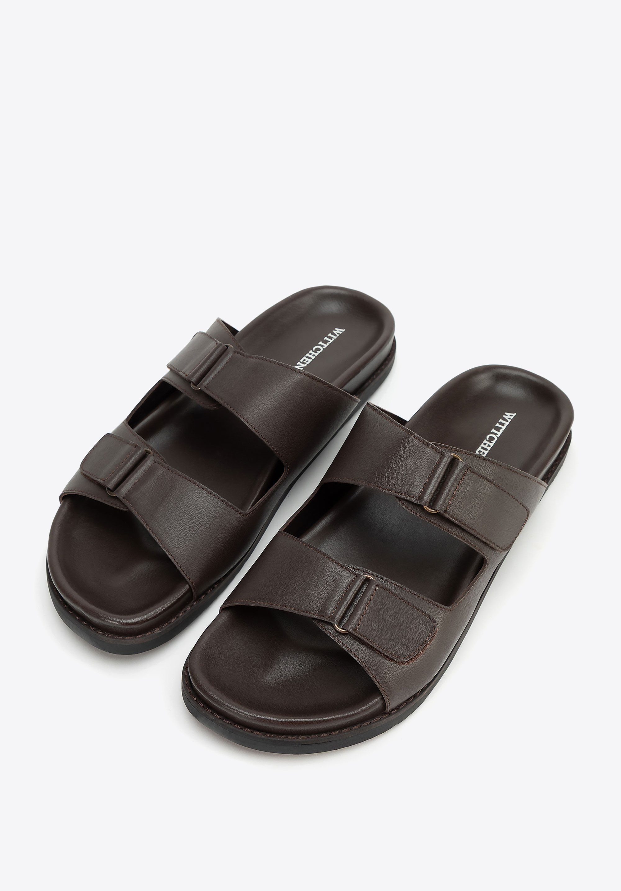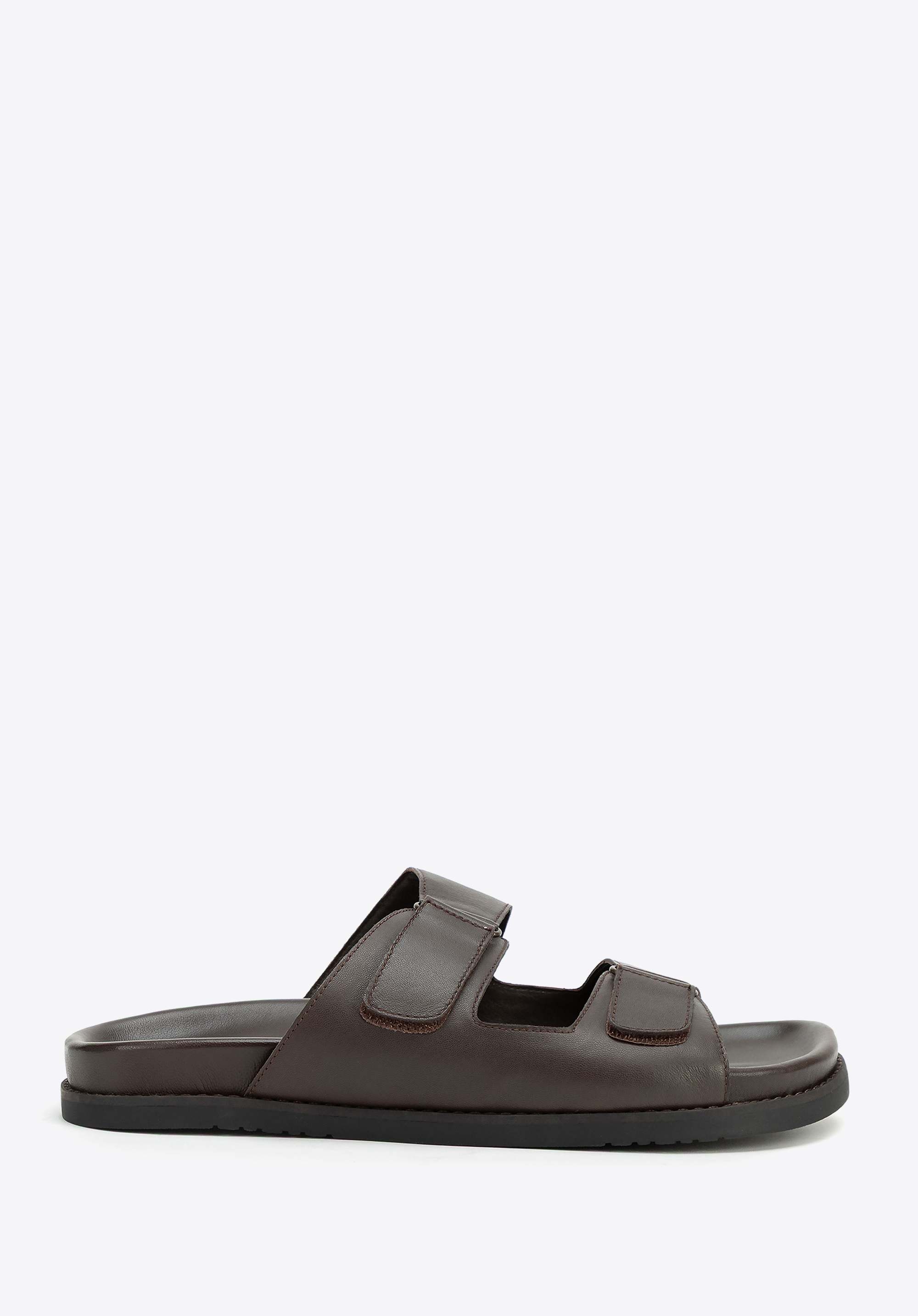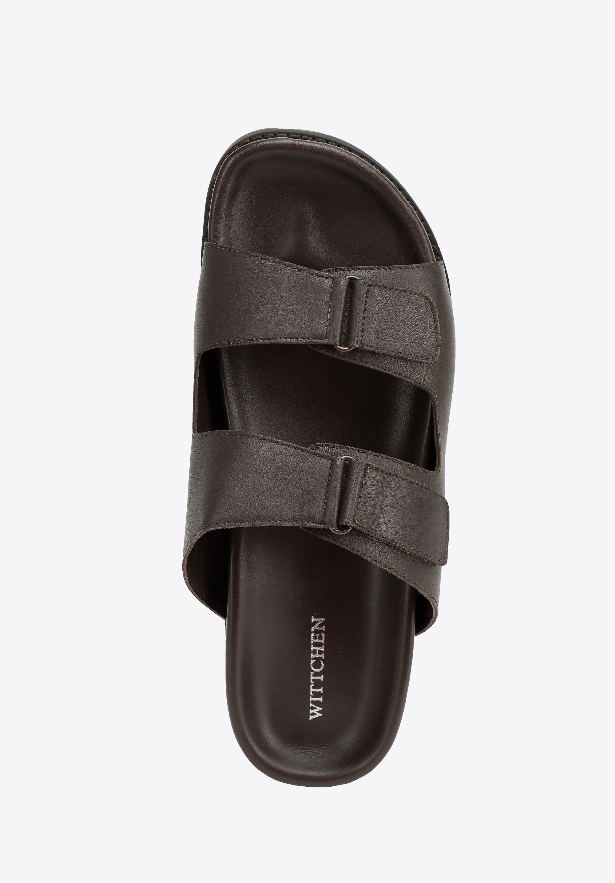 Egyszerű kialakítás, amely önmagáért beszél. Ez a férfi papucs a kényelem és a stílus tökéletes kombinációja modern változatban. Kiváló minőségű báránybőrből készült – belül és kívül egyaránt – kivételes puhaságot és kényelmet garantálnak minden lépésnél. A két párhuzamos tépőzáras pánt minimalista, letisztult megjelenést kölcsönöz nekik, és gyors és egyszerű viselést tesz lehetővé.