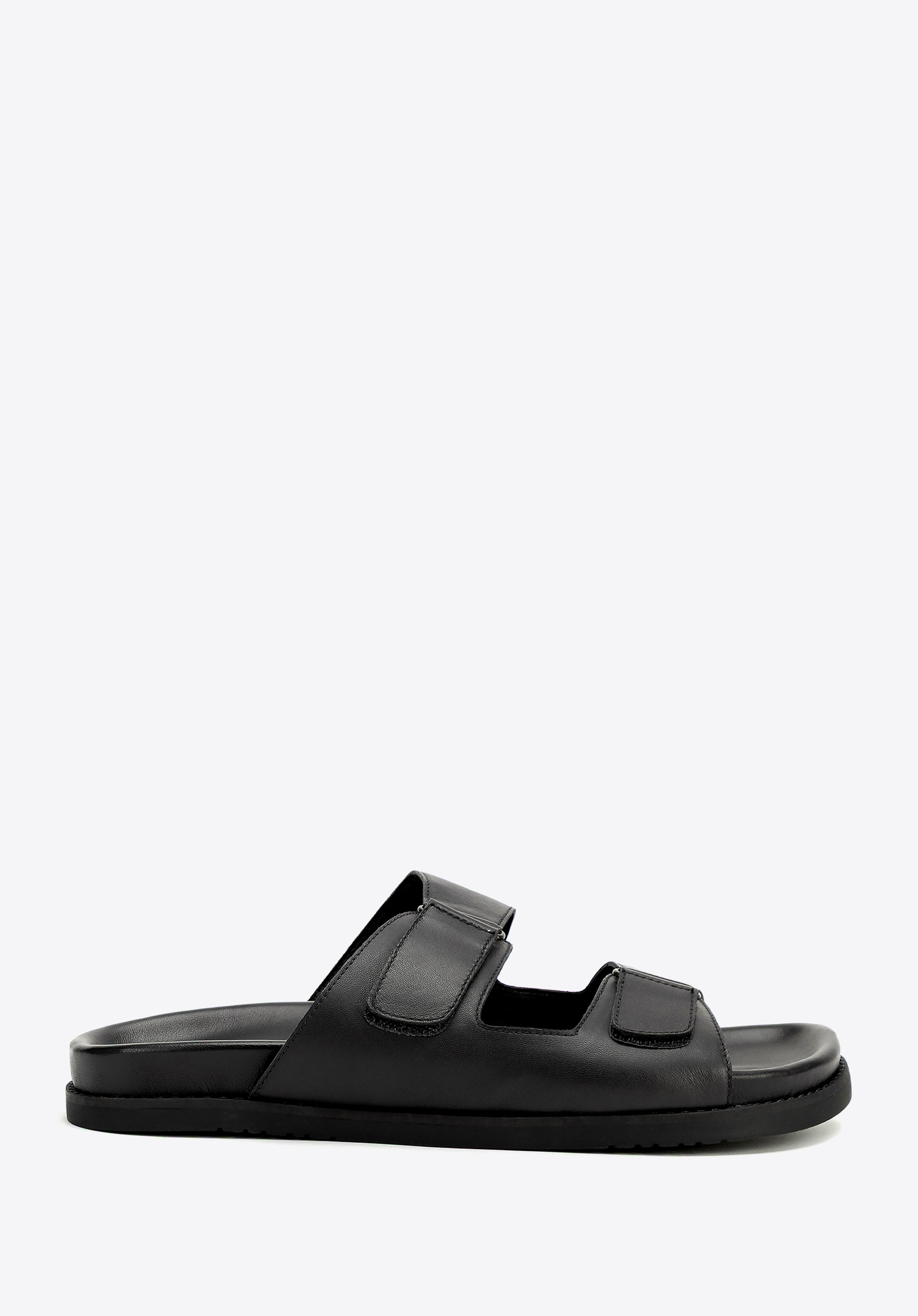 Egyszerű kialakítás, amely önmagáért beszél. Ez a férfi papucs a kényelem és a stílus tökéletes kombinációja modern változatban. Kiváló minőségű báránybőrből készült – belül és kívül egyaránt – kivételes puhaságot és kényelmet garantálnak minden lépésnél. A két párhuzamos tépőzáras pánt minimalista, letisztult megjelenést kölcsönöz nekik, és gyors és egyszerű viselést tesz lehetővé.