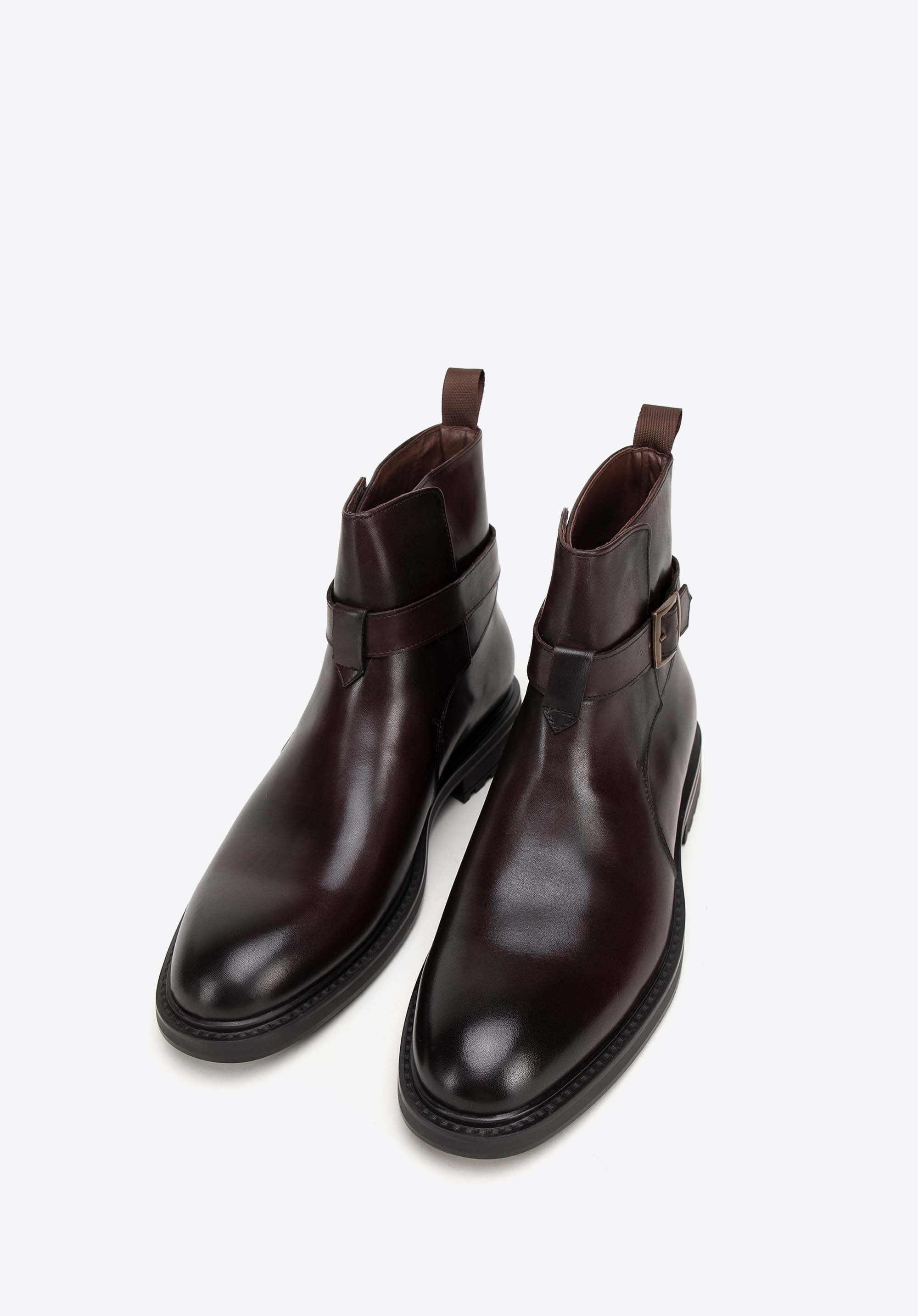 Férfi bőr bokacsizma csatos pánttal- klasszikus dizájn és kényelmes viselet