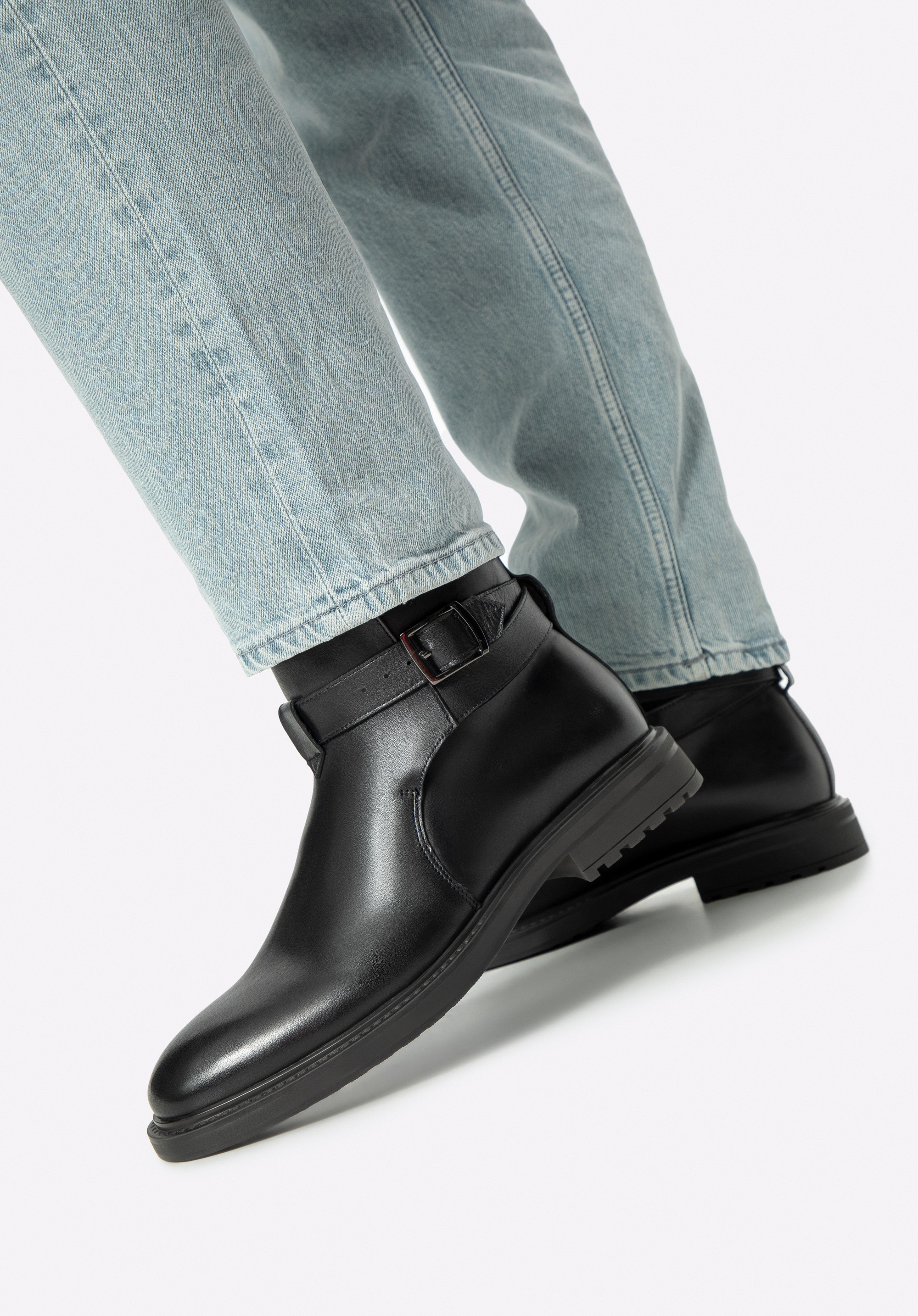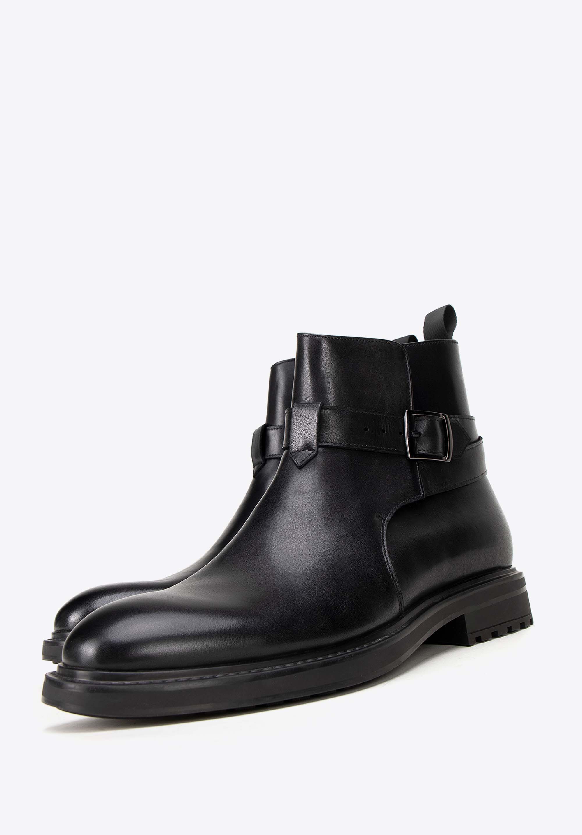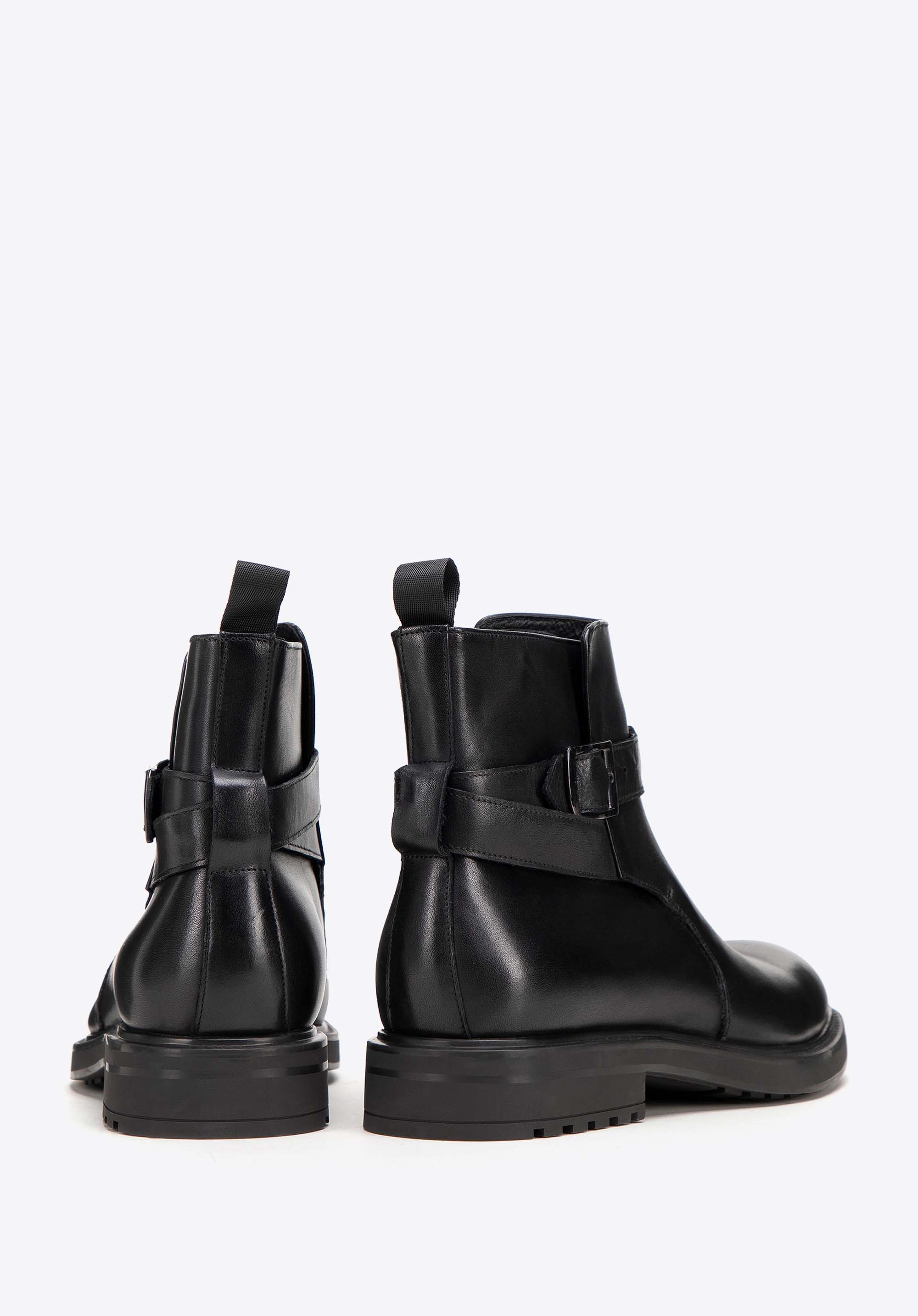 Férfi bőr bokacsizma csatos pánttal- klasszikus dizájn és kényelmes viselet