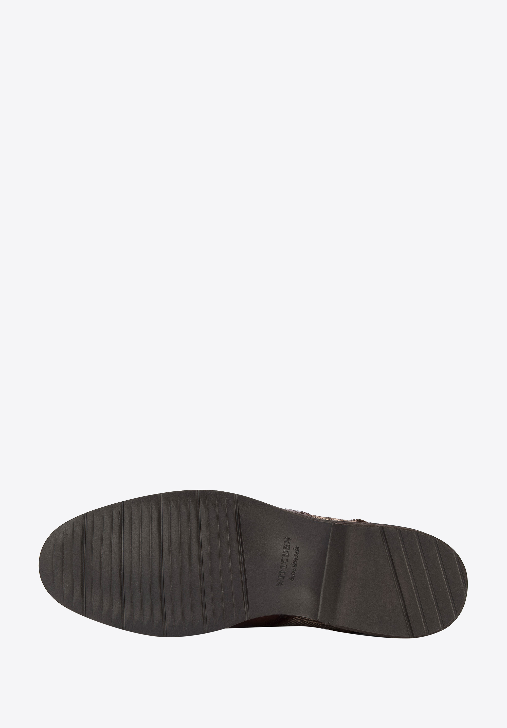 Ezek a brogues stílusú cipők elegáns kiegészítők egyedi kiadásban. A klasszikus dizájnt halszálka mintás szövet teszi változatossá, amely kiváló minőségű természetes bőrrel párosul. Ezen kívül perforációkkal, fogazott szegélyekkel és "W" vágással rendelkezik az orrán. Tökéletesen passzolnak elegáns és hétköznapi ruhákhoz is: például öltönyhöz vagy kordbársony nadrághoz és pulóverhez. Ez a halszálka mintájú férfi bőr brogues cipő időtlen választás minden stílusos férfi számára.
