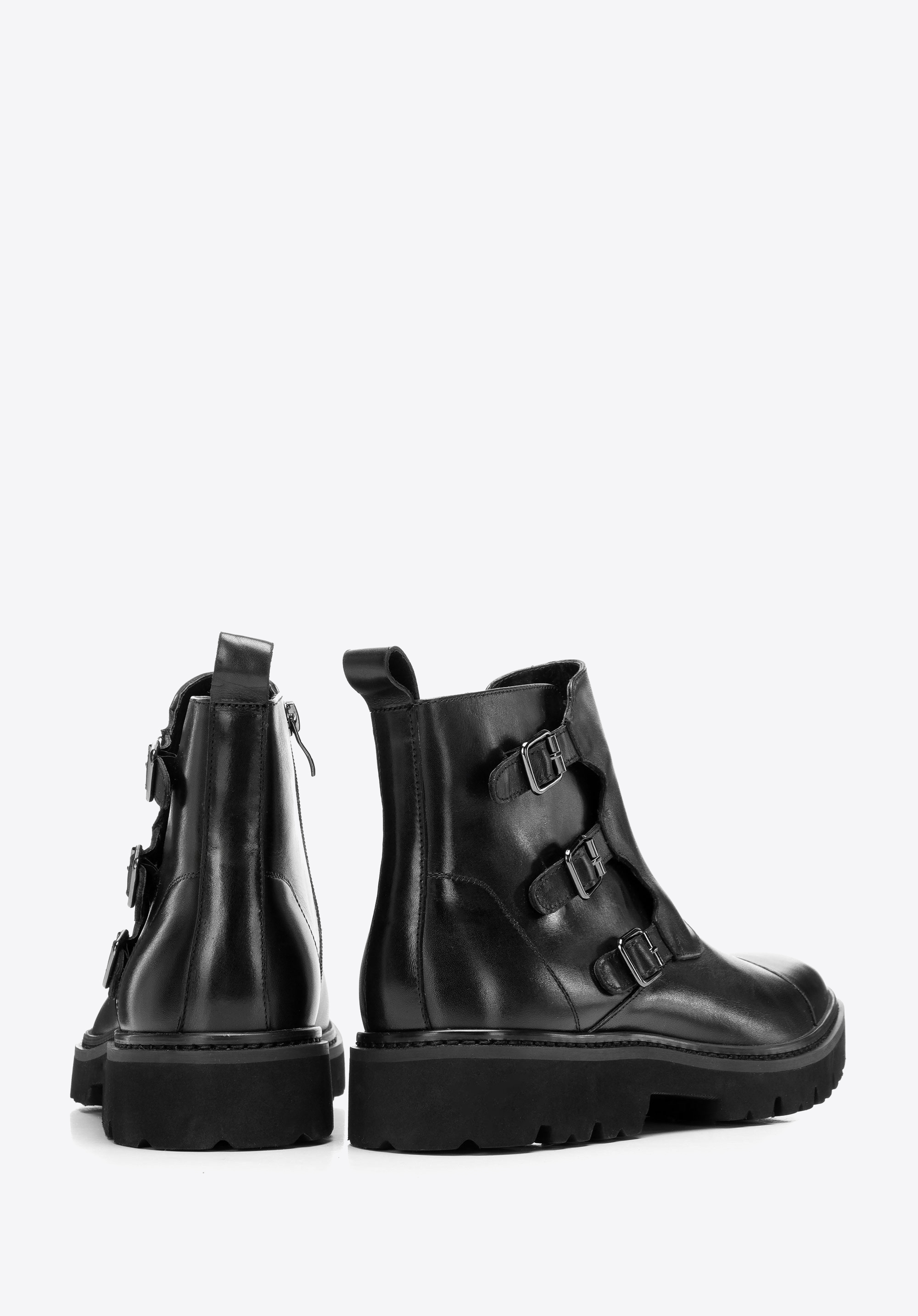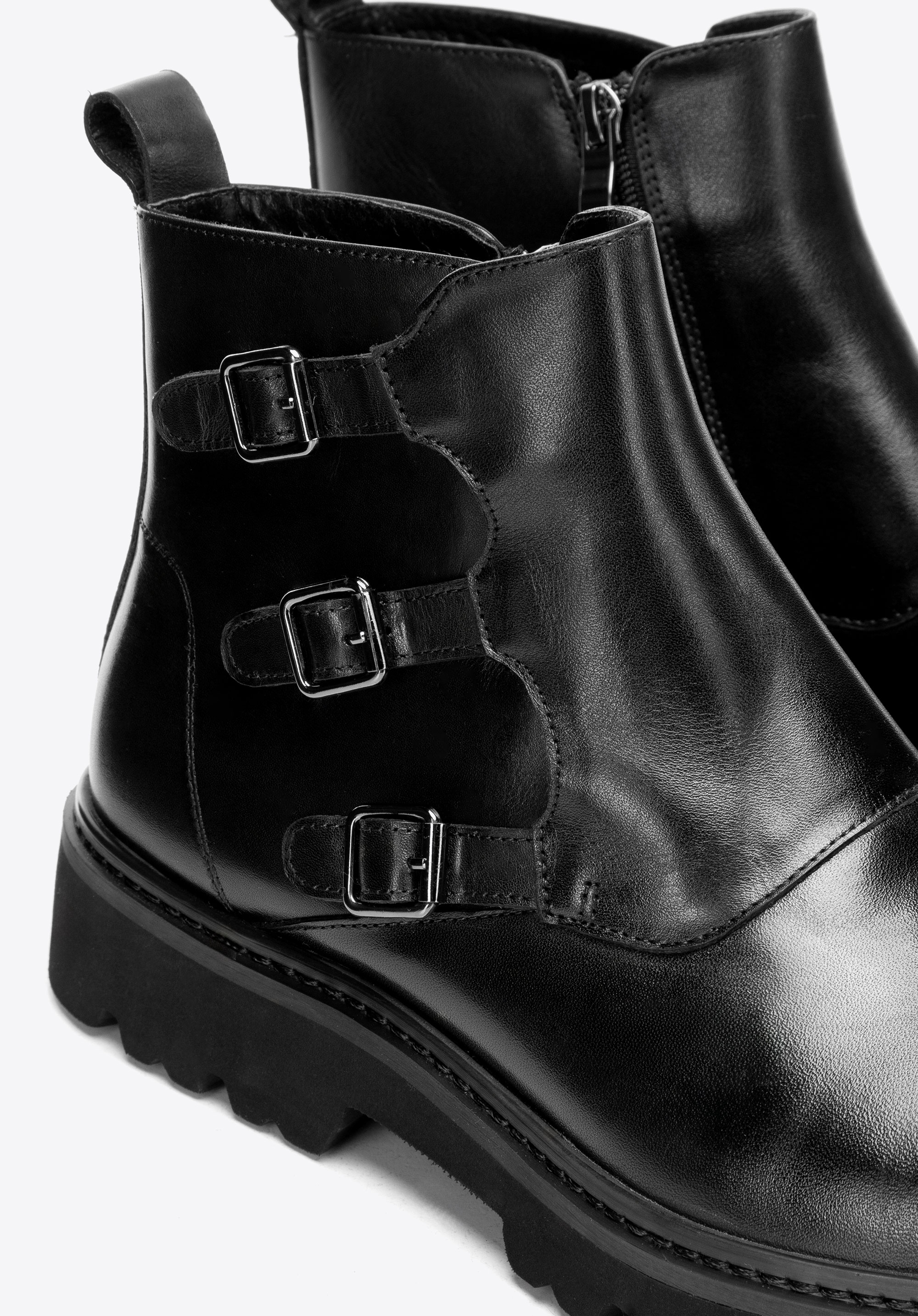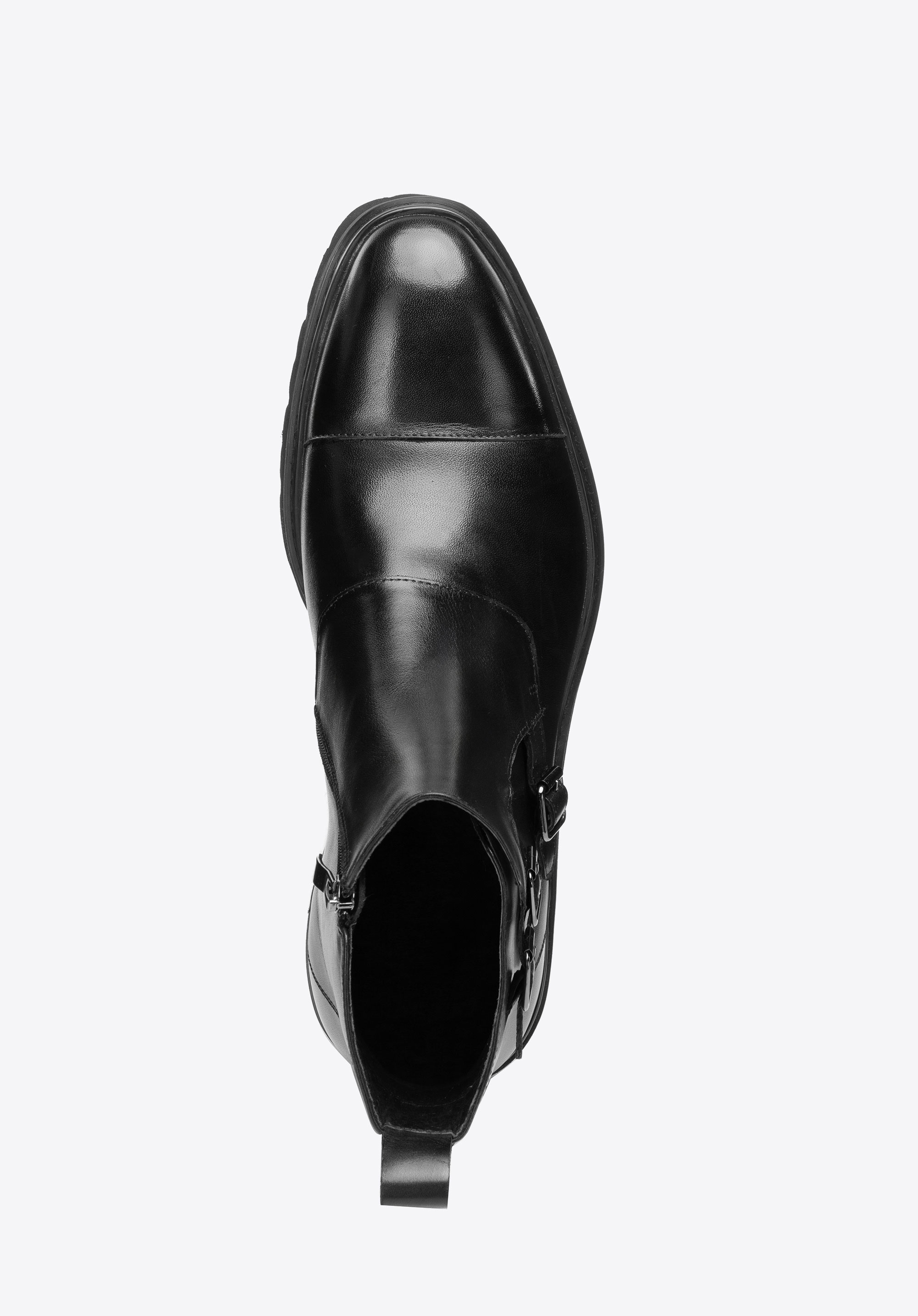 Válassz időtlen eleganciát egy csipetnyi modern stílussal. Ezek a természetes bőrből készült férfi csizmák ötvözik a tartósságot, a kényelmet és a kifinomult dizájnt. A mandulavágású orr nemcsak a letisztult sziluettet hangsúlyozza, hanem védi a lábujjakat is, miközben a teljes konstrukció tartós kényelmet biztosít – tökéletes mind a nyüzsgő városi élethez, mind a megerőltetőbb körülményekhez. A praktikus cipzárral ellátott, elegáns felsőrész megkönnyíti a fel- és levételt, miközben bármilyen megjelenéshez egyedi megjelenést kölcsönöz.