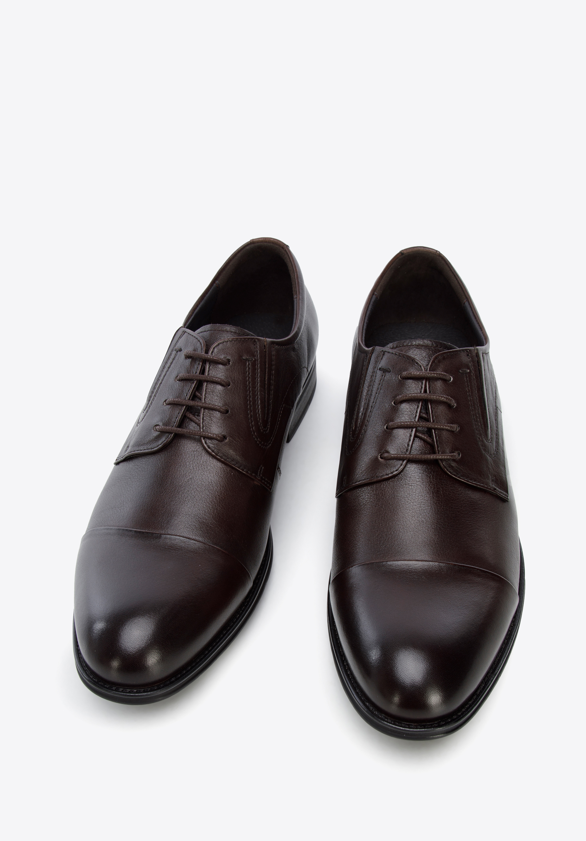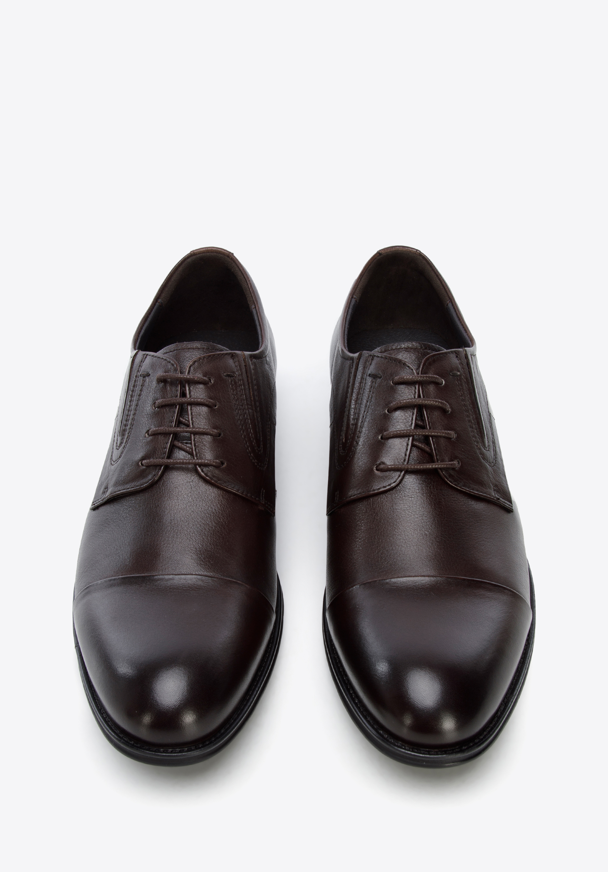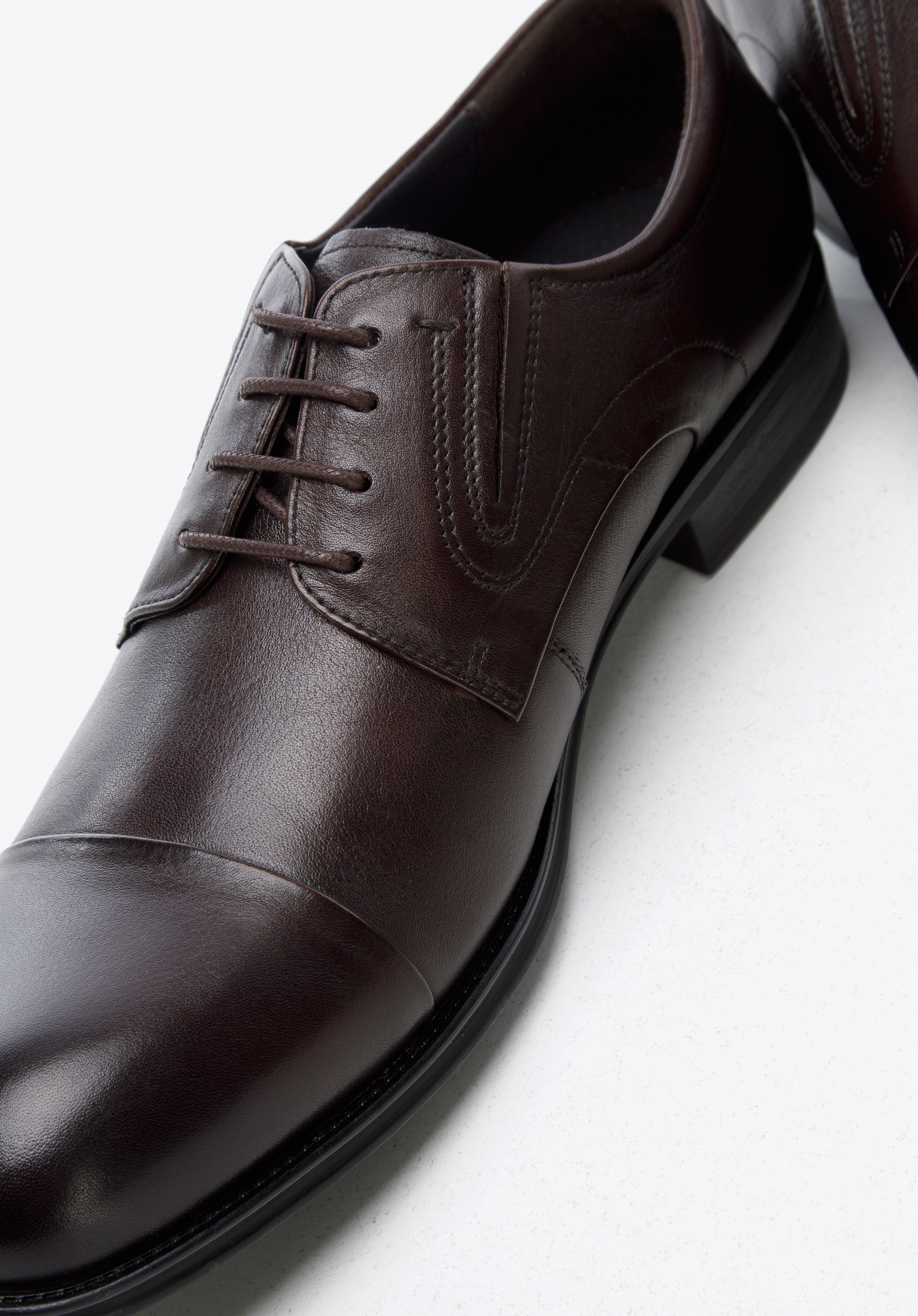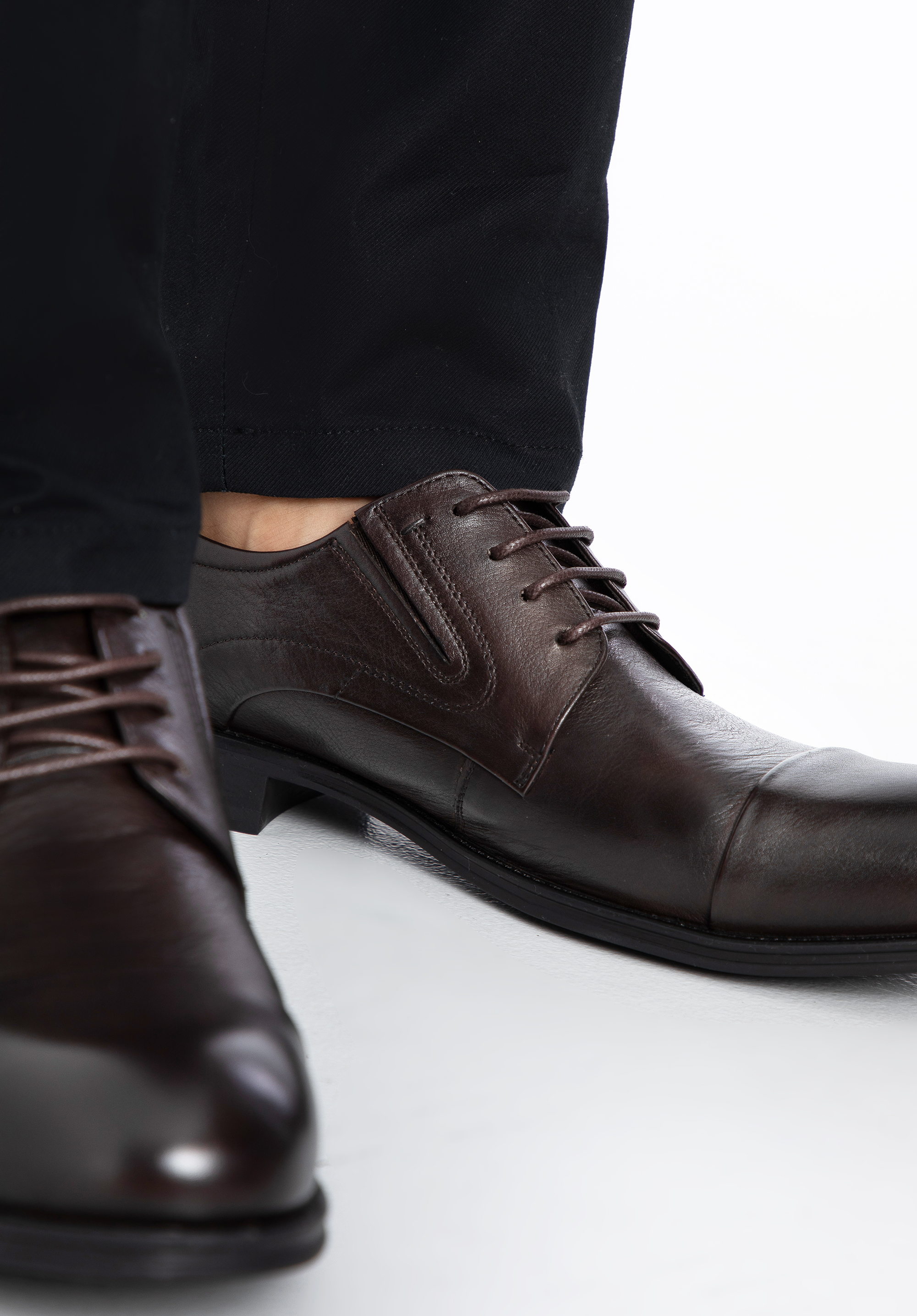 A klasszikus fazontoldalt található díszítő varrás teszi eredetivé, amely karaktert kölcsönöz az összképnek.A puha bőr talpbetétnek és a kényelmes saroknak köszönhetően órákon át kényelmesen fogsz járni benne.A férfi derby bőrcipő bevarrt gumiszalaggal hangsúlyozza a farmer és ing együttes stílusát, vagy viselheted kedvenc informális öltönyöddel.