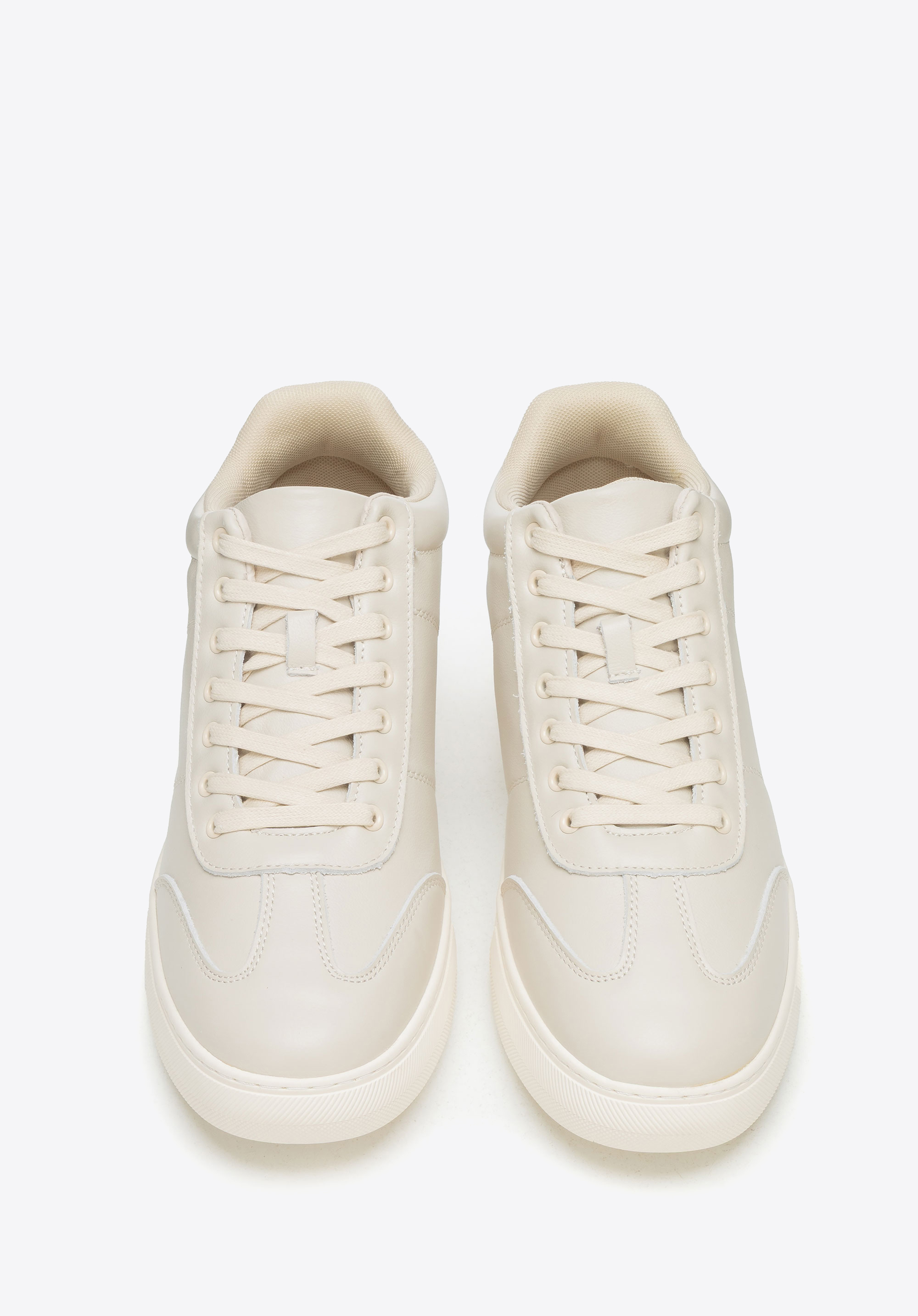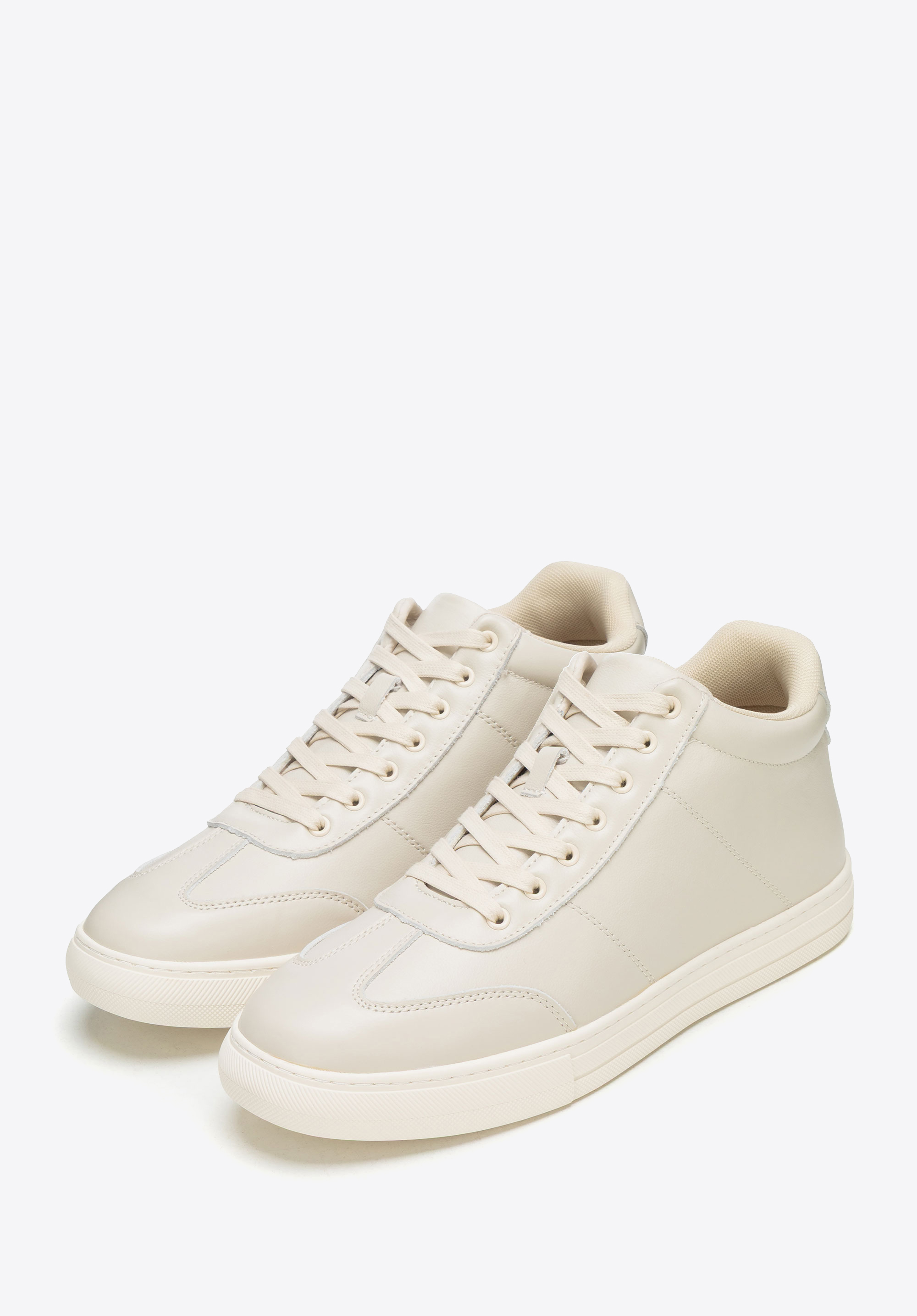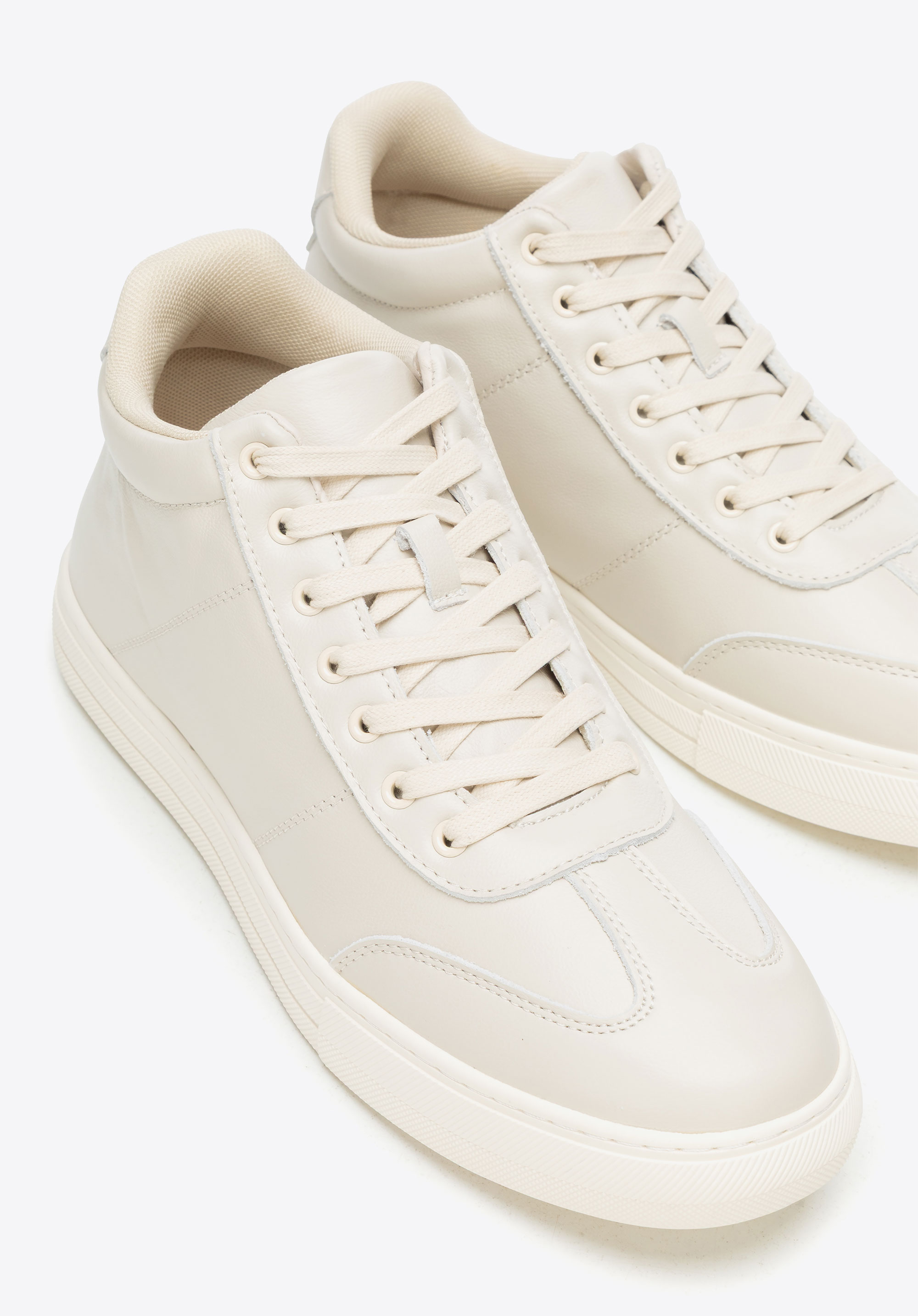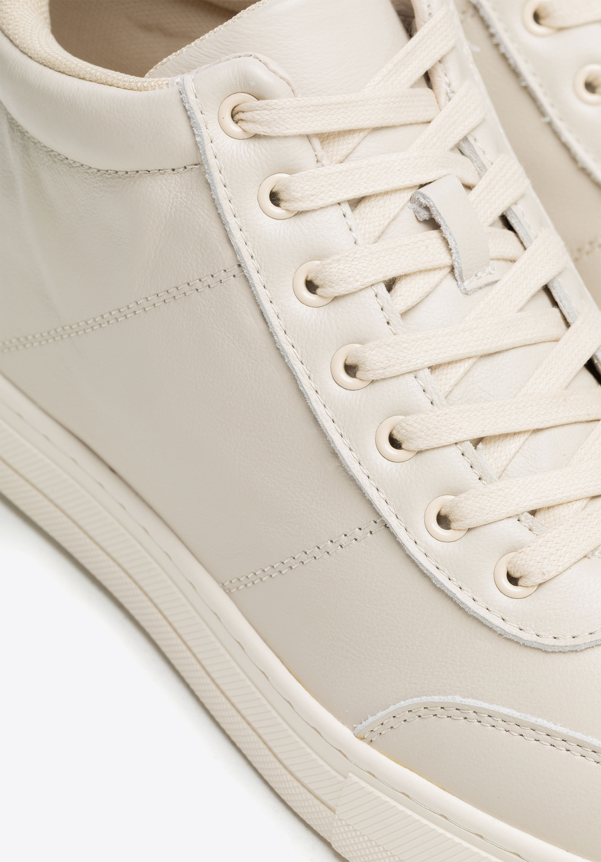 Válaszd a dinamikus dizájnt a mindennapi kényelemmel kombinálva ezzel a természetes bőrből készült férfi edzőcipővel. A lekerekített orr stílusos varrása modern megjelenést kölcsönöz, míg a masszív platformtalp stabil lépést biztosít és fokozza bármilyen öltözék sportos jellegét. A puha, természetes bőr talpbetét tökéletesen alkalmazkodik a láb formájához, a könnyű hálós bélés pedig kellemes kényelemérzetet nyújt egész nap.