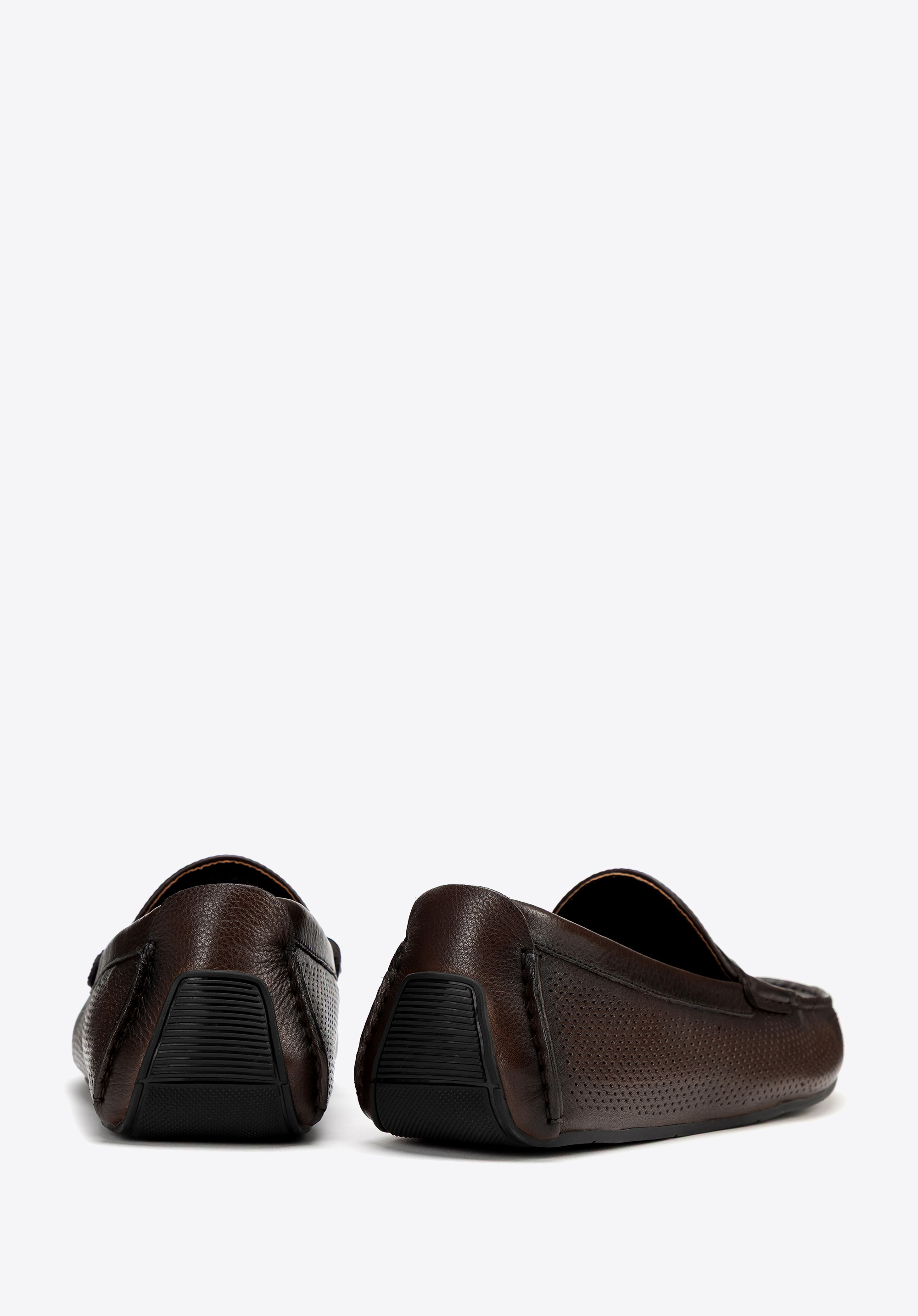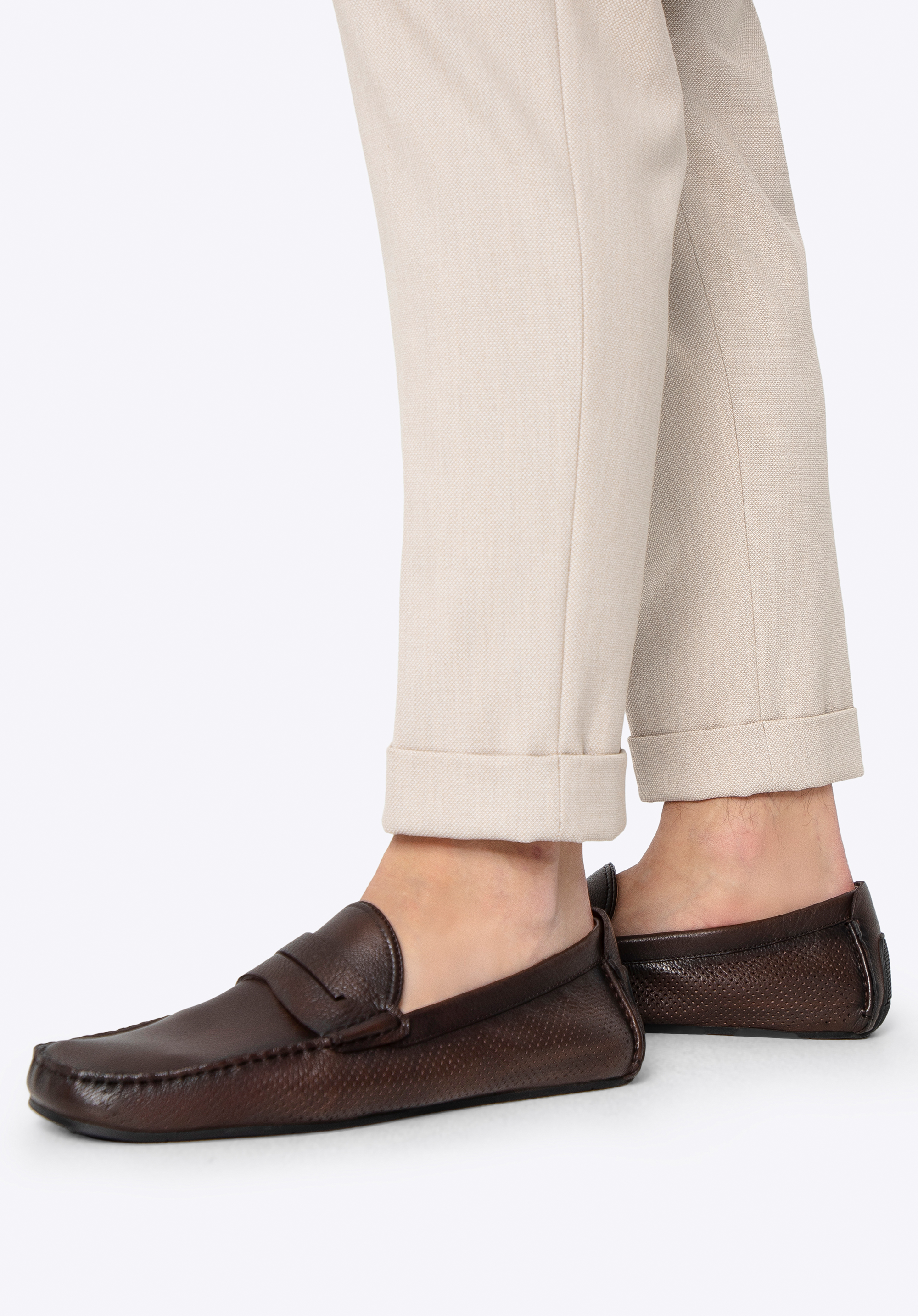 Ebben a félcipőben mindent megtalálsz, amire szükséged van - időtlen dizájnt, kivételes kényelmet és figyelmet a részletekre. Természetes marhabőrből készült, elegáns, a klasszikus stílust ötvözi a mindennapi funkcionalitással. Az elülső részen található finom díszítő csík sikkessé teszi a cipőt, míg a megerősített sarok kiváló stabilitást és kényelmet biztosít, különösen vezetés közben. Ezenkívül a finom lyukakkal ellátott anyag légáteresztő képességet biztosít a nagyobb kényelem érdekében a melegebb napokon.