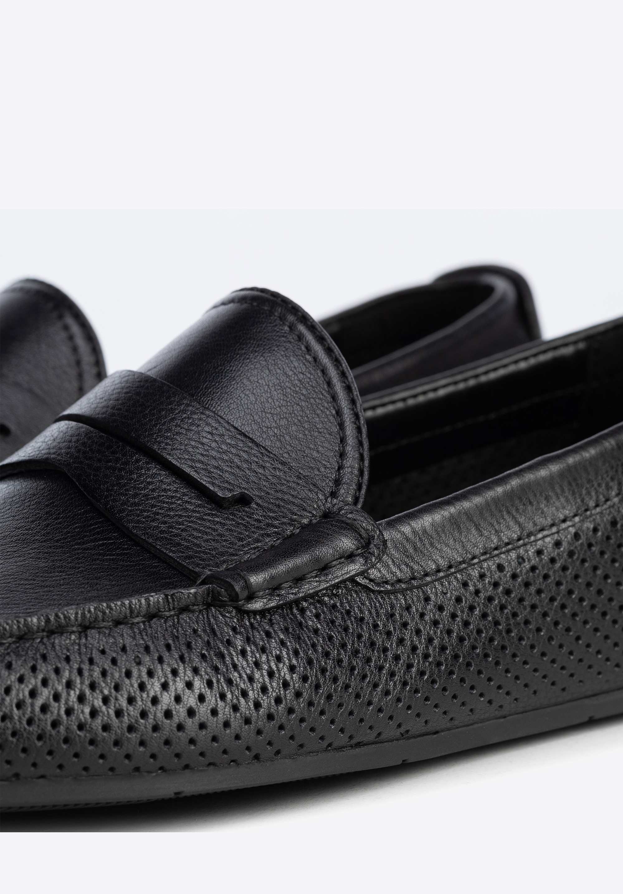 Ebben a félcipőben mindent megtalálsz, amire szükséged van - időtlen dizájnt, kivételes kényelmet és figyelmet a részletekre. Természetes marhabőrből készült, elegáns, a klasszikus stílust ötvözi a mindennapi funkcionalitással. Az elülső részen található finom díszítő csík sikkessé teszi a cipőt, míg a megerősített sarok kiváló stabilitást és kényelmet biztosít, különösen vezetés közben. Ezenkívül a finom lyukakkal ellátott anyag légáteresztő képességet biztosít a nagyobb kényelem érdekében a melegebb napokon.