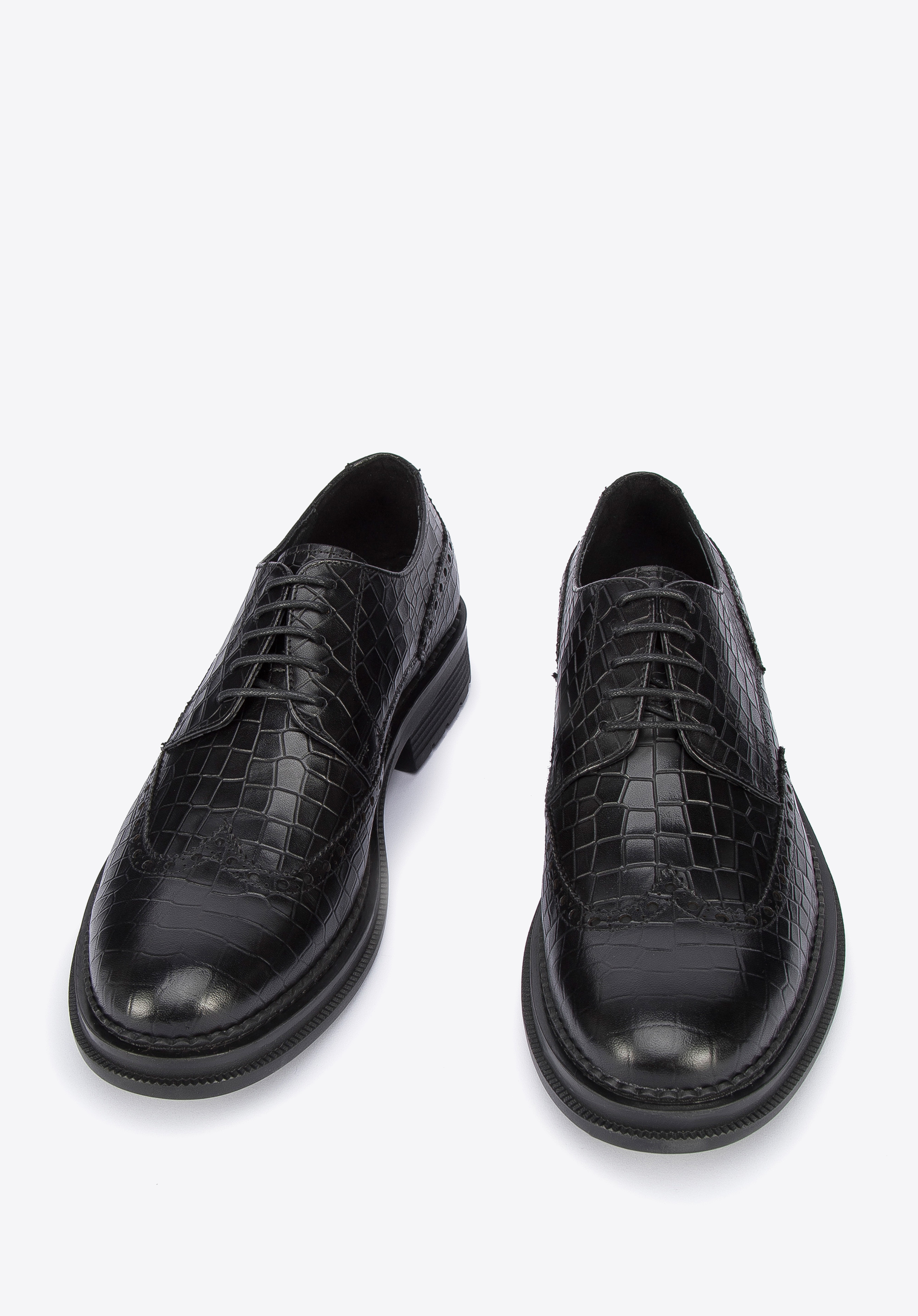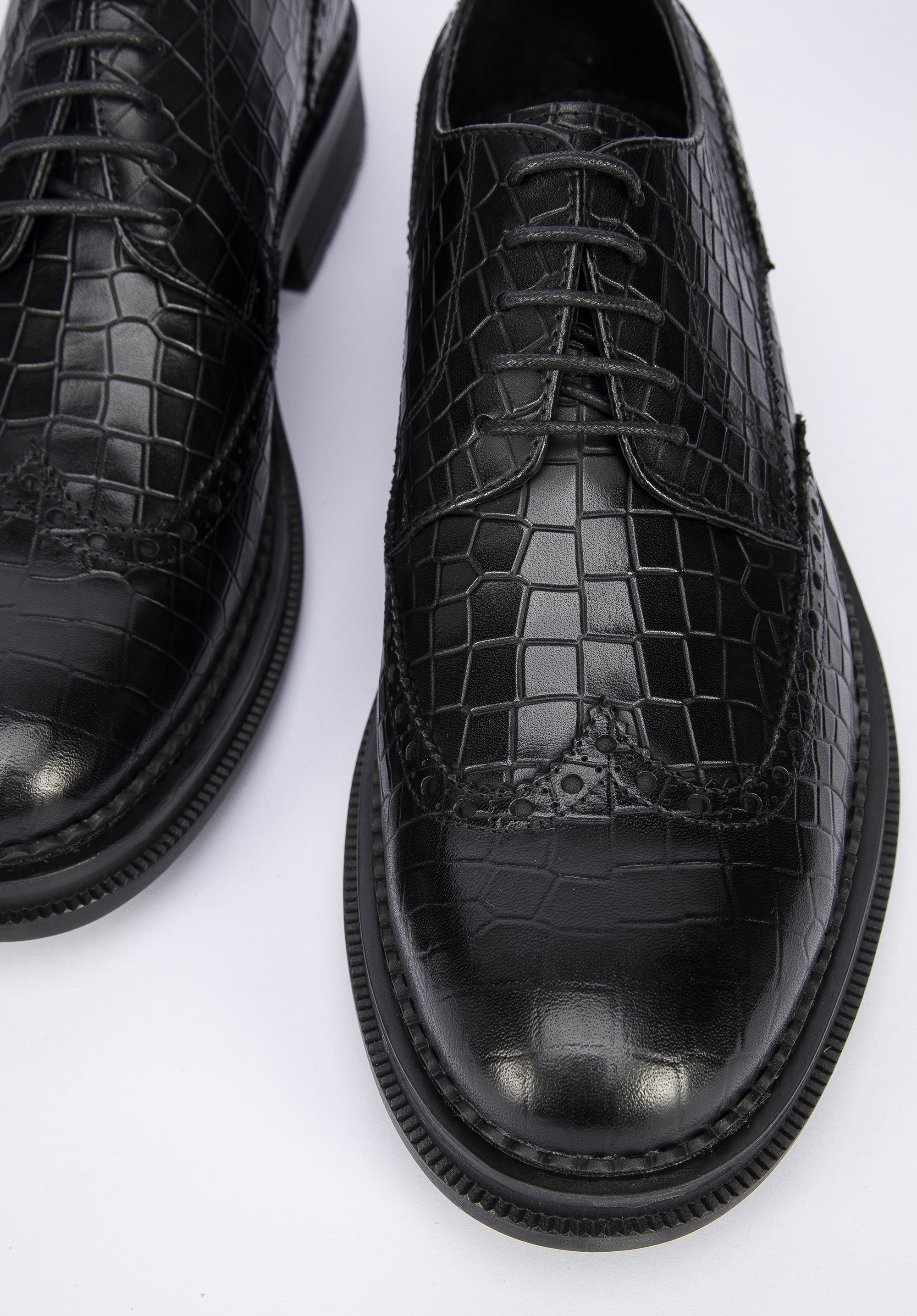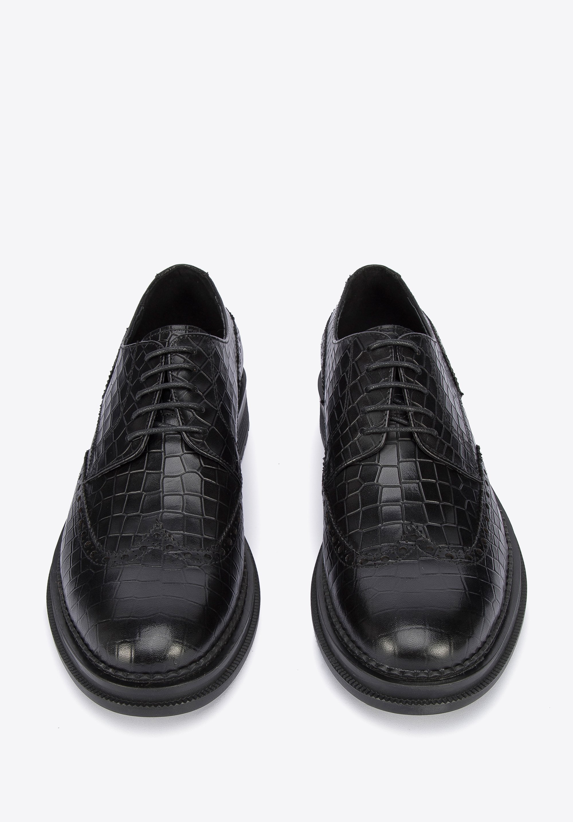 Férfi bőr félcipő krokodilbőr textúrával fekete