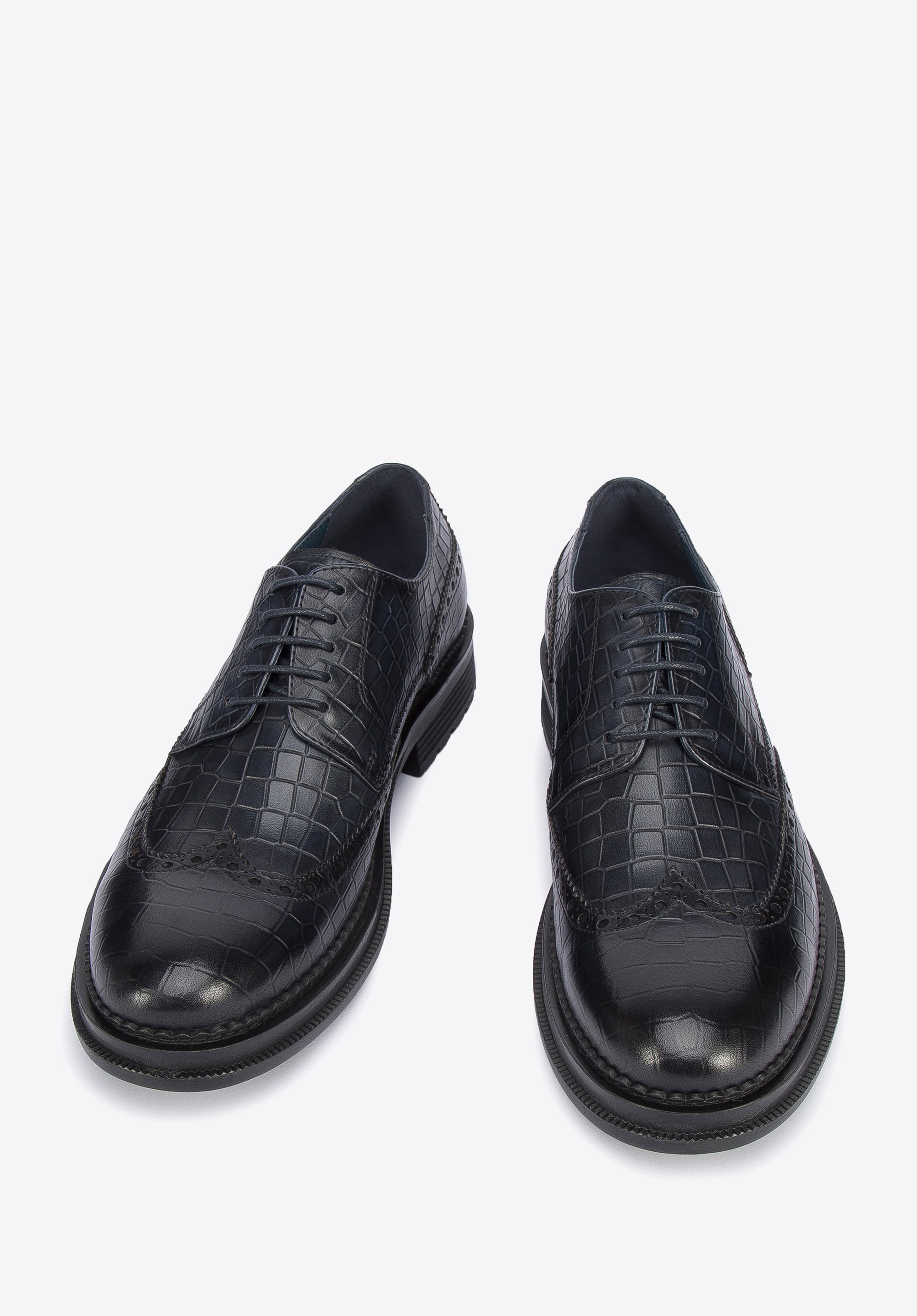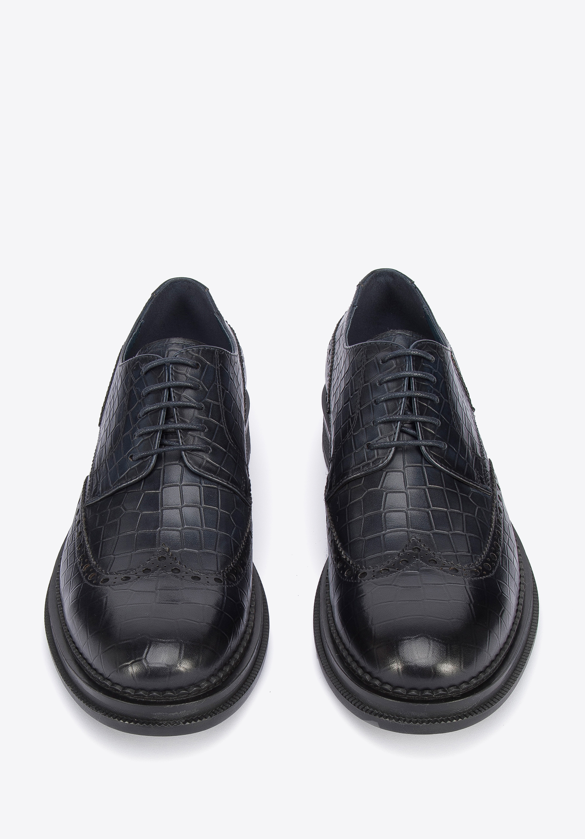 Férfi bőr félcipő krokodilbőr textúrával 95-M-504-N