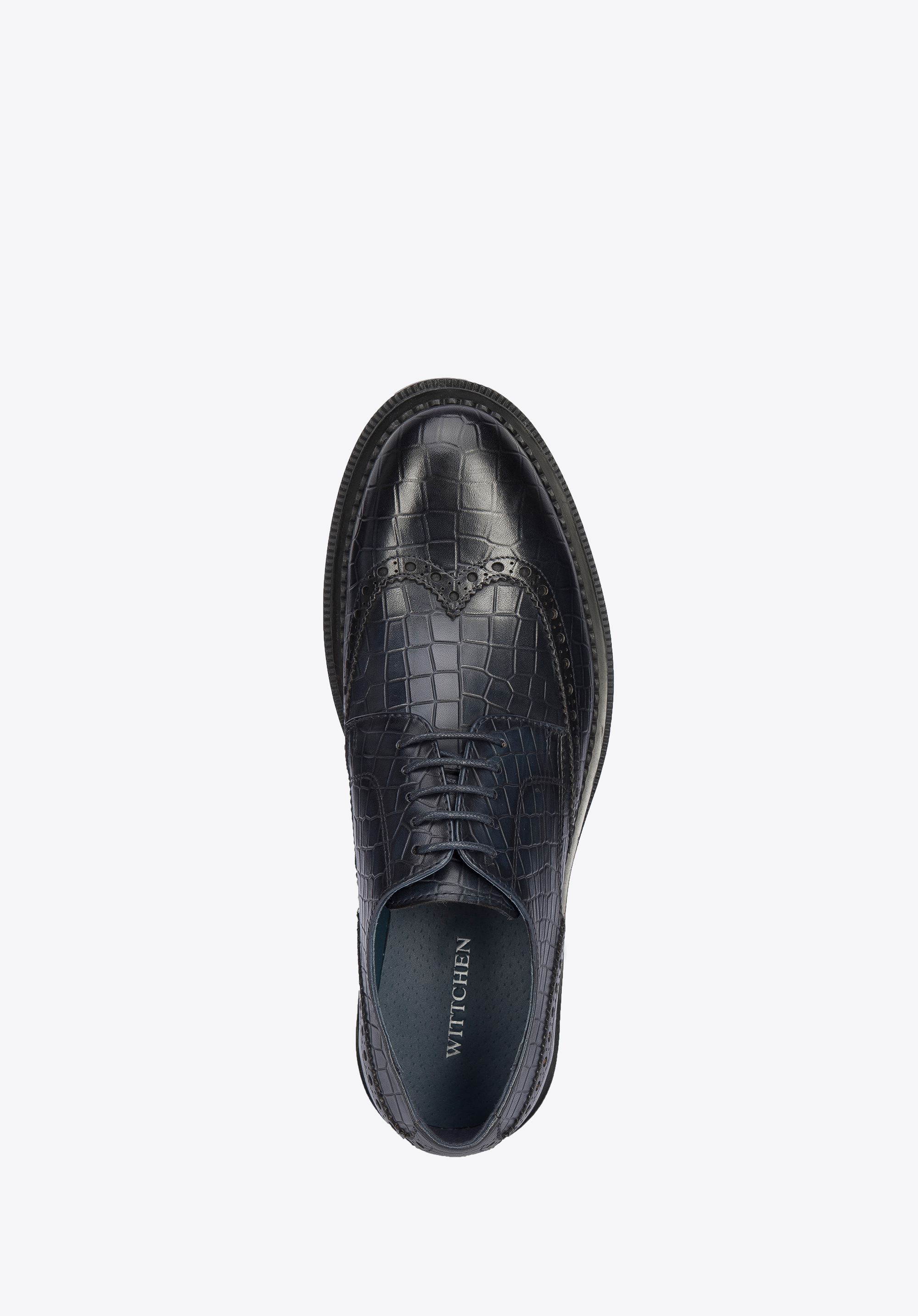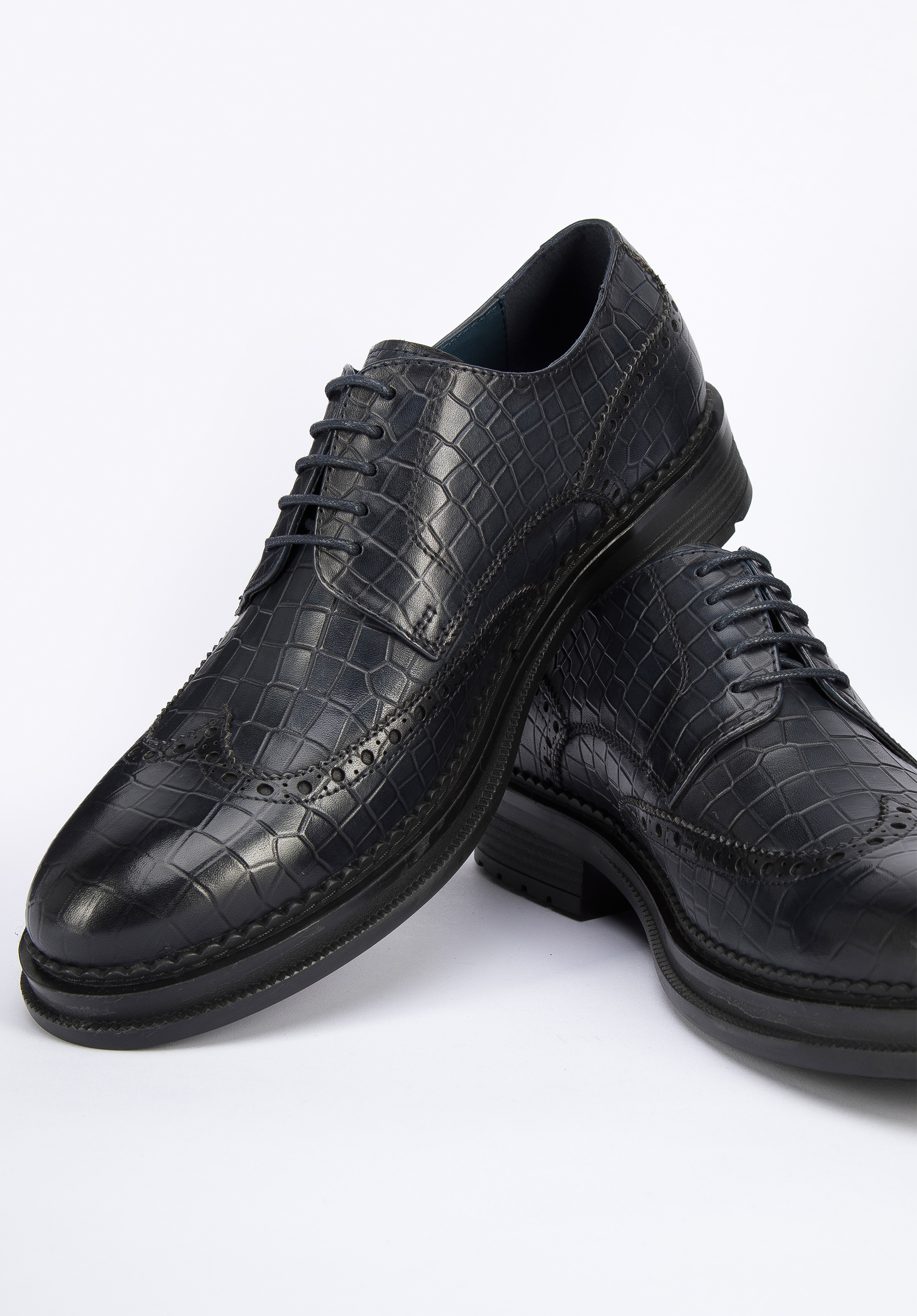 Férfi bőr félcipő krokodilbőr textúrával sötétkék