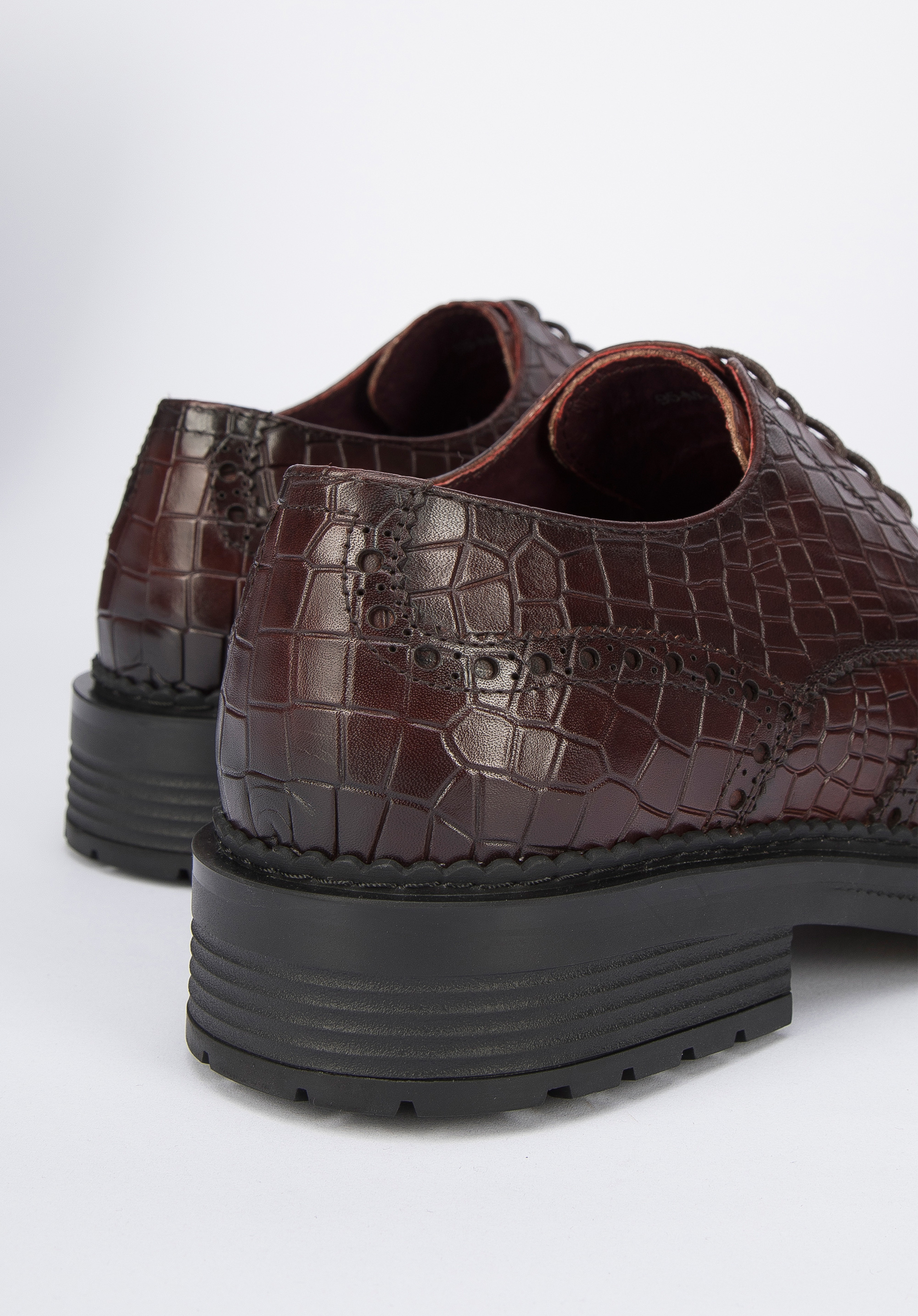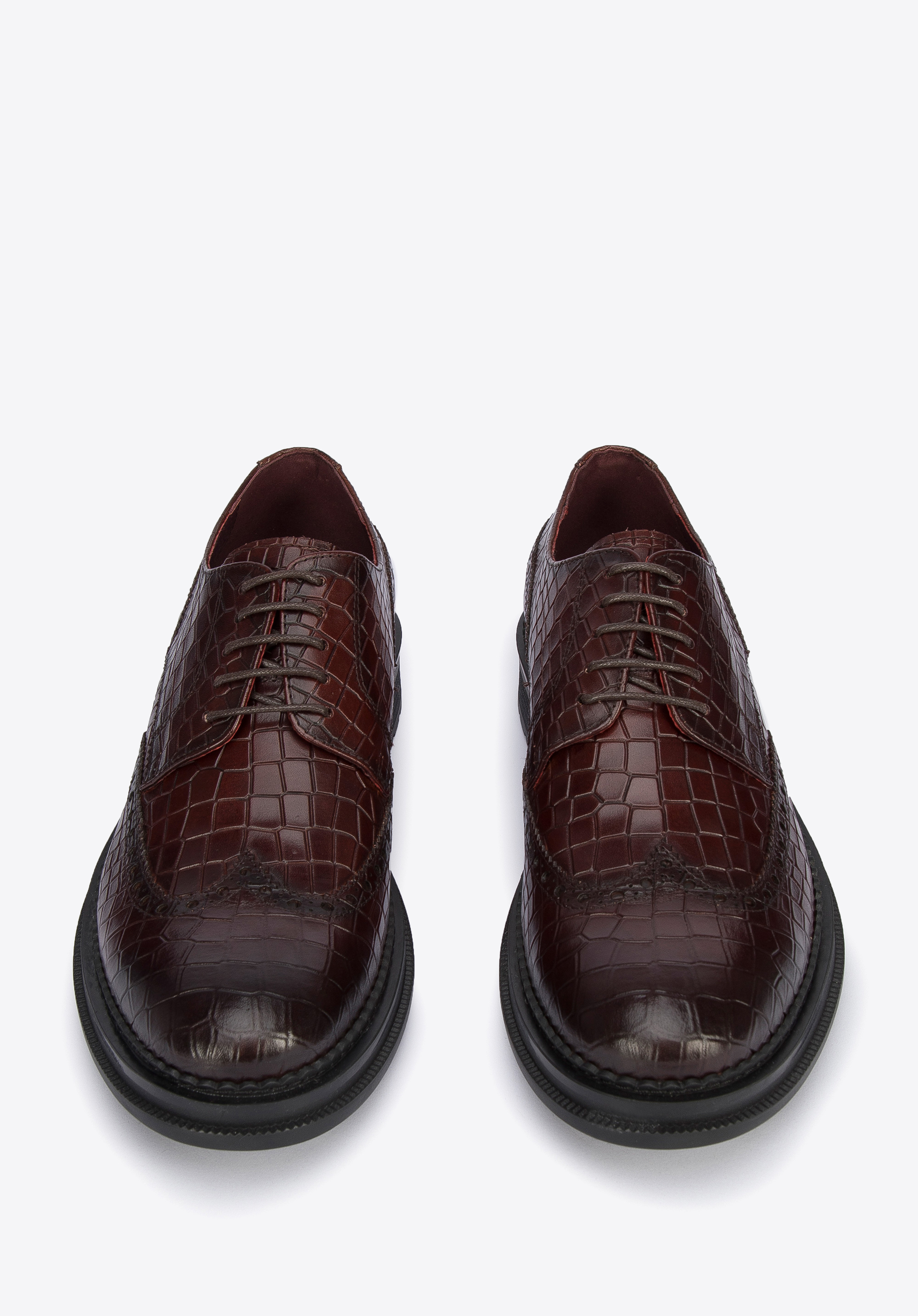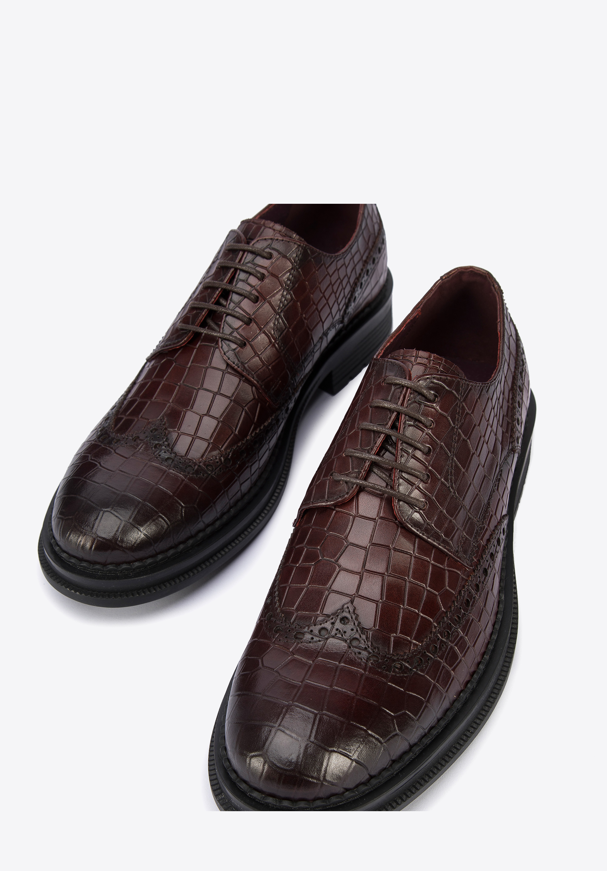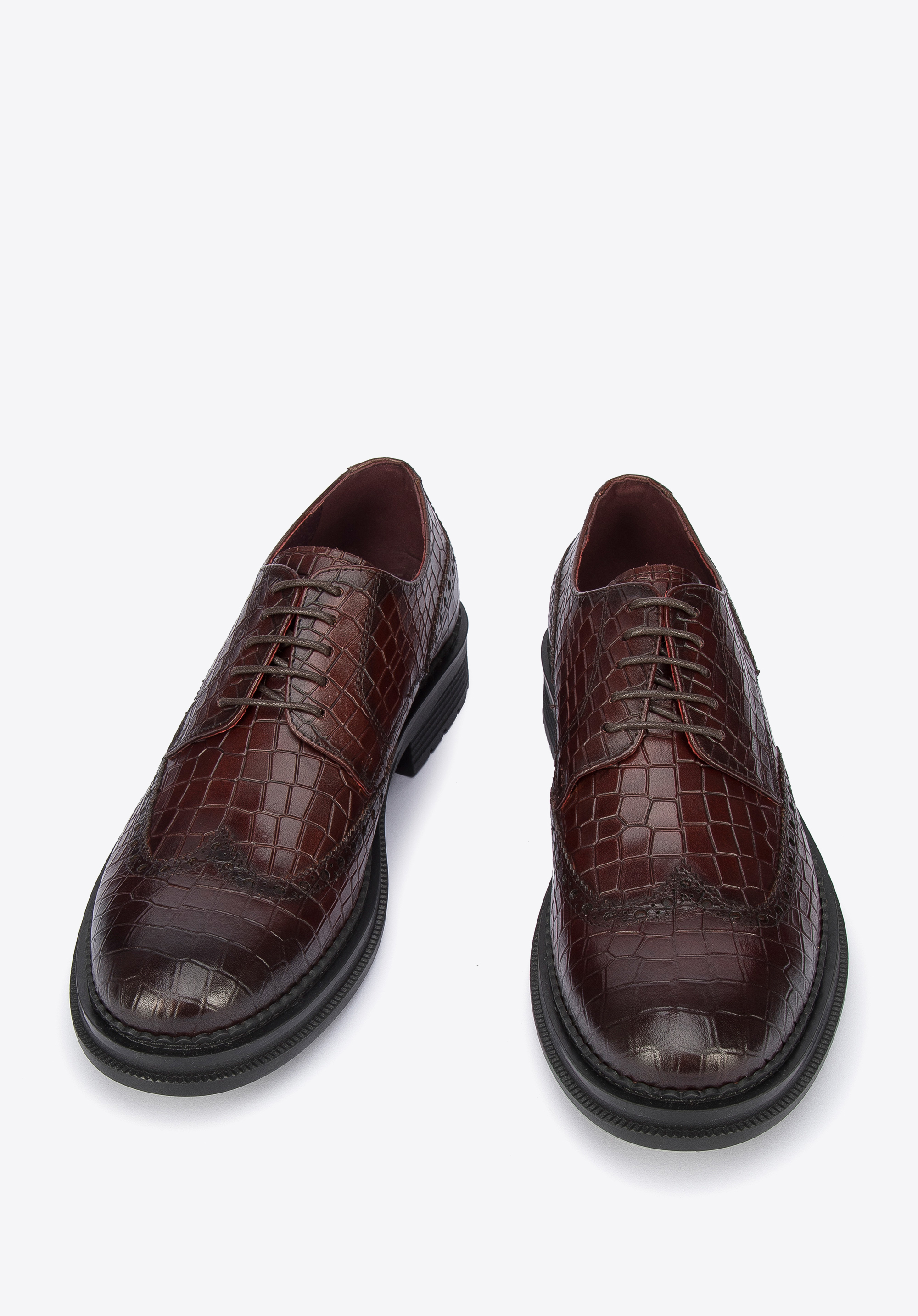 Férfi bőr félcipő krokodilbőr textúrával sötétvörös