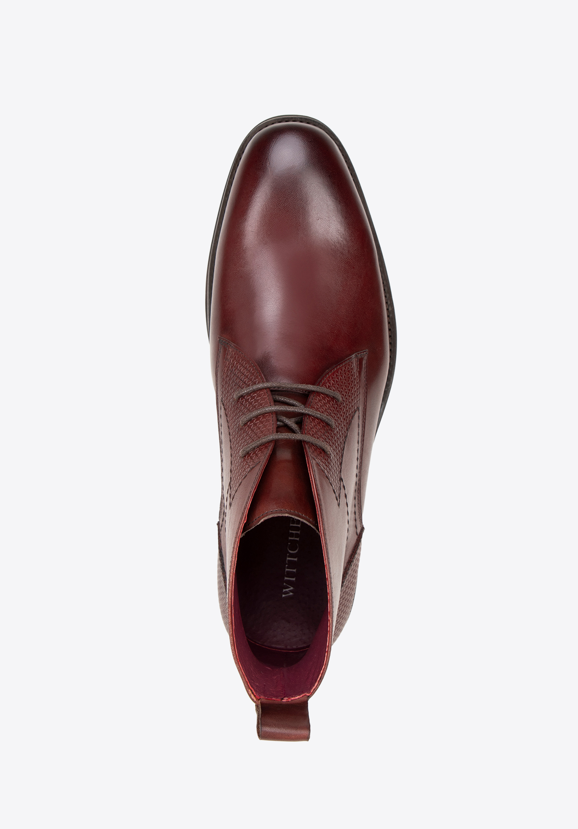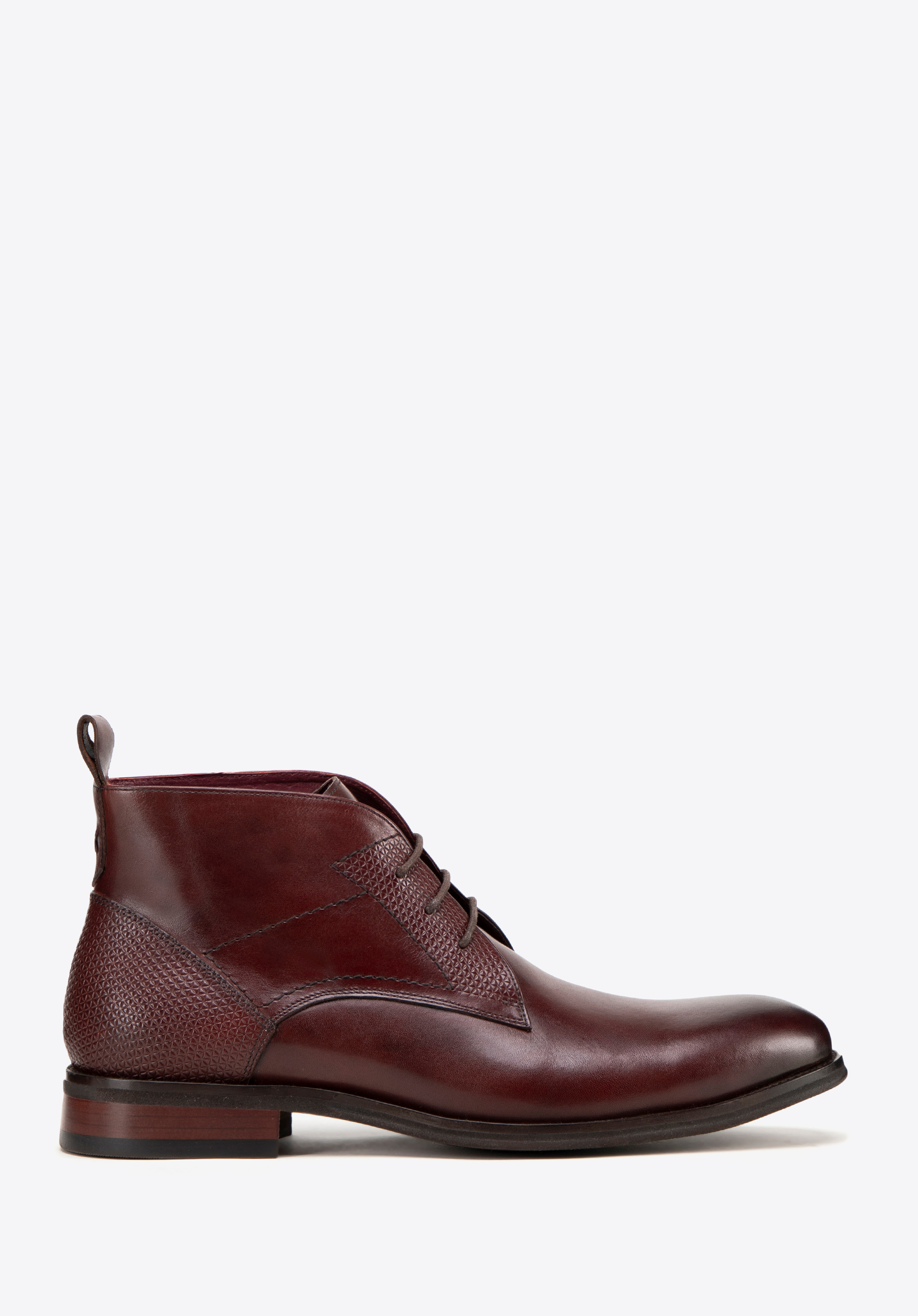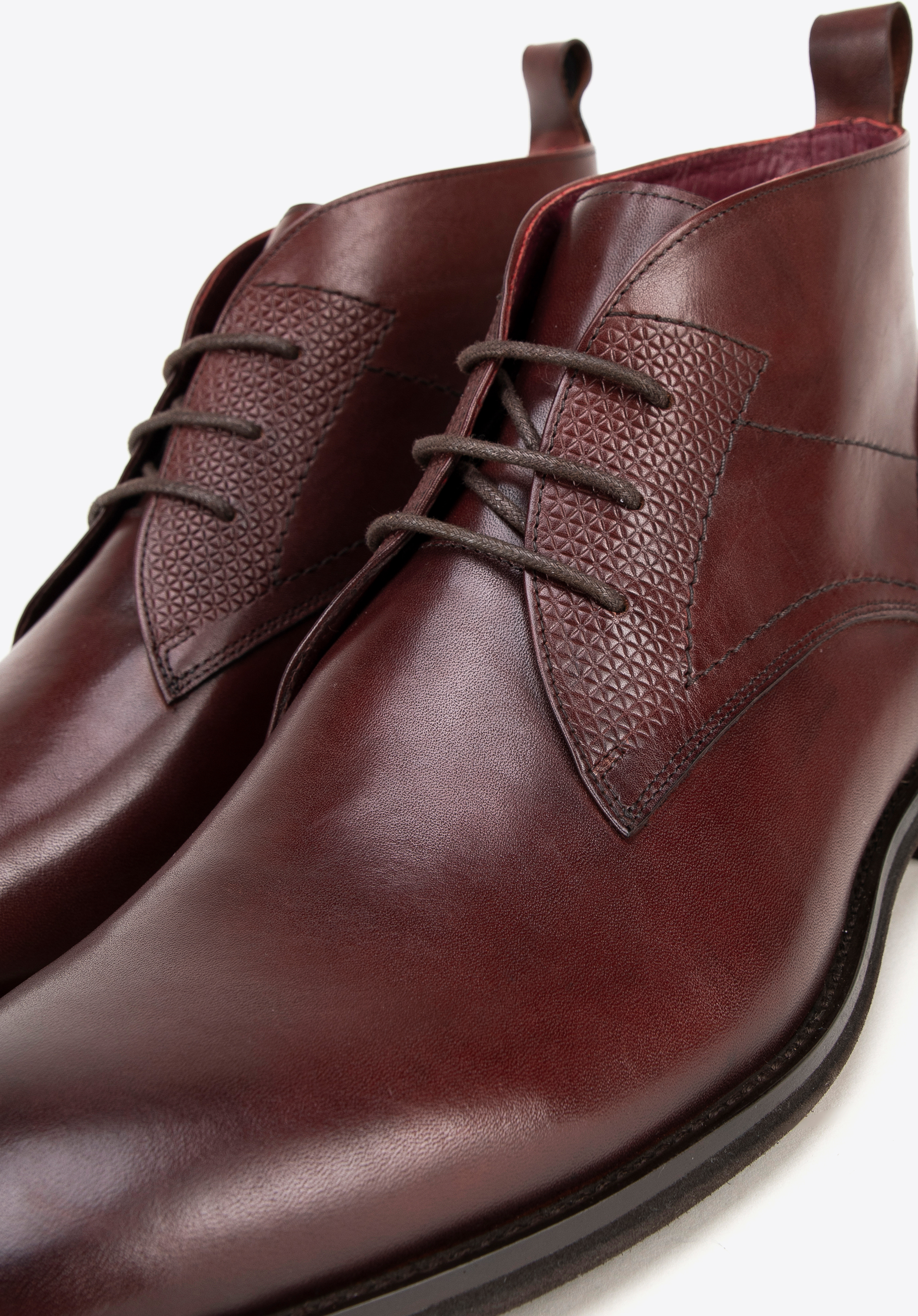 Férfi bőr fűzős csizma geometrikus mintával Szín: sötét vörös