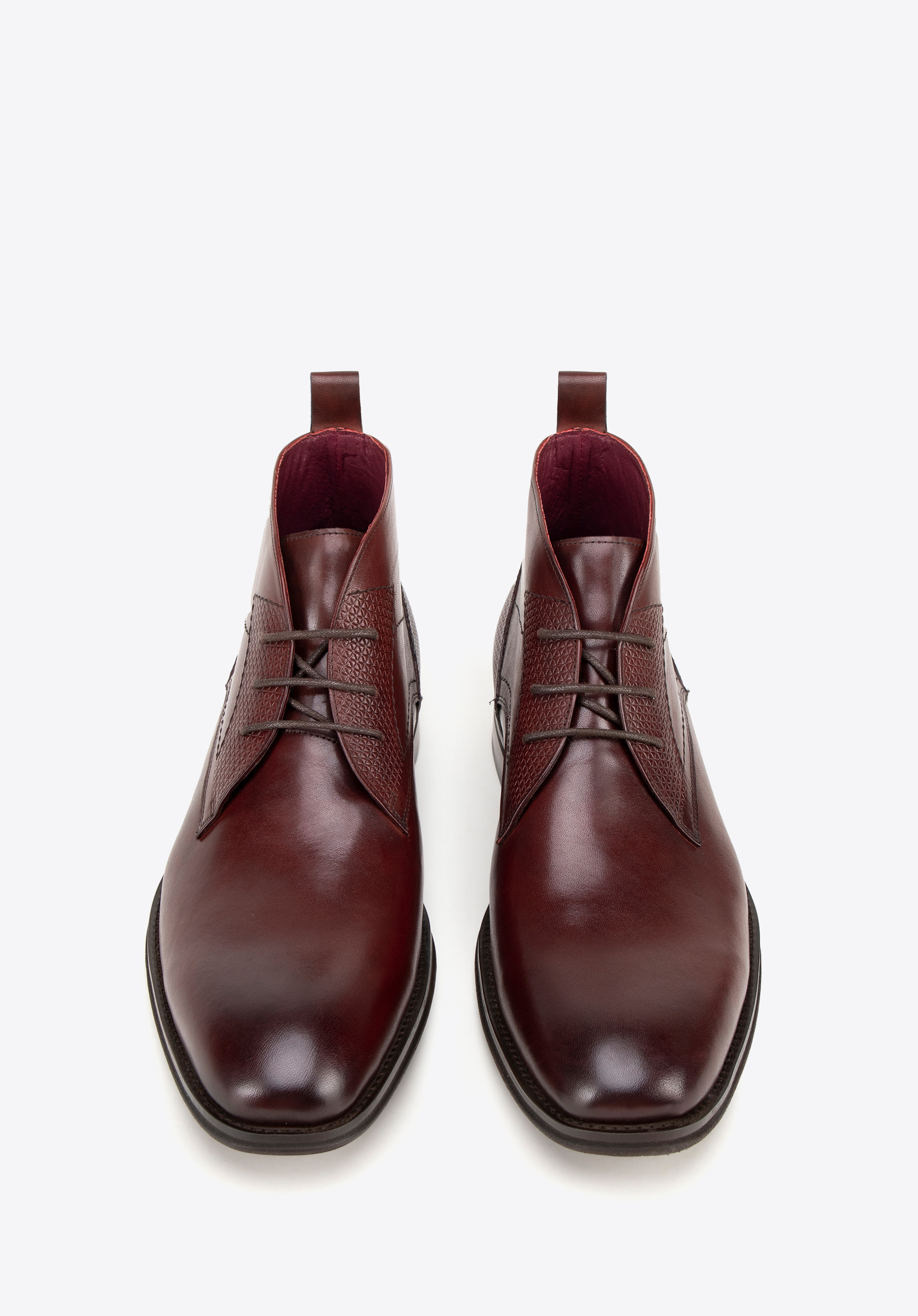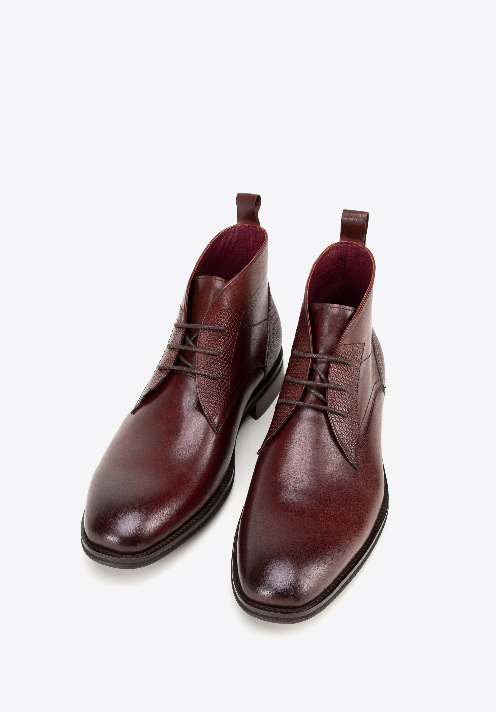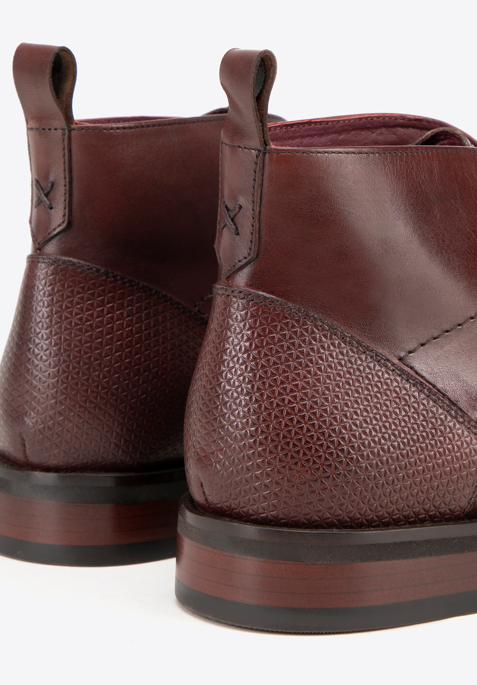 Férfi bőr fűzős csizma geometrikus mintával Szín: sötét vörös