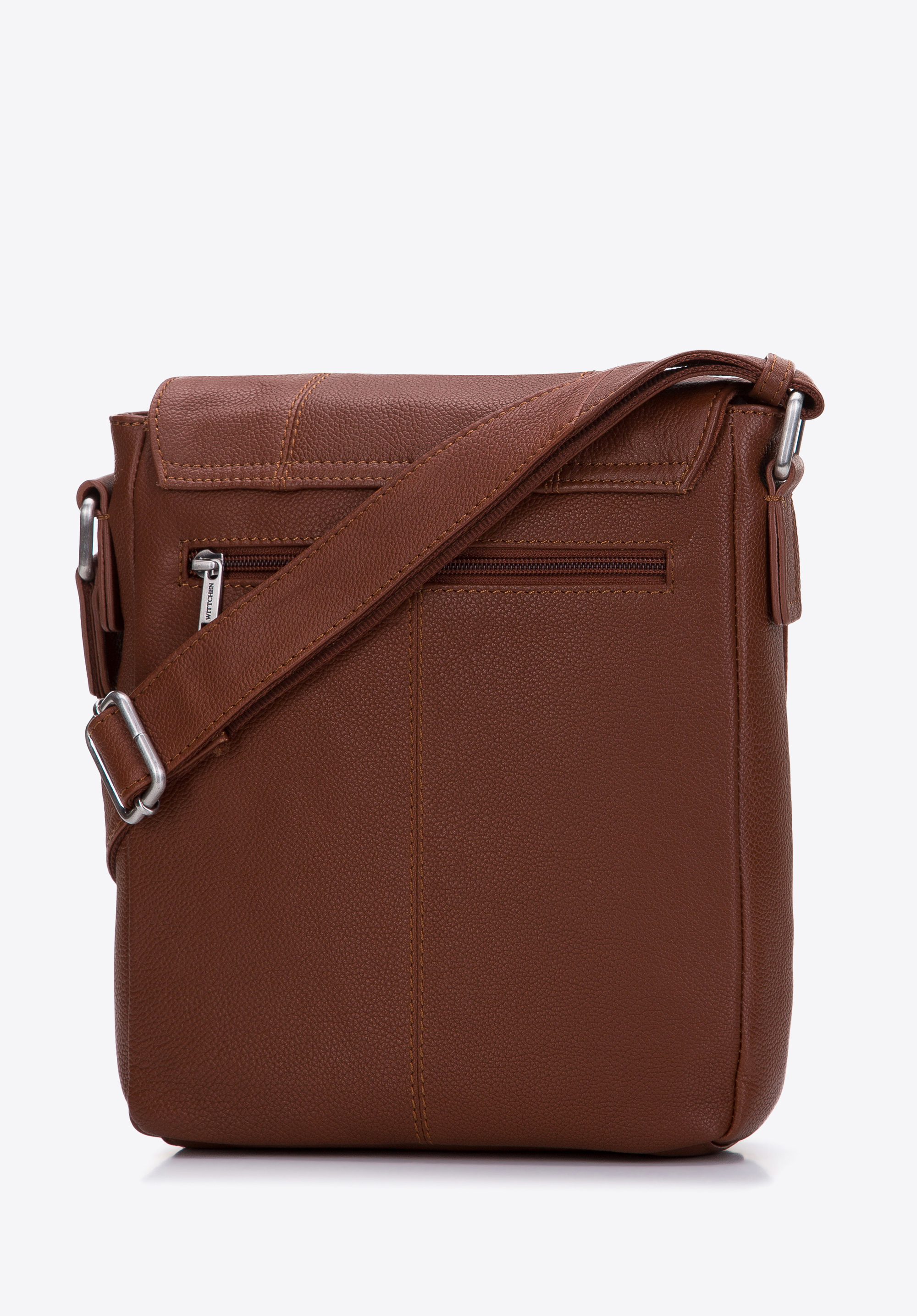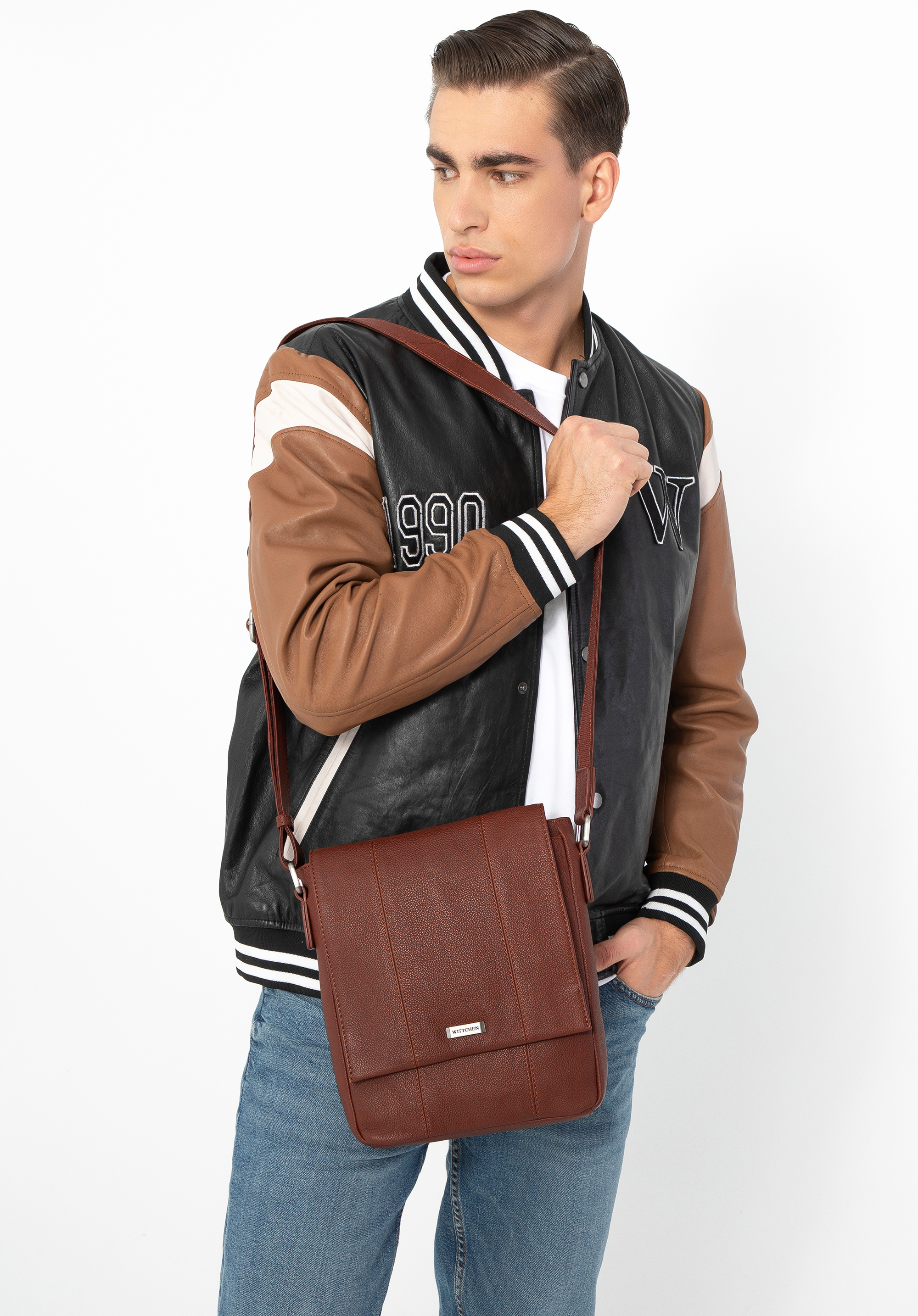 Ez a stílusos táska minden modern férfi számára nagyszerű választás a mindennapokra. Puha tapintású, szemcsés textúrájú természetes bőrből készült . A mágnessel záródó szárny nagy zsebet rejt alatta, ahová gyorsan elrejtheti, amit szeretne. A fő rekeszben pénztárca, naptár, telefon és néhány apróság, a puha párnázott zsebben pedig egy elektronikus eszköz tárolható, melynek maximális mérete: 22 cm x 20 cm . Minden nap hordhatod: munkába és baráti összejövetelekre is. Őszi kabátnak és steppelt téli kabátnak egyaránt remek kiegészítője lesz. A dupla szegélyű füllel ellátott férfi bőr oldaltáska időtálló kiegészítő, amelyet sok évszakon át viselhetsz.