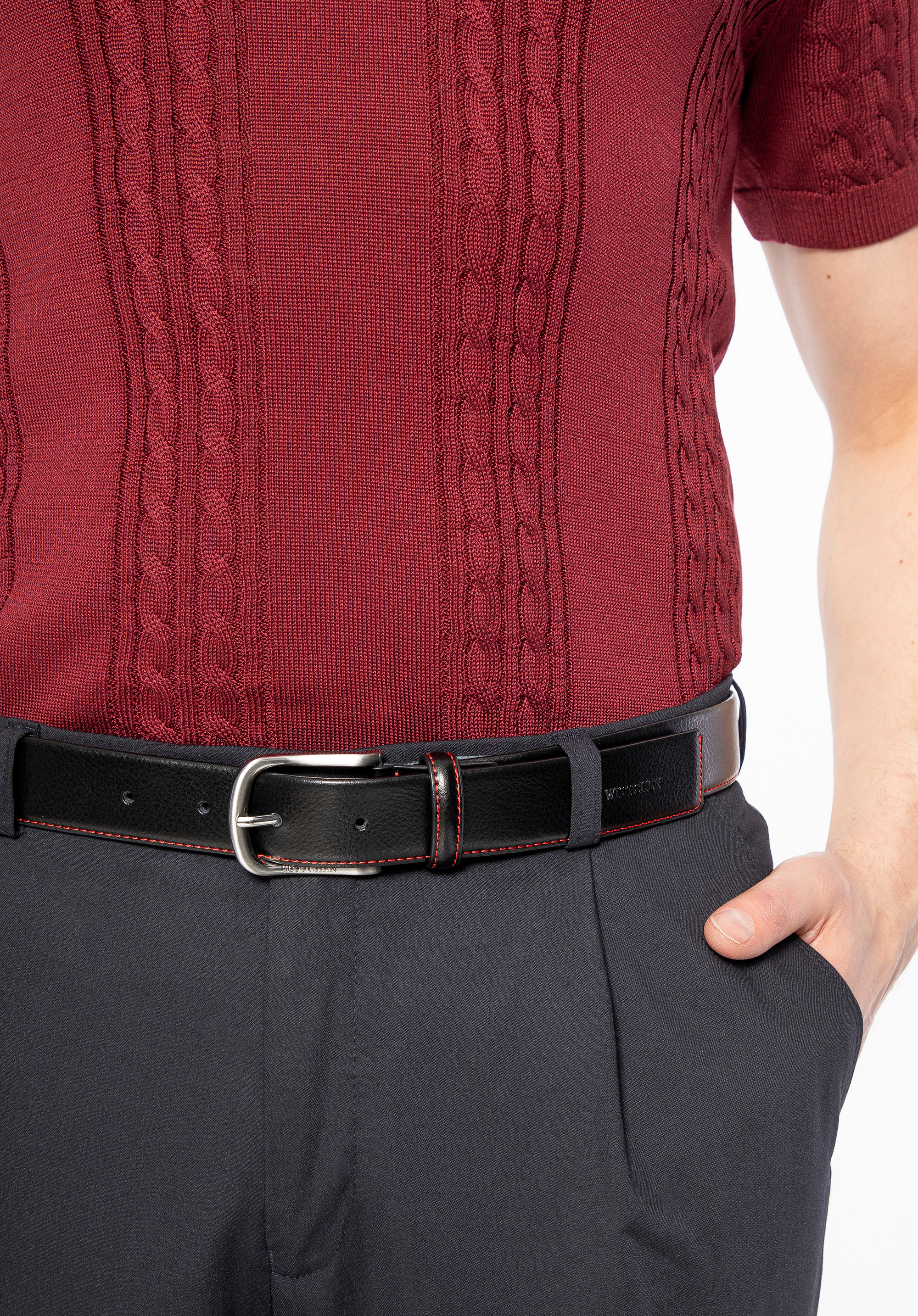 Tippünk: Kombináld elegáns öltönnyel vagy lezser chino nadrággal – a piros varrások nagyszerű kontrasztot teremtenek a tompa színekkel szemben. Az öv tökéletesen kiegészíti a klasszikus bőr félcipőket vagy egy lezserebb stílusú mokaszint is.