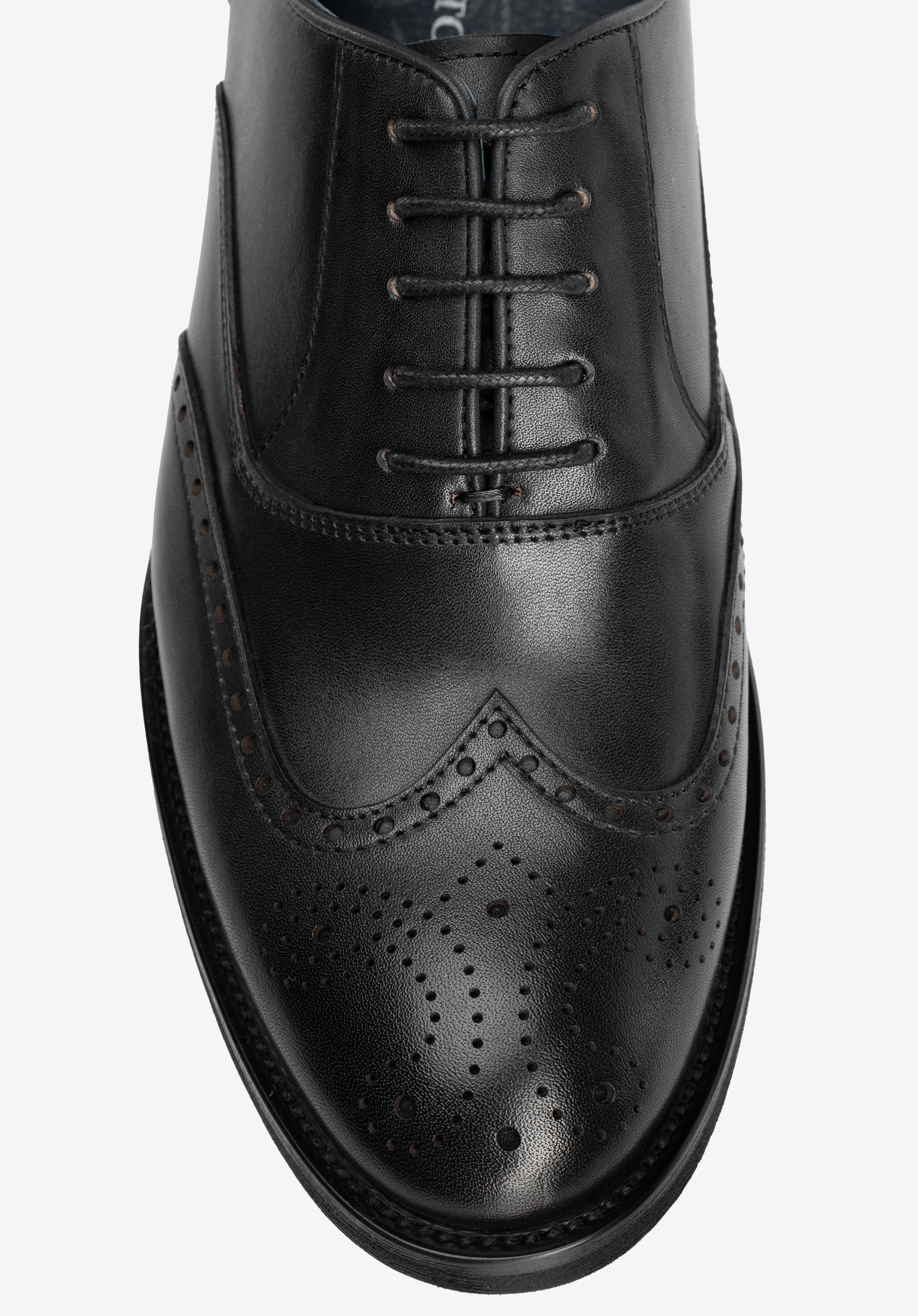 Fedezd fel az időtlen stílust és a precíz kivitelezést luxus férficipőnkkel. Ez a legfinomabb marhabőrből készült férfi félcipő lenyűgöz majd kifinomult megjelenésével, tartósságával és a részletekre való odafigyelésével. A jellegzetes zárt fűzés tökéletes illeszkedést biztosít, míg a felület gazdag perforációja könnyű érzetet és kifinomult karaktert ad. A lekerekített orr karcsú, elegáns formát kölcsönöz a cipőknek, fokozva exkluzív megjelenésüket.