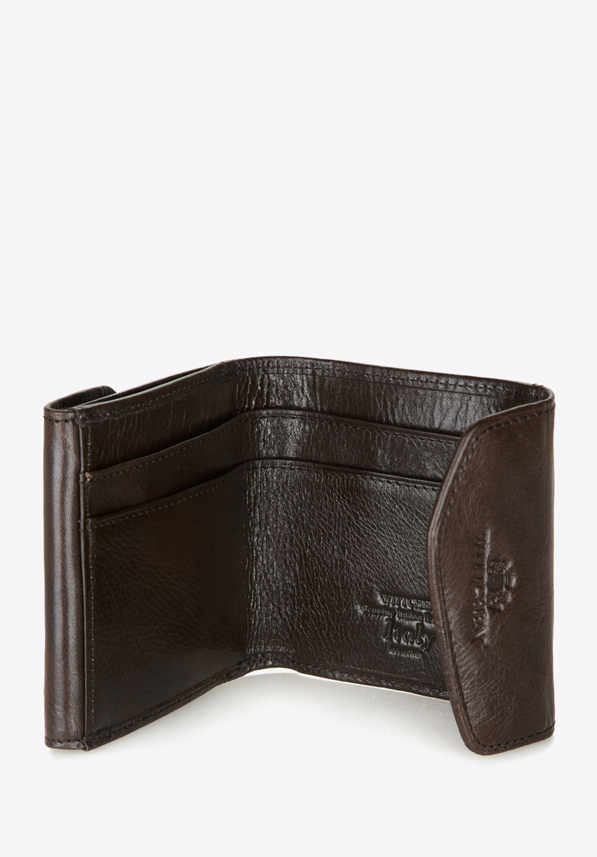 Ez a kicsi, négyzet alakú univerzális bőr pénztárca nagyon praktikus és funkcionális modell. A rekeszek elrendezése és a kényelmes nyomógombos rögzítés növeli a használat kényelmét.