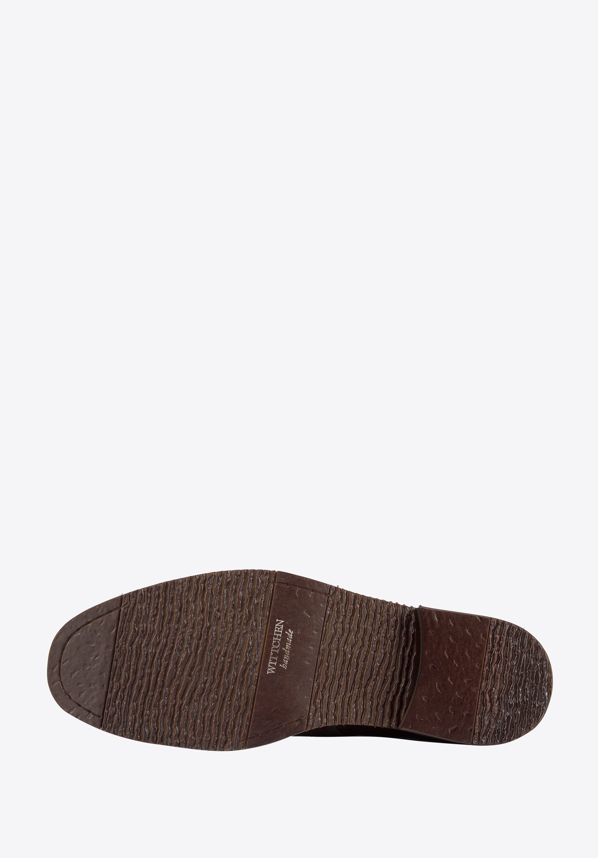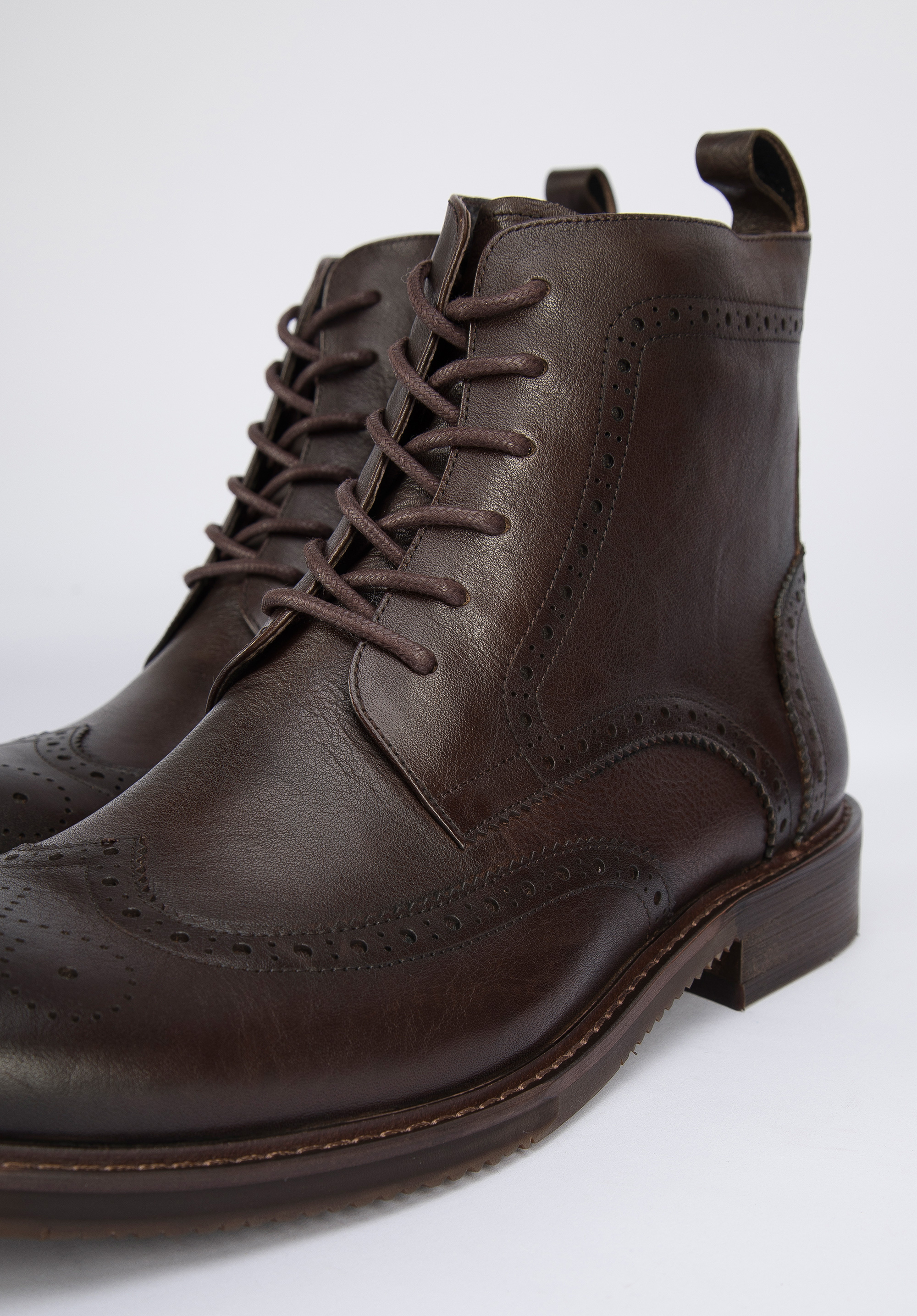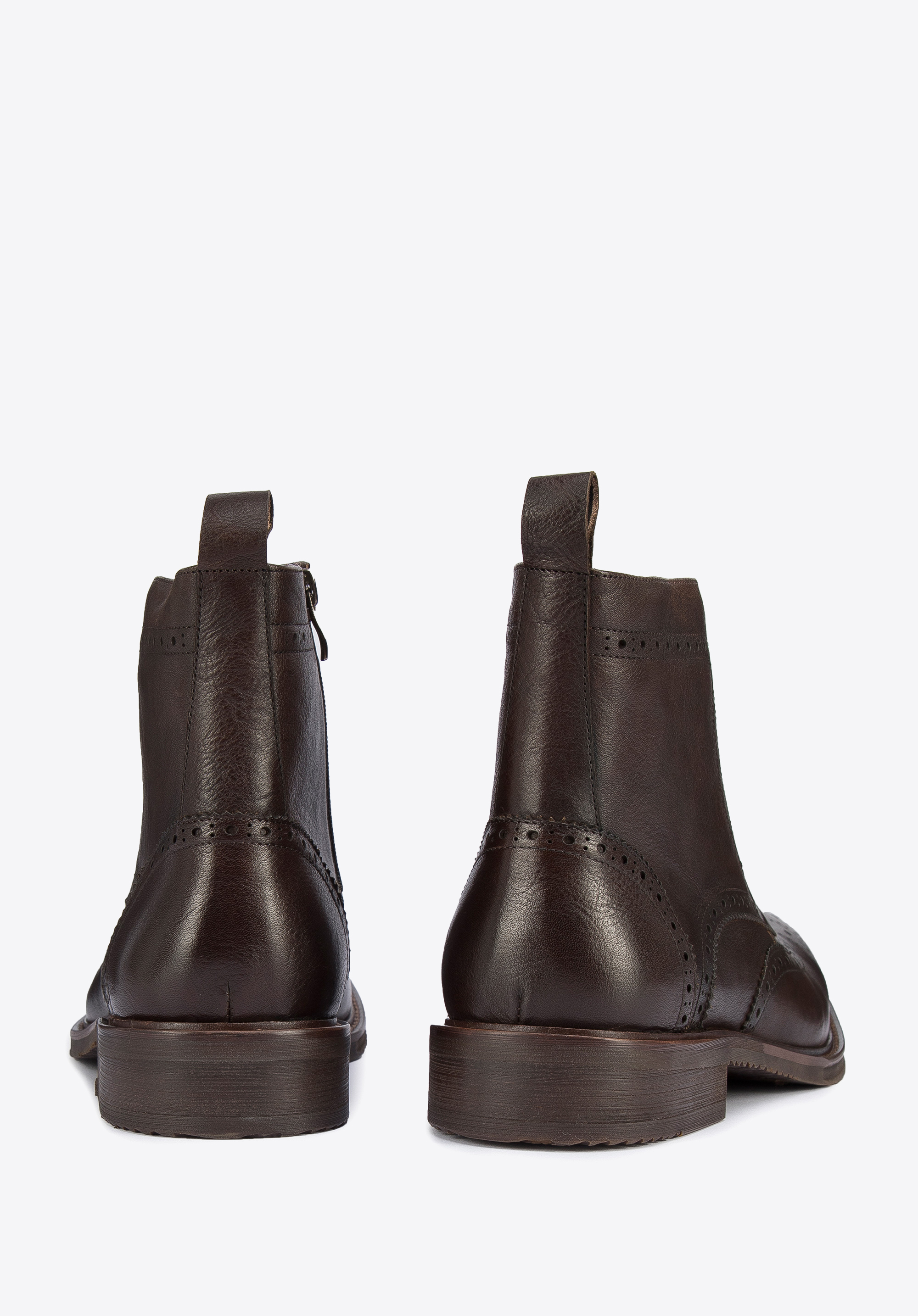 Ez az elegáns férfi bakancs nagyszerű választás őszre és tavaszra, valamint melegebb téli napokra. A stílusos orrdísz karaktert ad neki, az oldalakon látható lyukak pedig kiemelik egyediségégét. A belső oldalon cipzár található a könnyű belebújás érdekében. A cipők kiváló minőségű természetes bőrből készültek, csúszásmentes talpának köszönhetően pedig kényelmesen járhatsz bennük egész nap. Hordható hétköznapi és alkalmi ruhákkal is. Ez a perforált, férfi bőr bakancs minden divatos férfi időtlen kiegészítője.