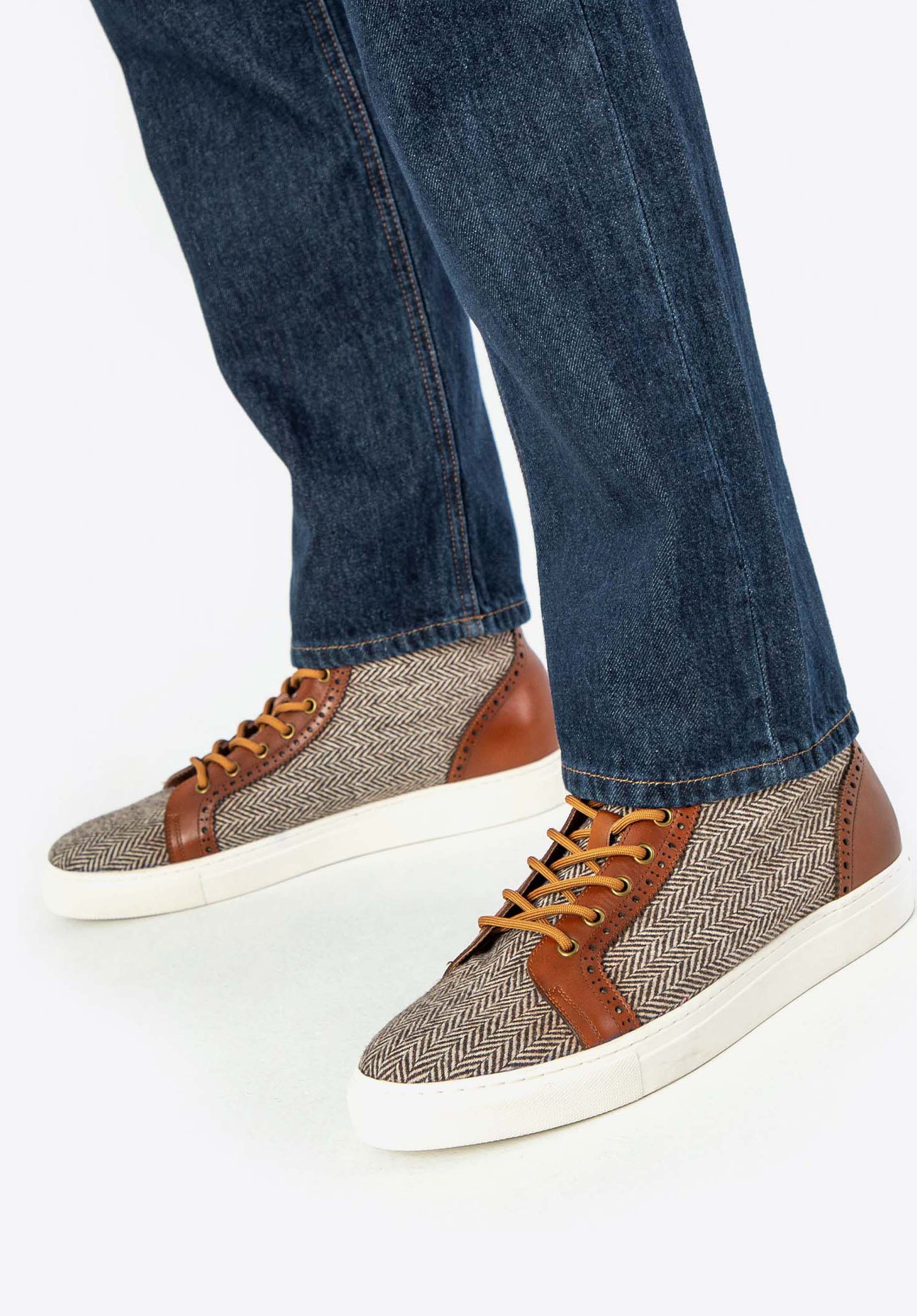 Ez aférfi edzőcipő a kényelem kvintesszenciája, a legjobb minőségű természetes sima bőrből készült, finoman kidolgozott, textilanyagból készült panelekkel kiegészítve. A kivételesen puha bőrbélés páratlan viselési kényelmet és lábvédelmet biztosít. Az edzőcipő lekerekített orrral és elegáns fűzővel rendelkezik, ami megkülönbözteti más edzőcipőktől. A masszív gumitalp stabilitást és hosszú élettartamot biztosít, a kis perforációk pedig, ahol az anyagok összeérnek, átengedik a levegőt, így frissen tartja a lábadat akkor is, ha több órán át viseled a cipőt.