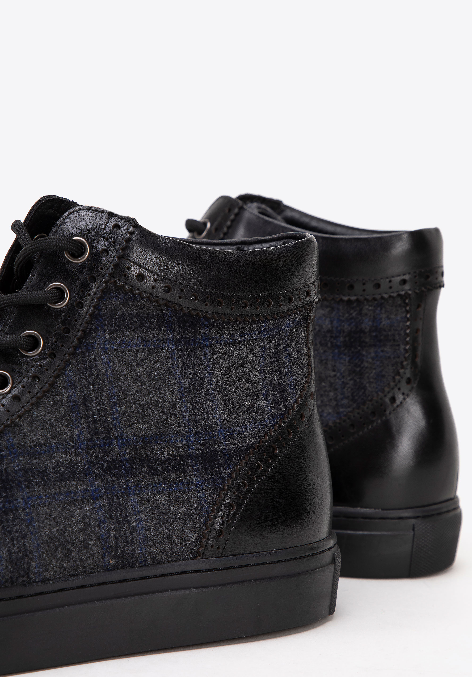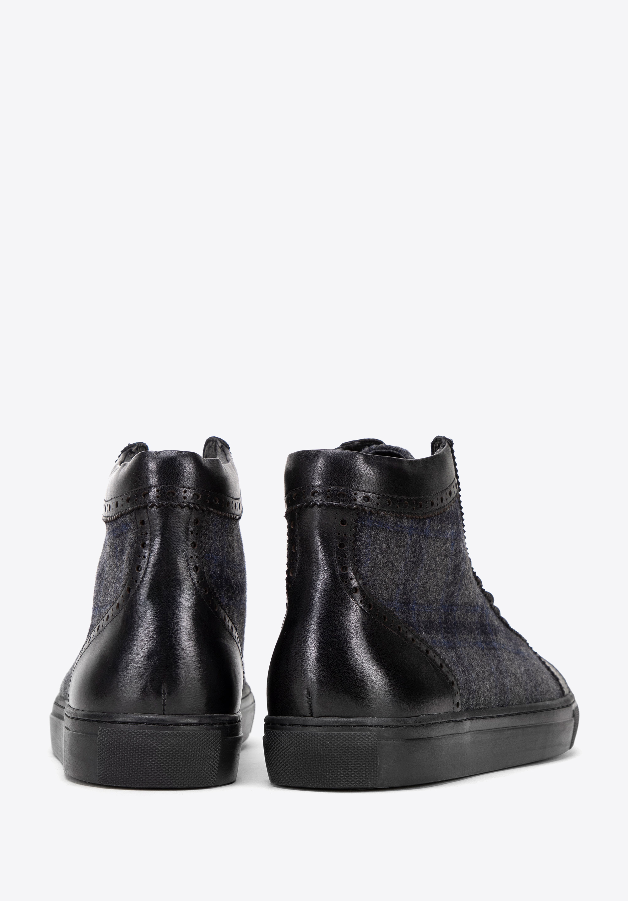 Ez aférfi edzőcipő a kényelem kvintesszenciája, a legjobb minőségű természetes sima bőrből készült, finoman kidolgozott, textilanyagból készült panelekkel kiegészítve. A kivételesen puha bőrbélés páratlan viselési kényelmet és lábvédelmet biztosít. Az edzőcipő lekerekített orrral és elegáns fűzővel rendelkezik, ami megkülönbözteti más edzőcipőktől. A masszív gumitalp stabilitást és hosszú élettartamot biztosít, a kis perforációk pedig, ahol az anyagok összeérnek, átengedik a levegőt, így frissen tartja a lábadat akkor is, ha több órán át viseled a cipőt.