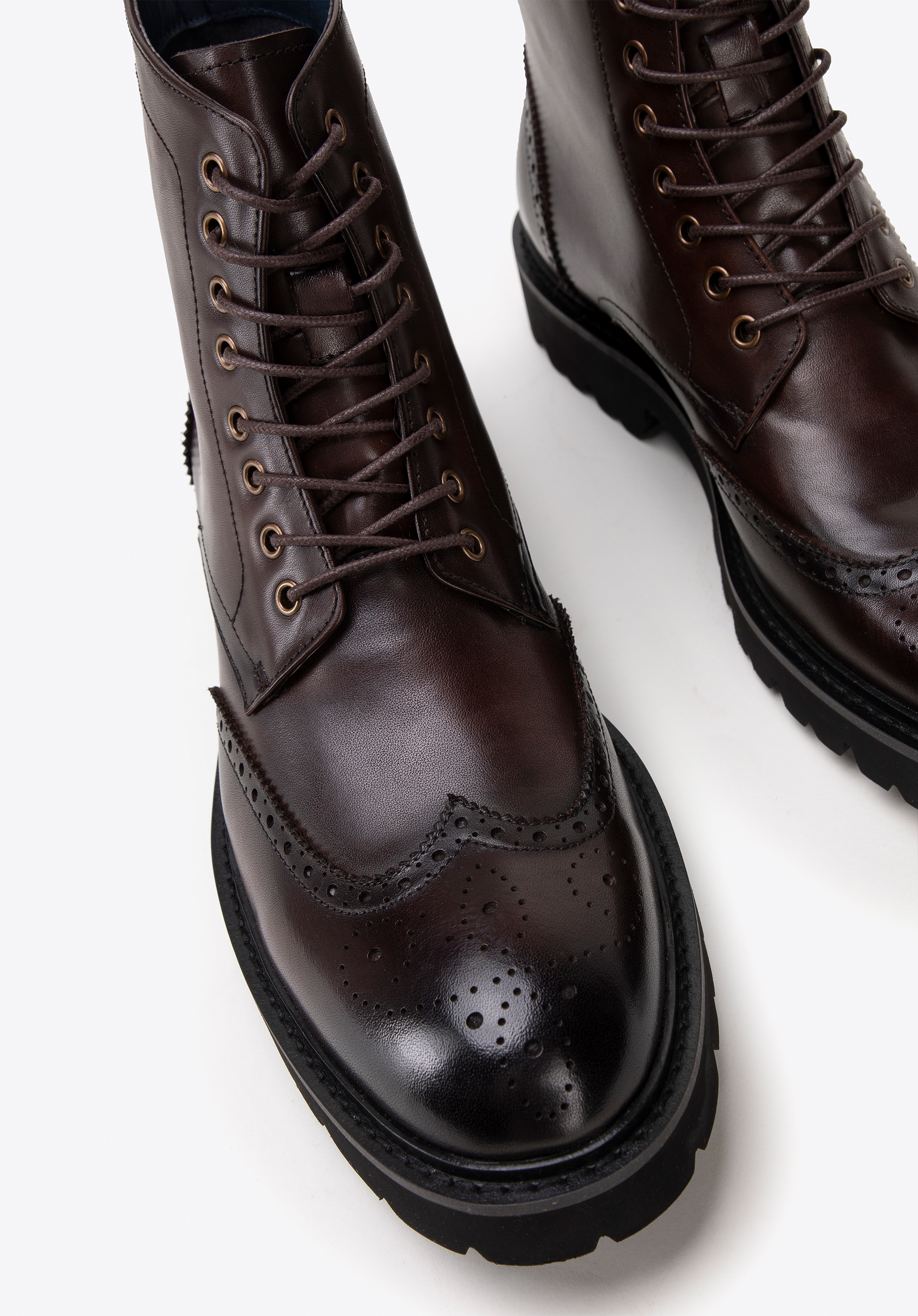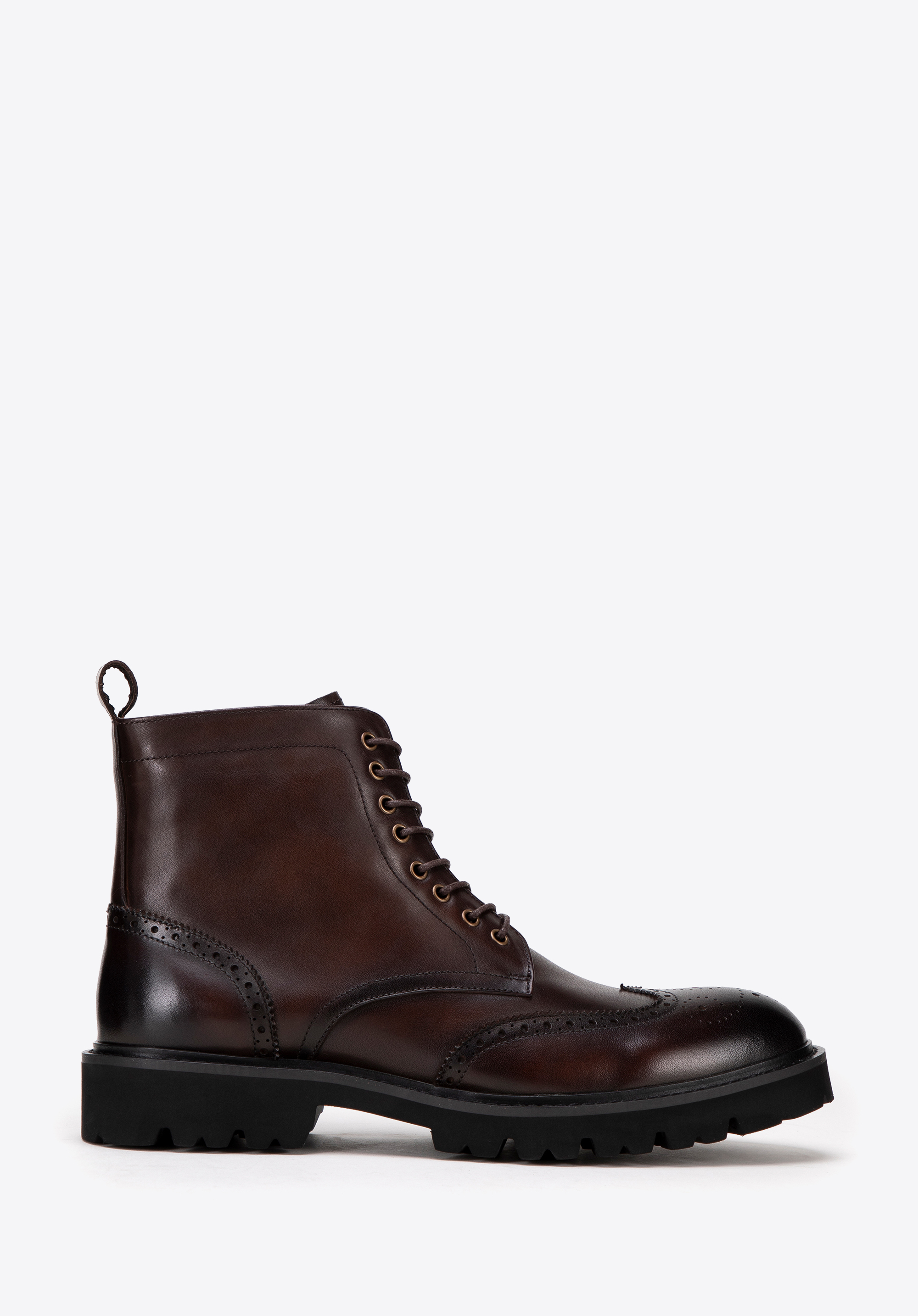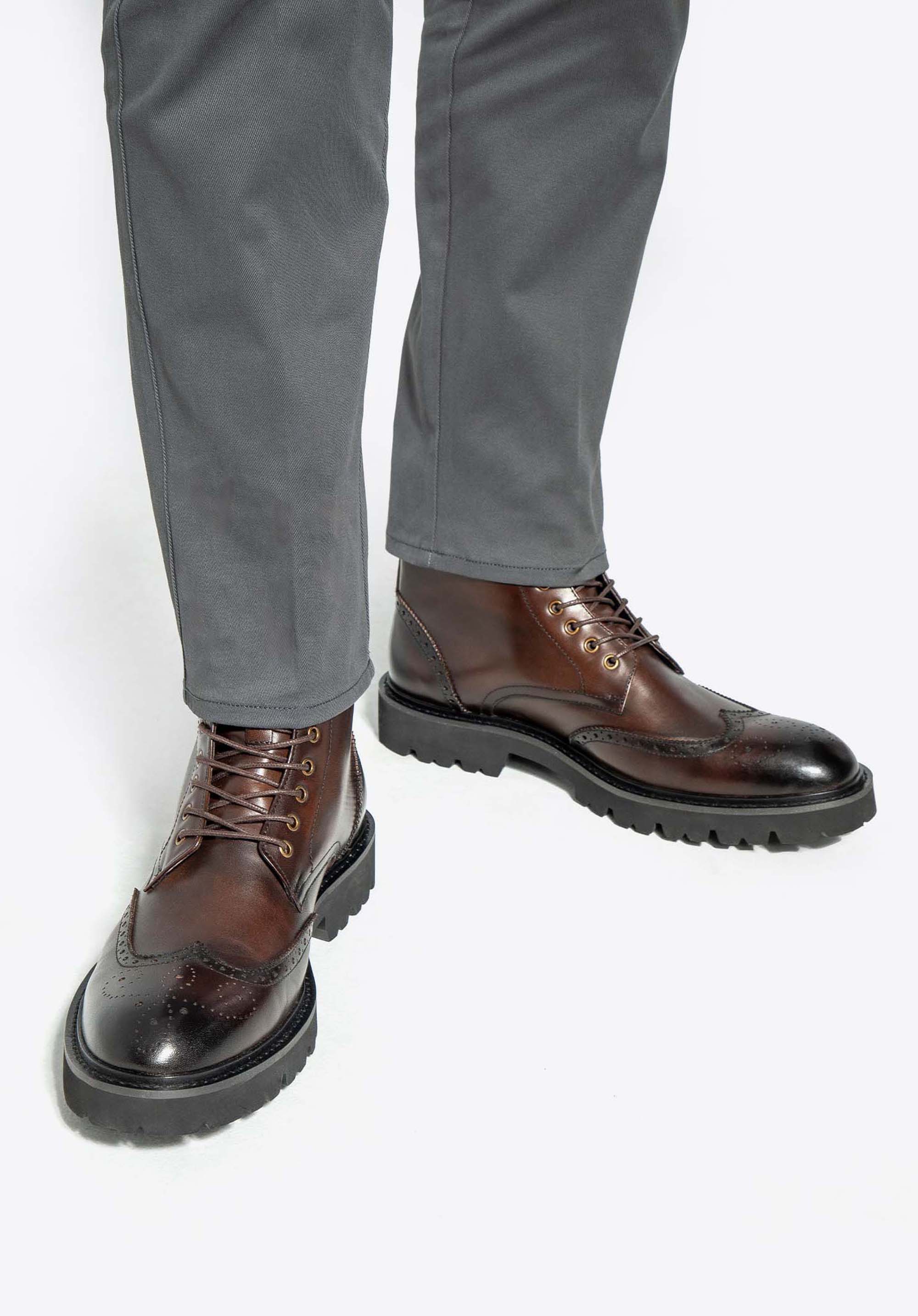 Férfi bőrbakancs perforált díszítőelemekkel Szín: barna