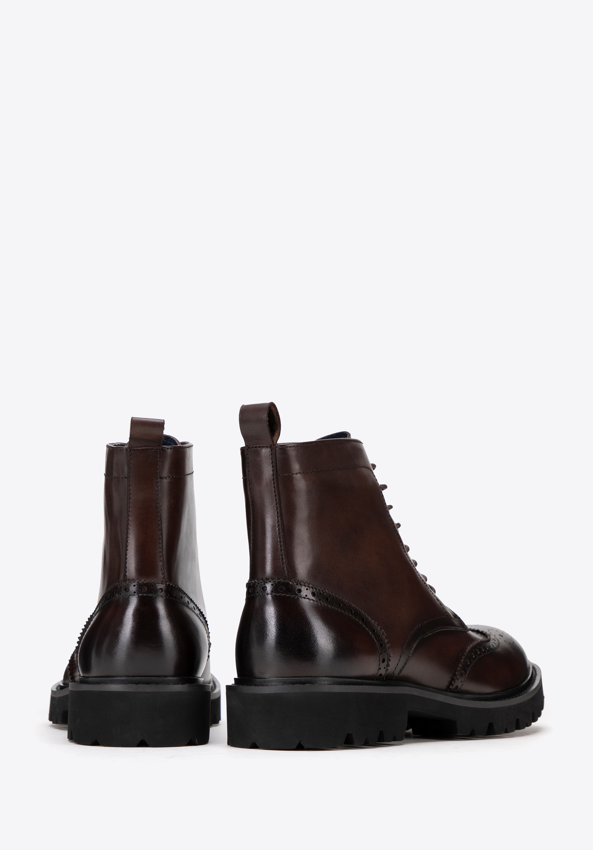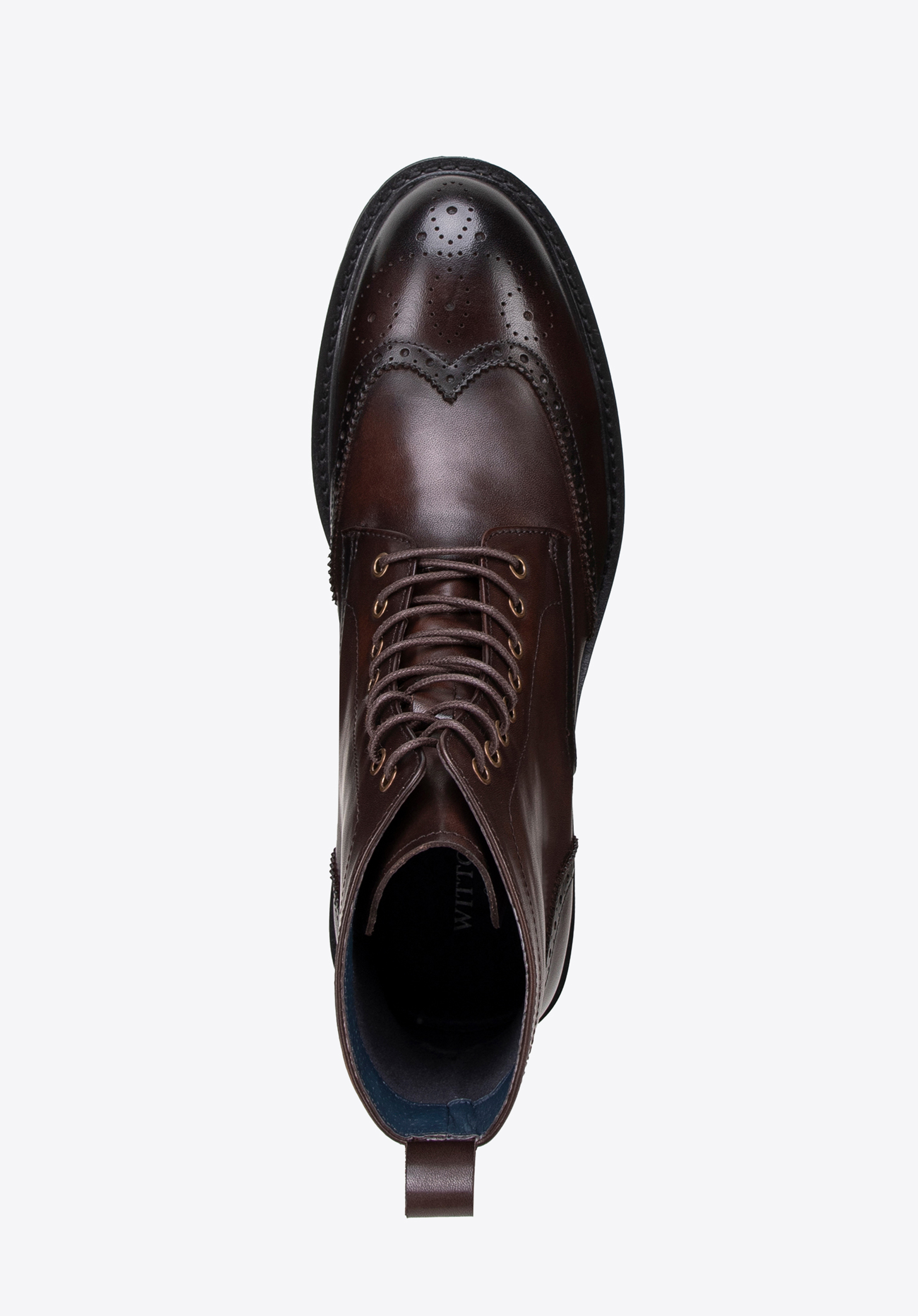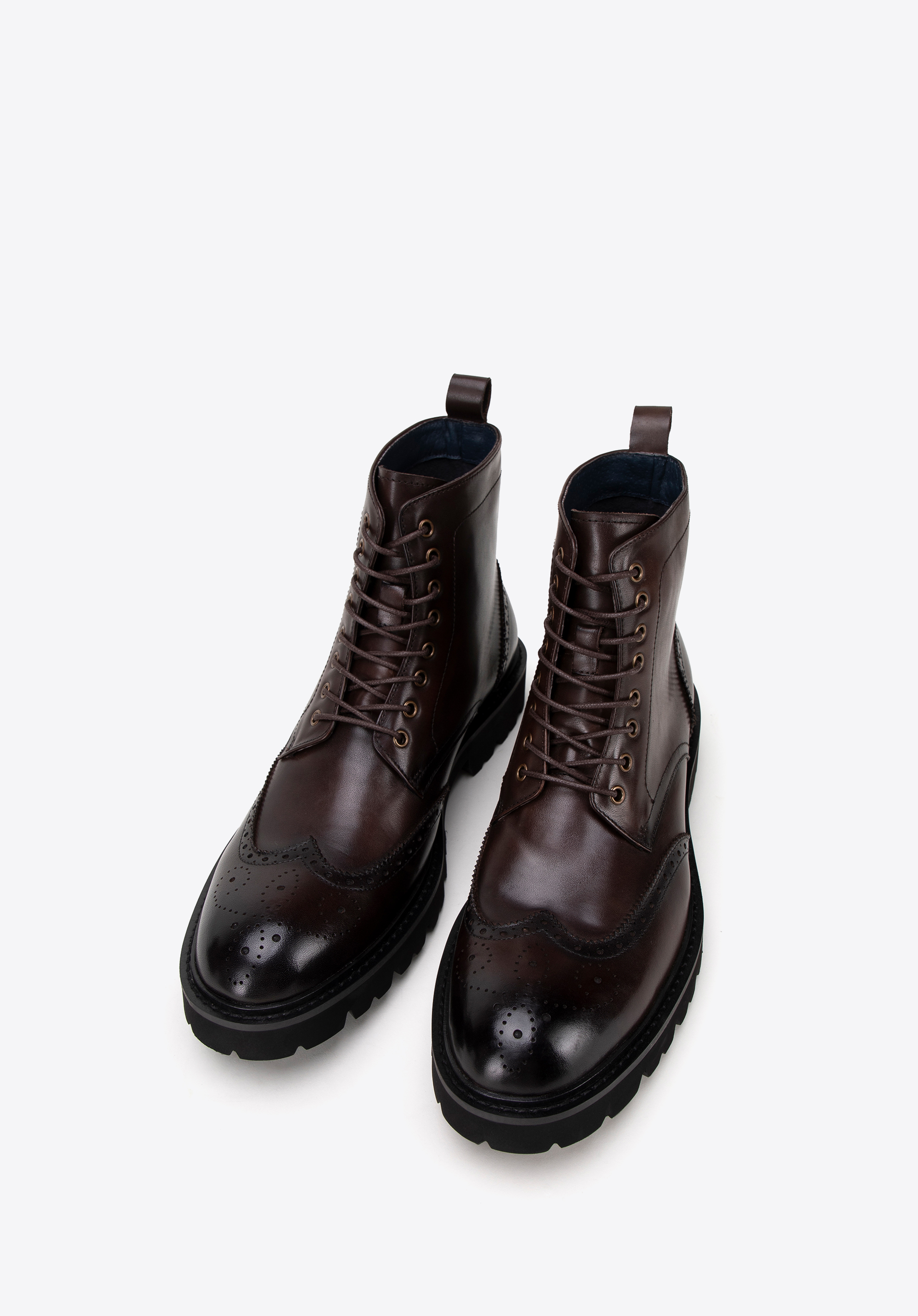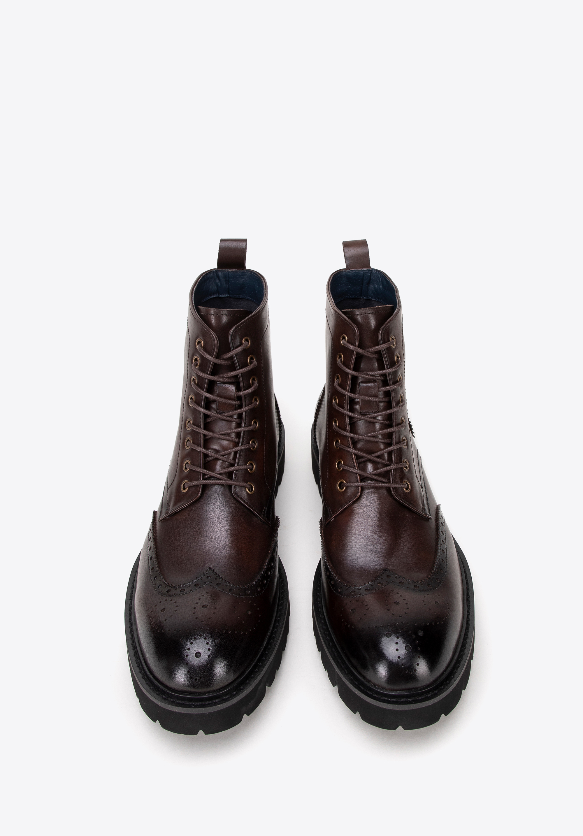 Férfi bőrbakancs perforált díszítőelemekkel Szín: barna