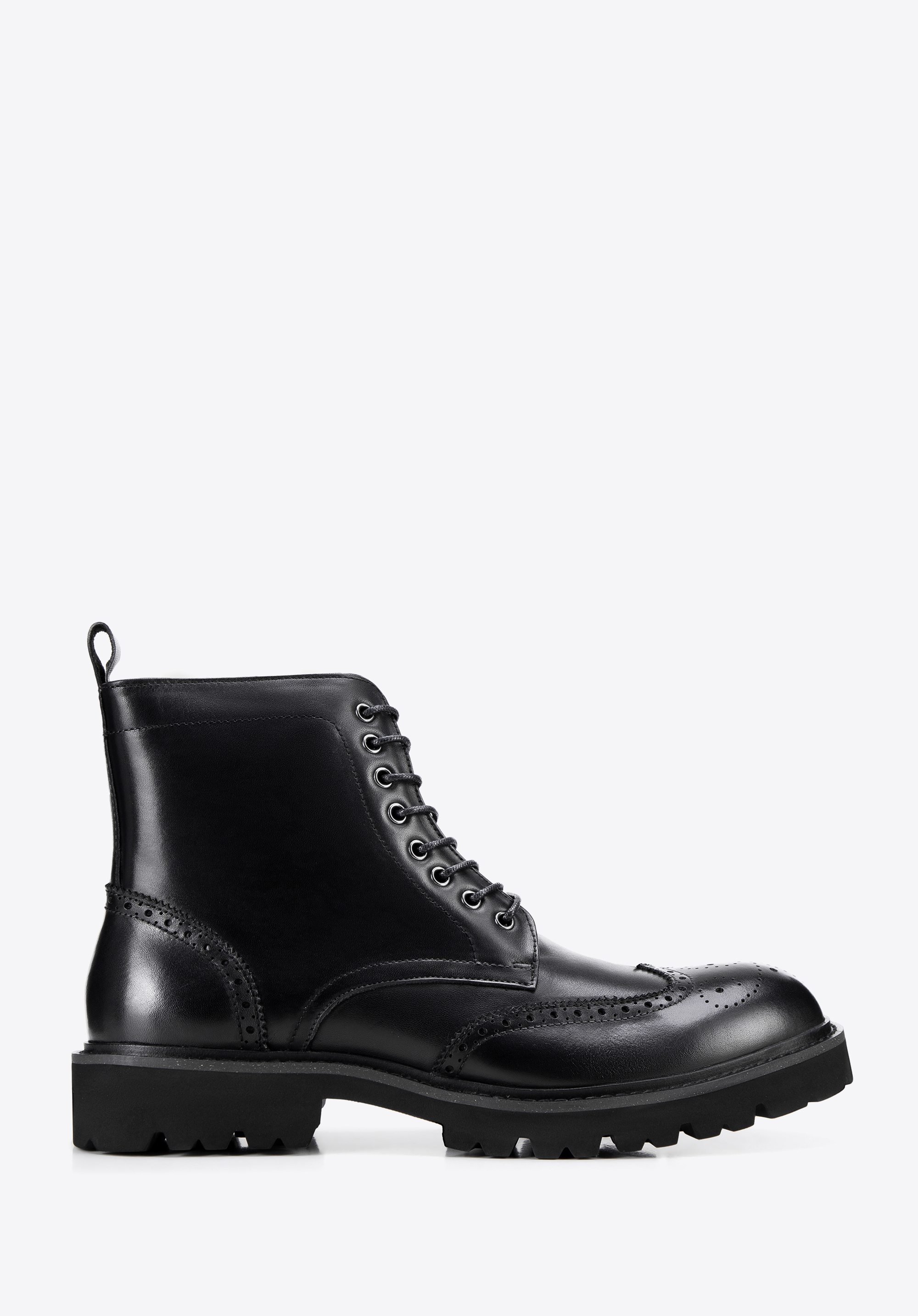 Férfi bőrbakancs perforált díszítőelemekkel Szín: fekete