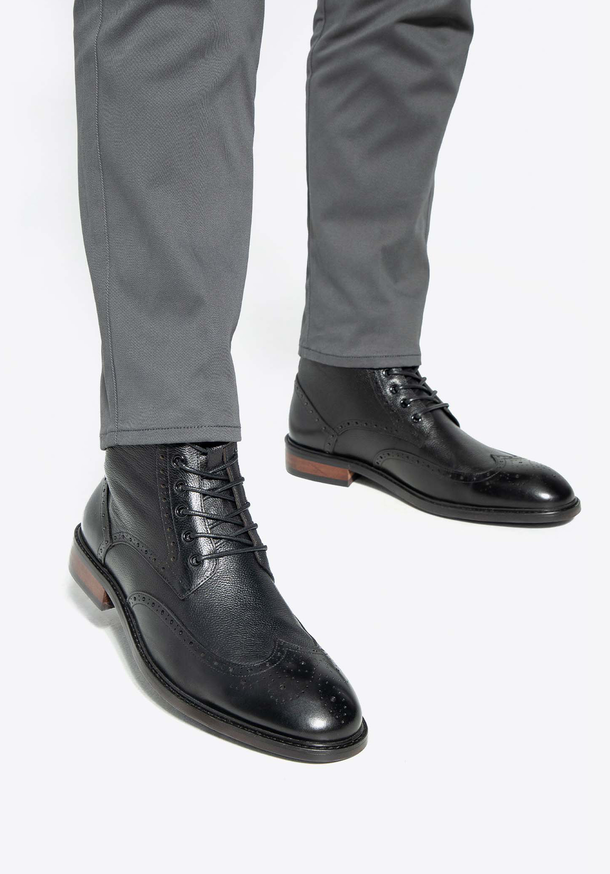 Ez a csizma ötvözi az eleganciát és a kényelmet a kiváló minőségű anyagok és a masszív felépítés révén. Férfi fűzős csizmáink kiváló minőségű, természetes bőrből készültek, ami nemcsak esztétikus megjelenést, hanem tartósságot is biztosít. A lapos sarok stabilitást és kényelmet biztosít, míg a csúszásmentes gumitalp kiváló tapadást biztosít. A klasszikus fűzés tökéletes illeszkedést tesz lehetővé, a finom perforációk pedig könnyedséget adnak és légáteresztővé teszik, kreatív stílust teremtve.