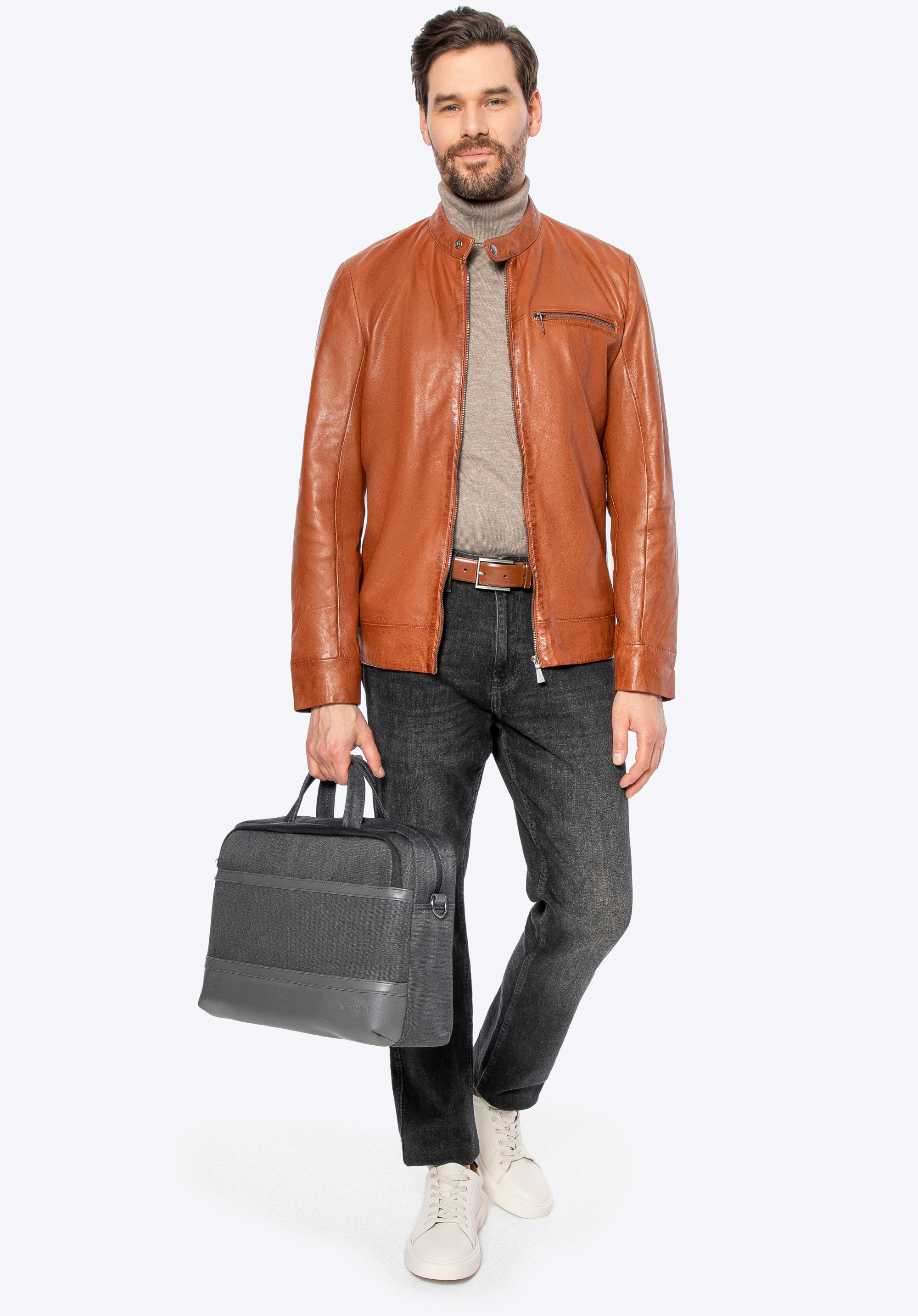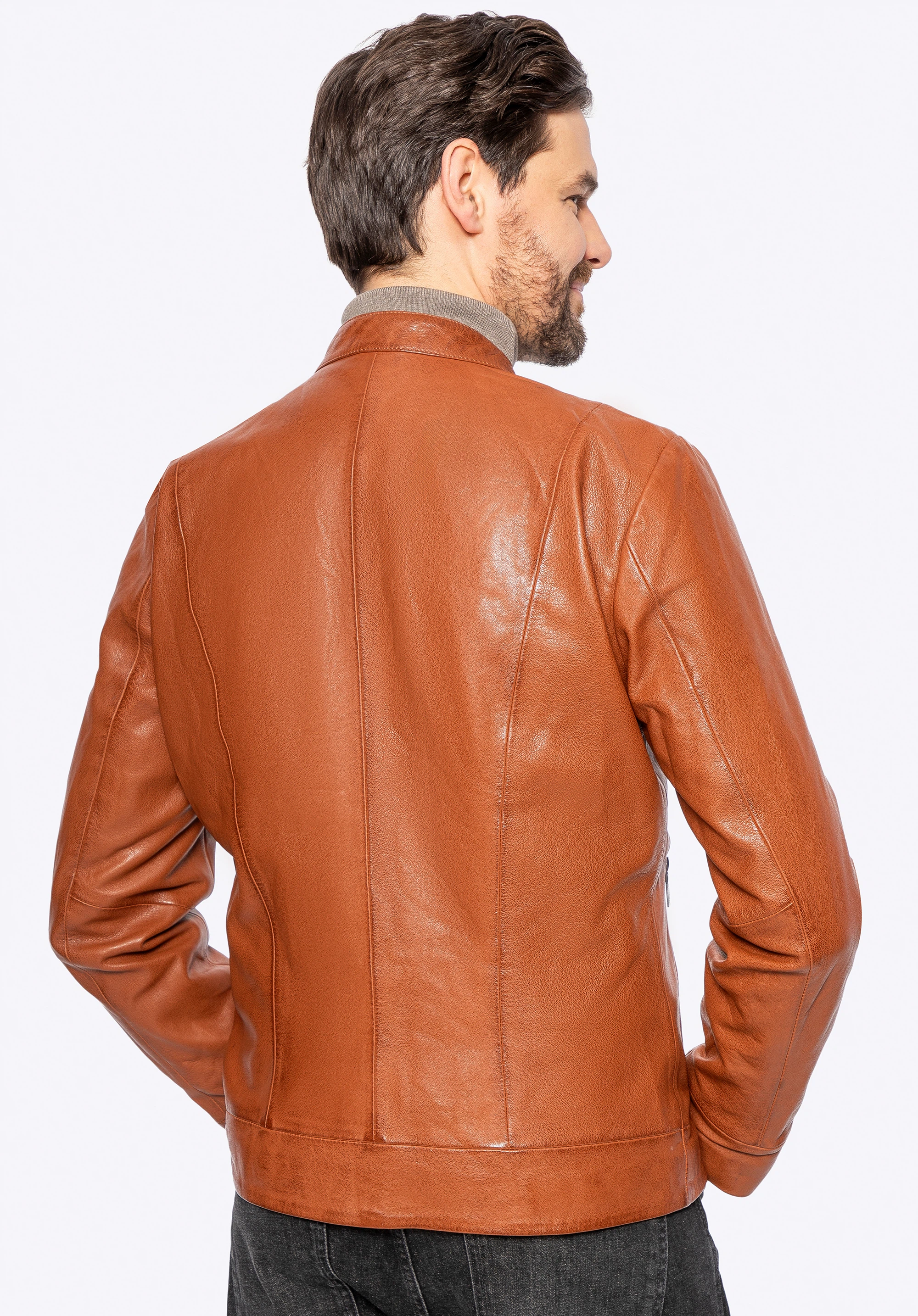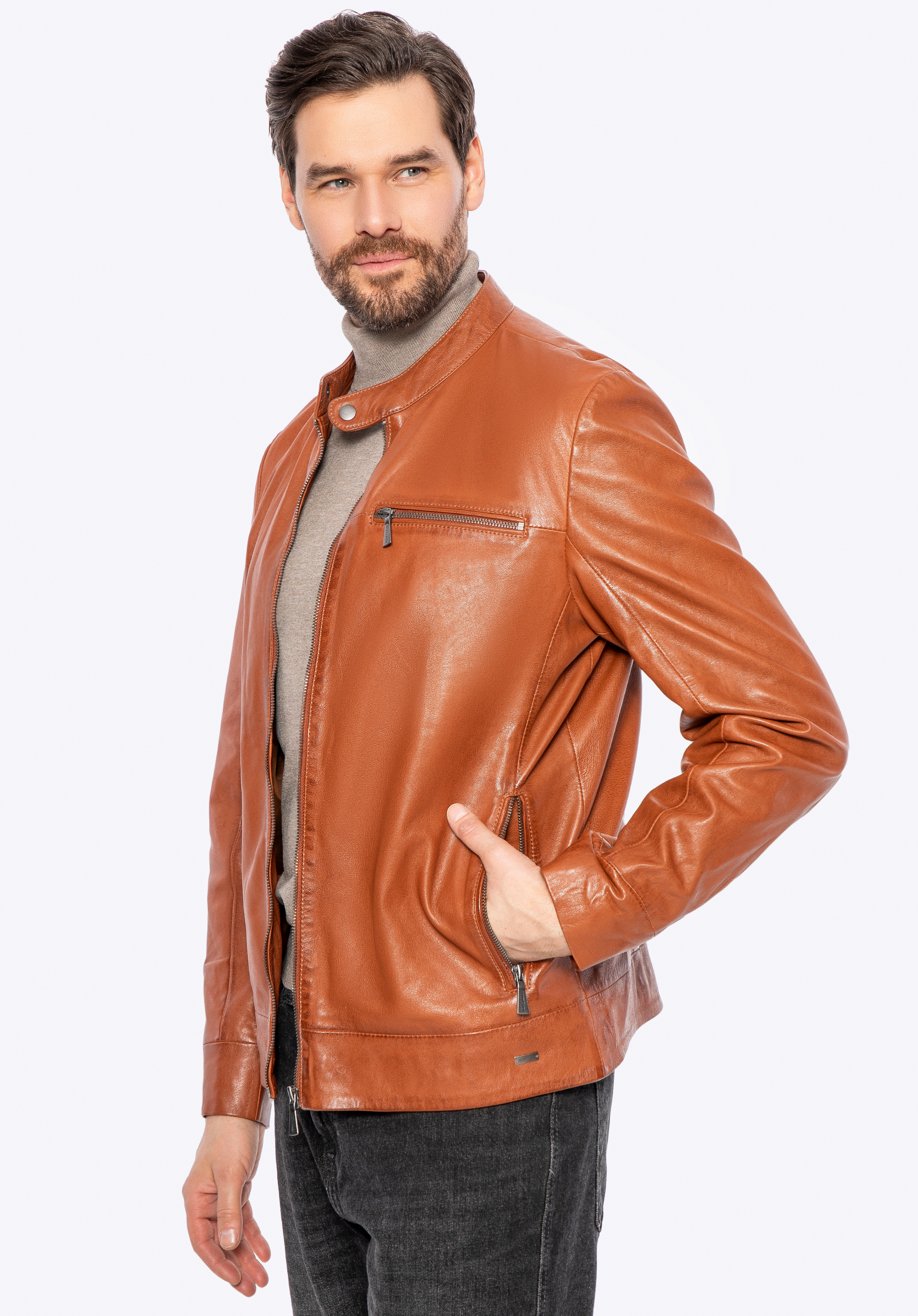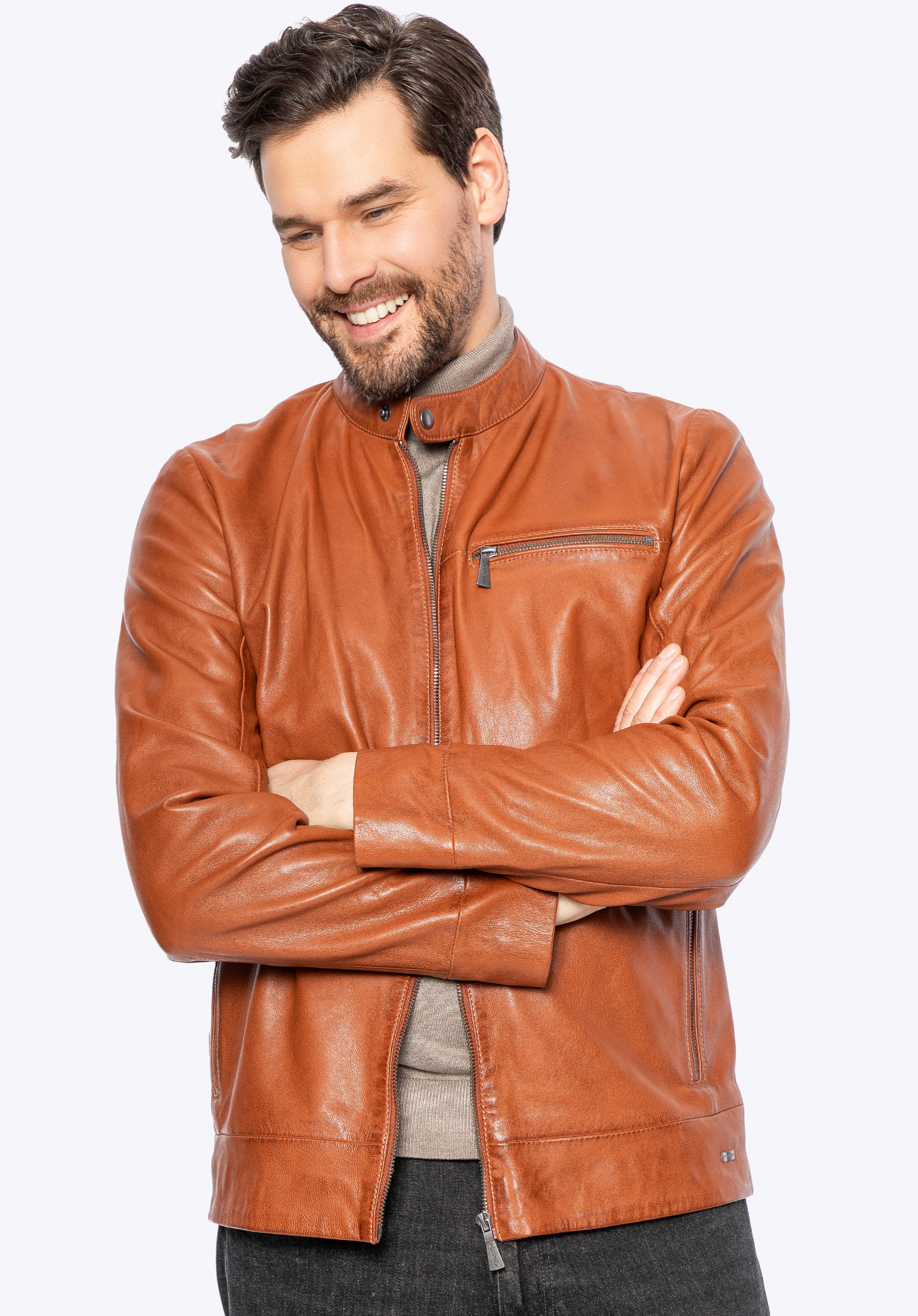 Férfi bőrdzseki báránybőrből világosbarna