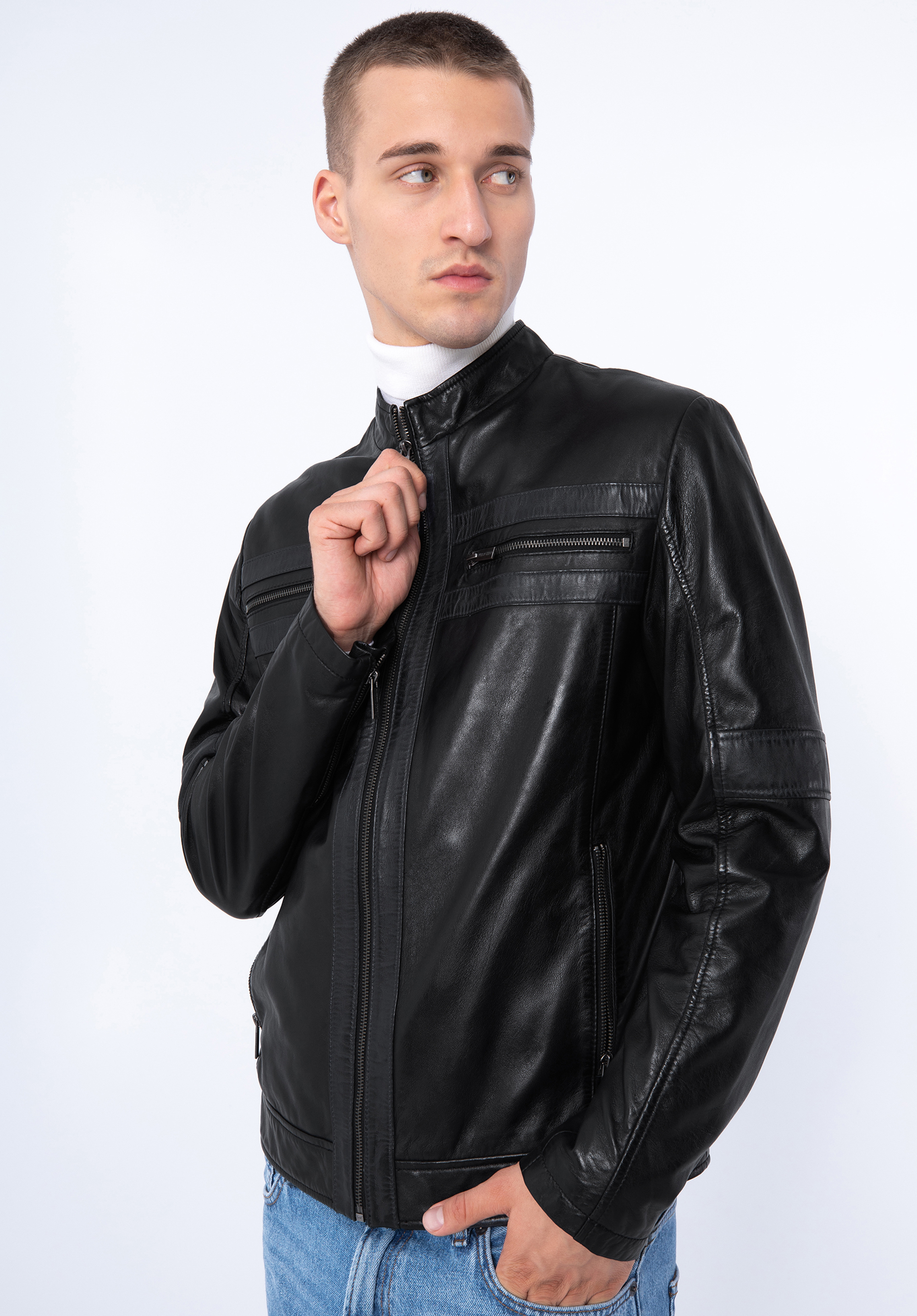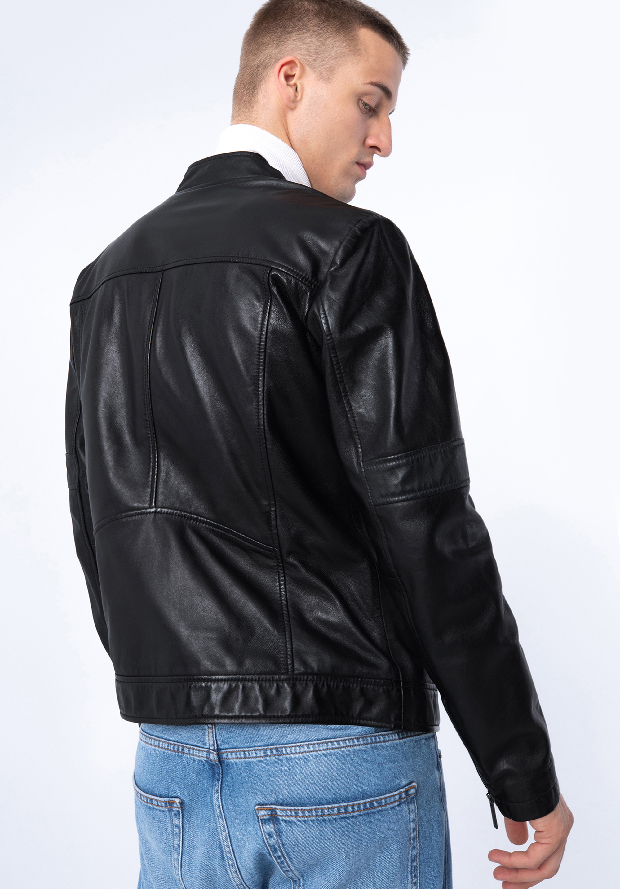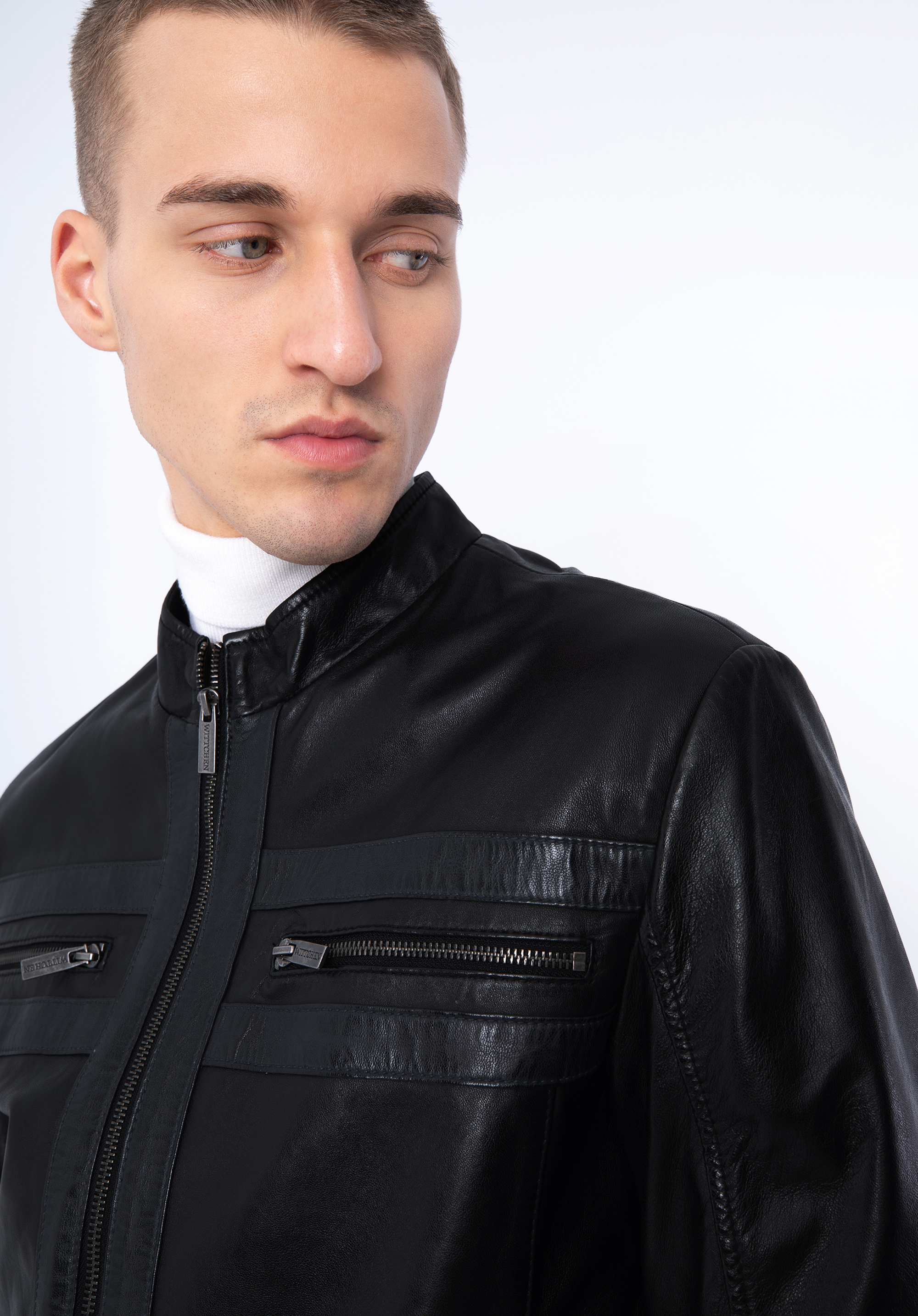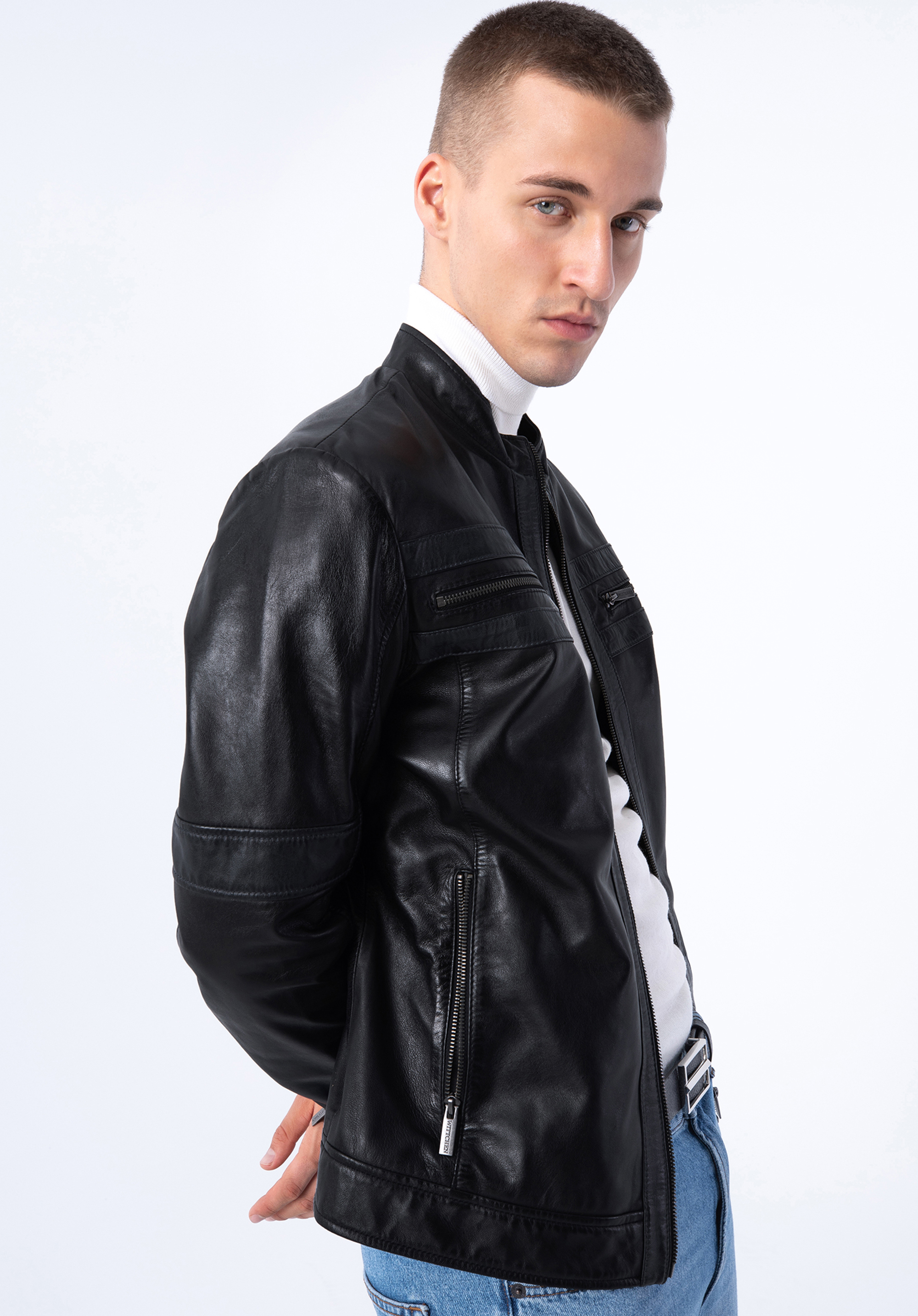 A bőrkabát időtlen eleme minden férfi ruhatárának. Ez a modell kiváló minőségű természetes bőrből készült , így évekig elkísér téged. Zsebekkel rendelkezik a mellkas szintjén, emellett dekoratív vízszintes csíkokkal van ellátva . A kulcsokat például az alsó cipzáras zsebekbe teheted anélkül, hogy attól félnél, hogy kiesnek. Ennek a kabátnak a klasszikus dizájnja munkába és munka után is viselhető, illik például elegáns nadrághoz, inghez, farmerhez és pulóverhez. Ez a férfi bőrdzseki időtlen kiegészítő, amit mindennap viselhetsz.