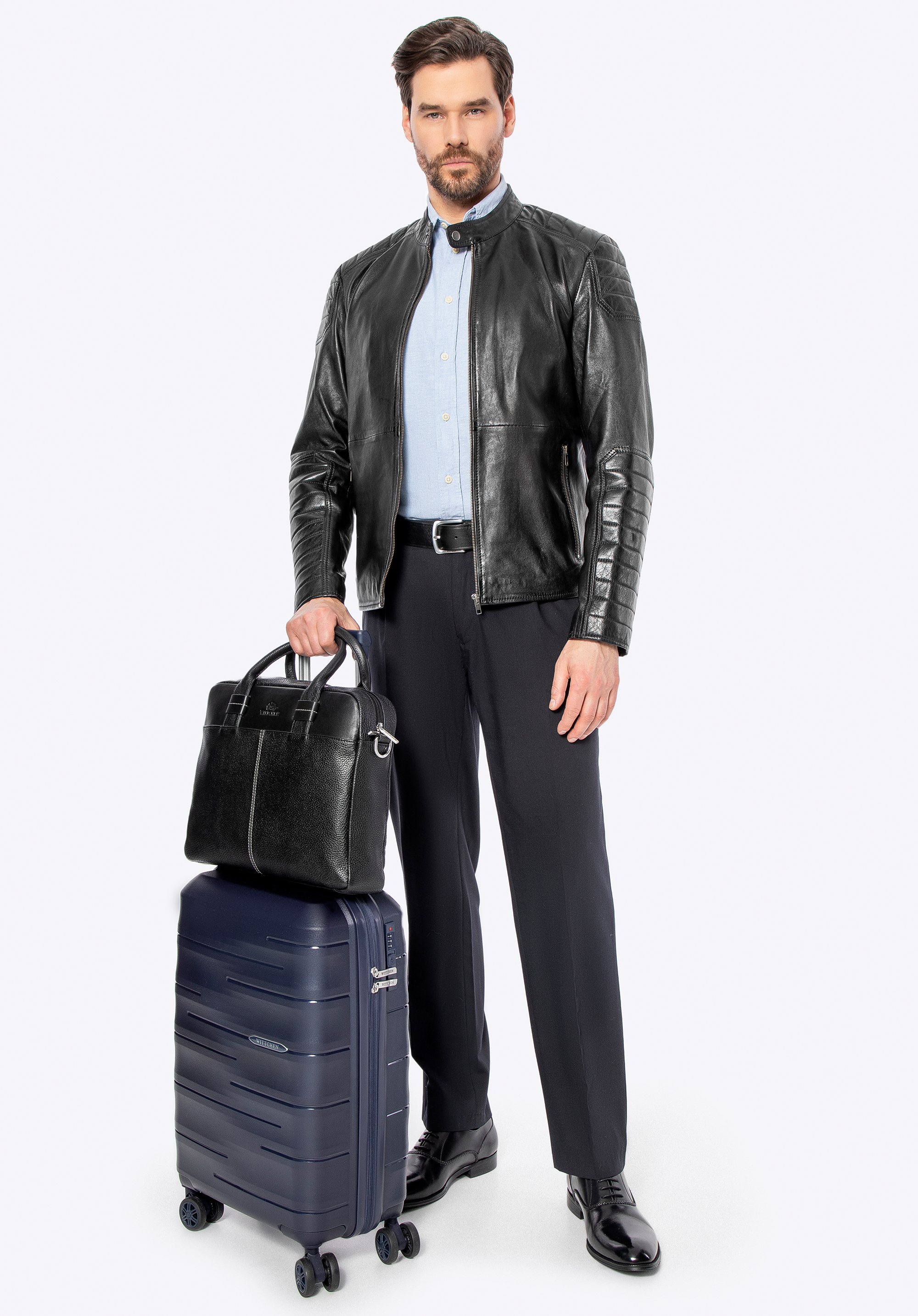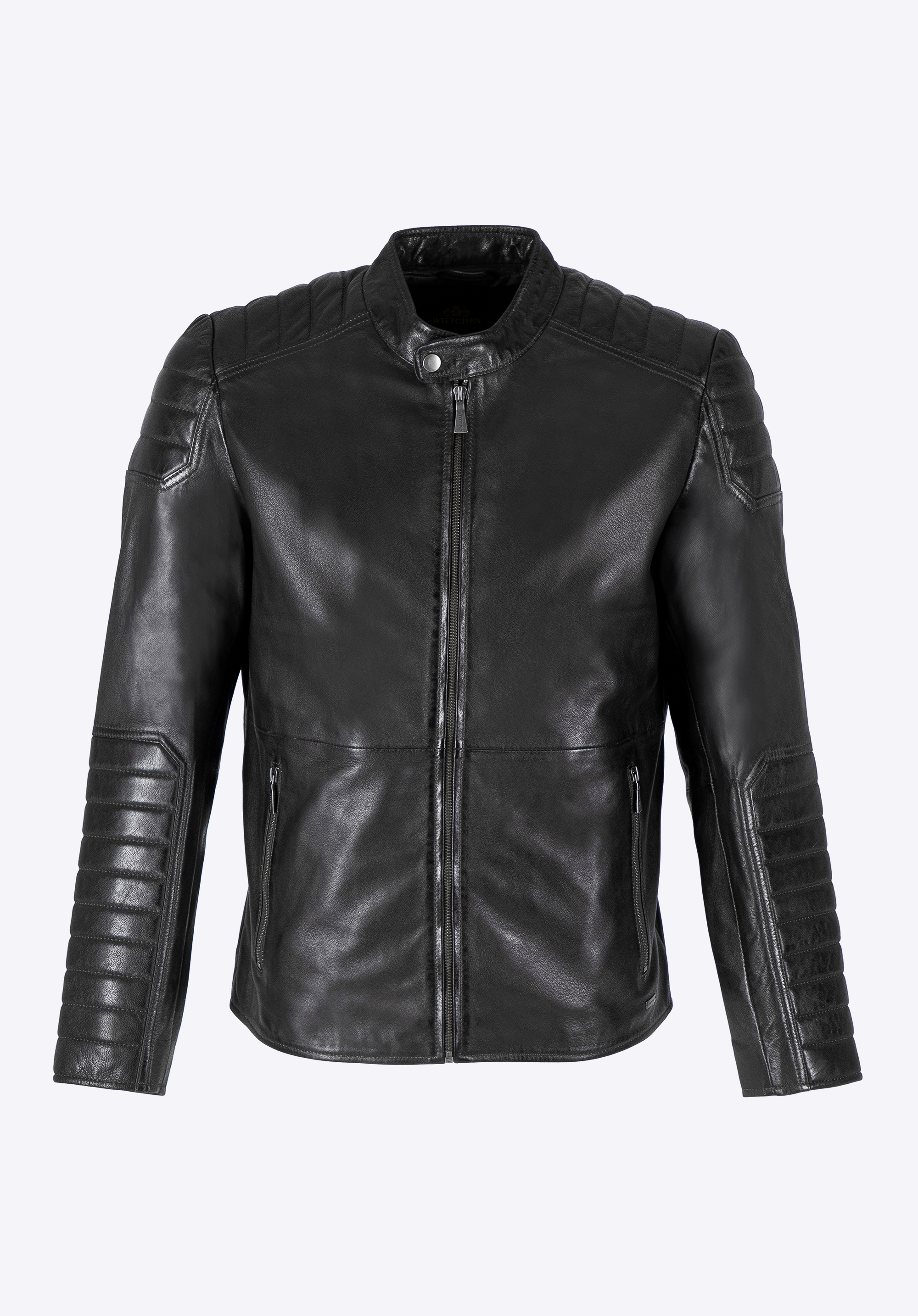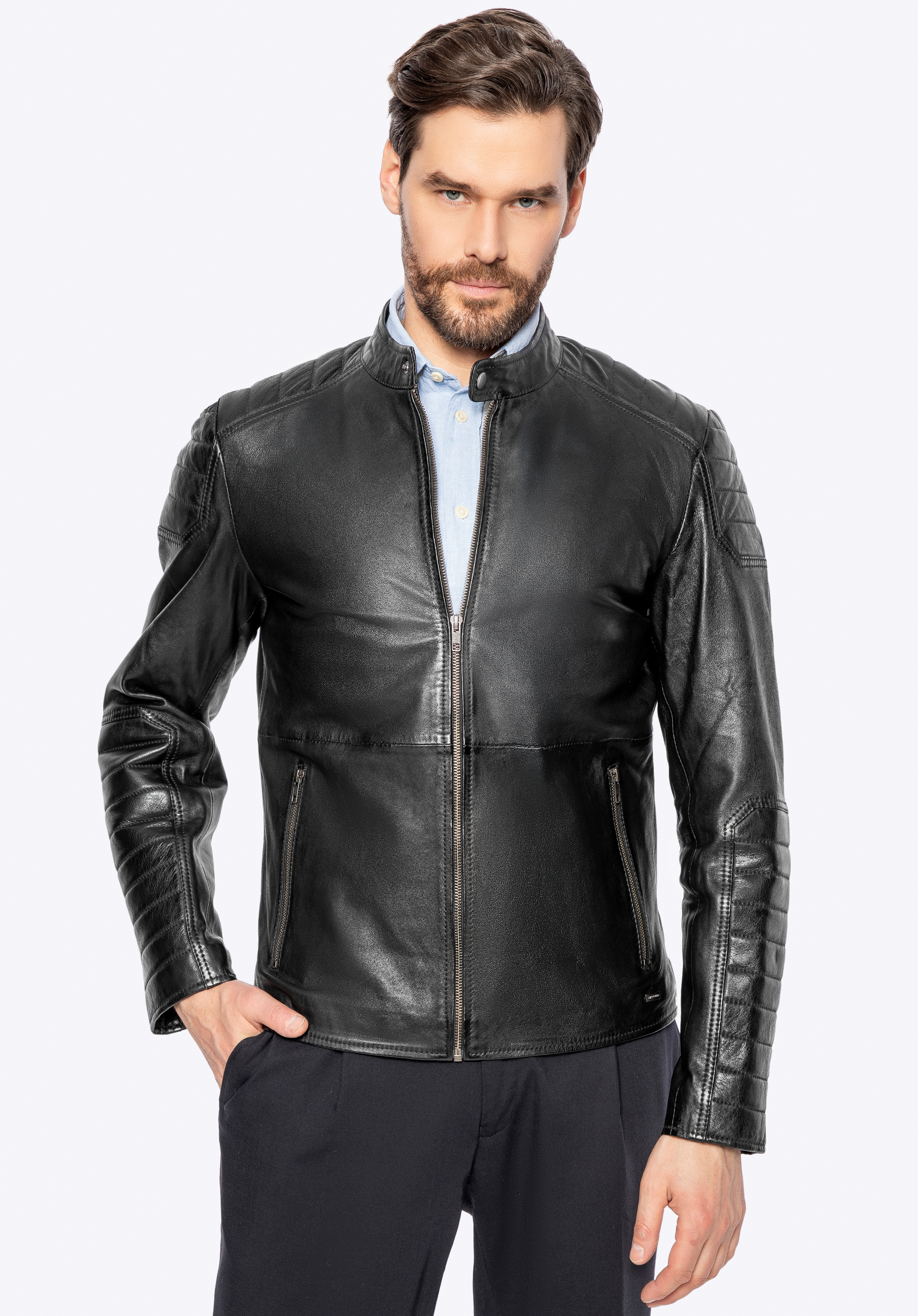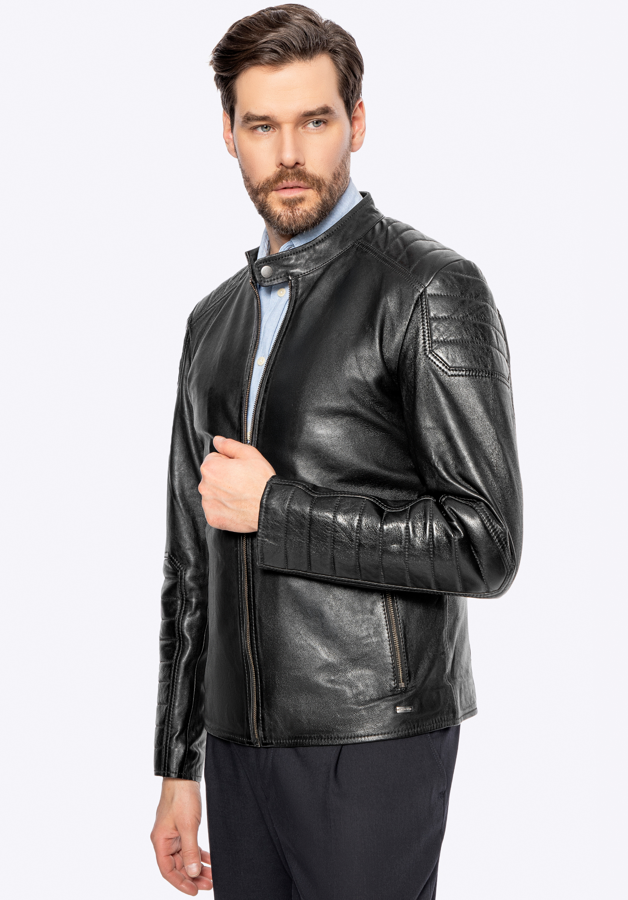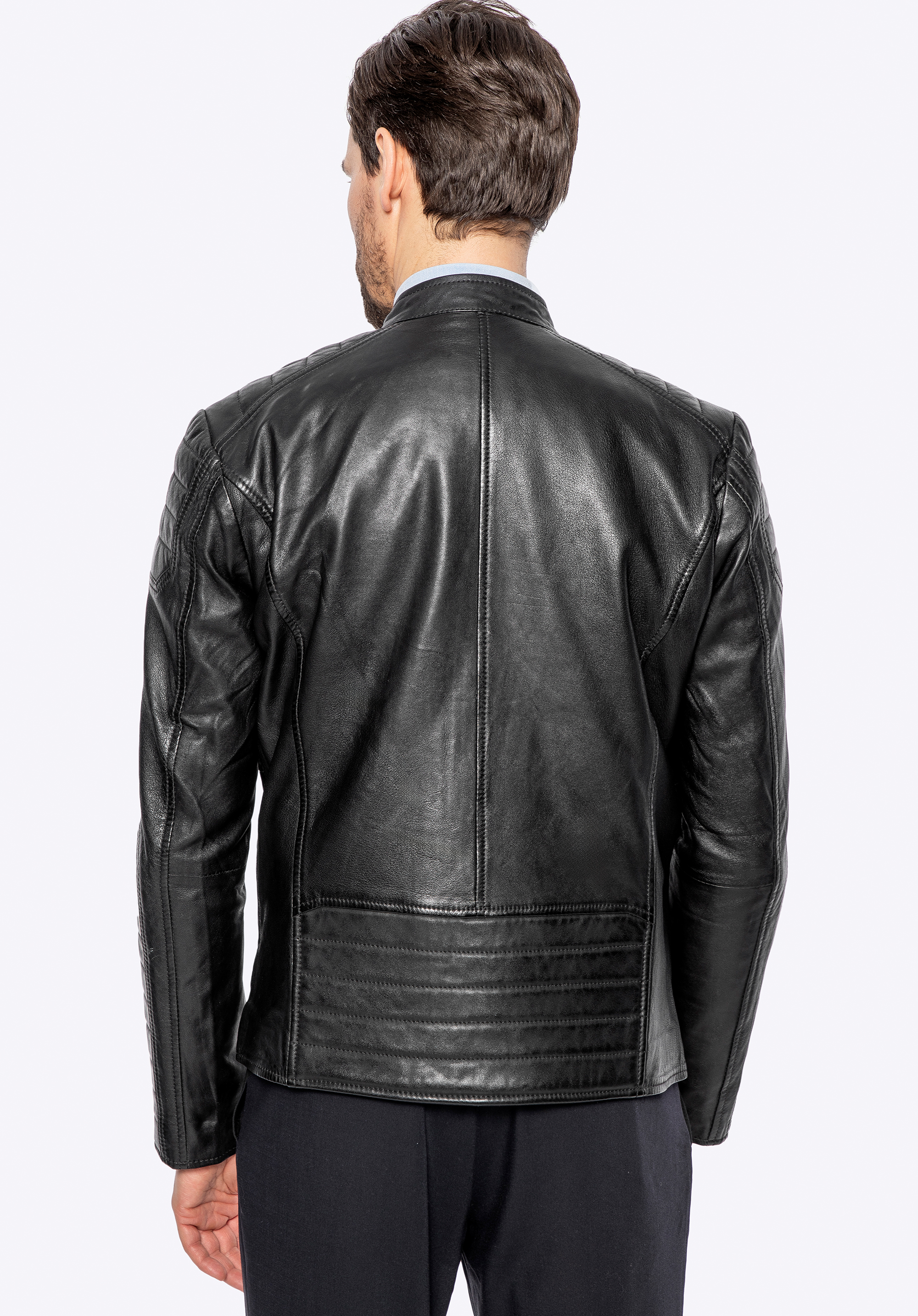 Férfi bőrkabát steppelt panelekkel fekete
