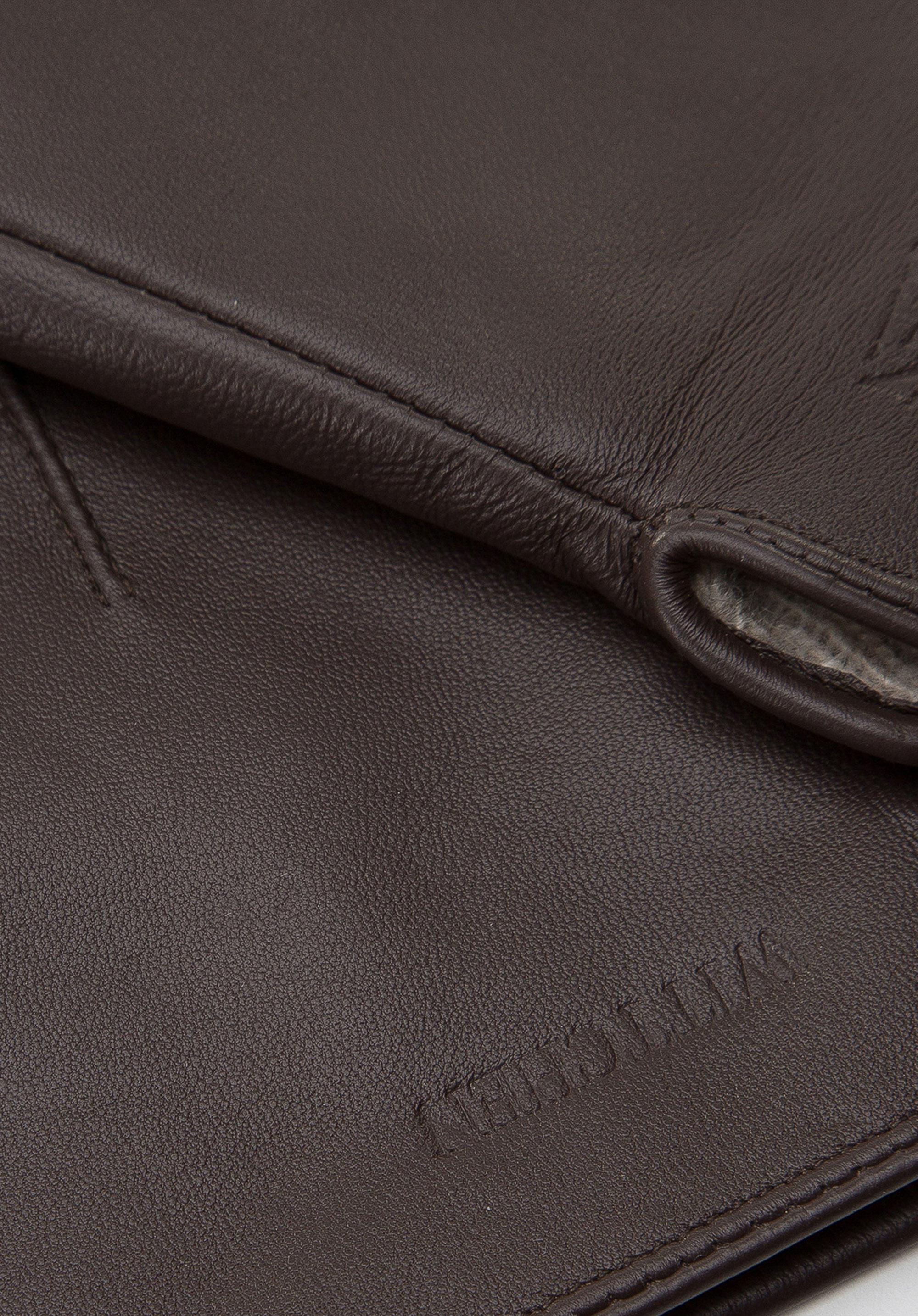Klasszikus és elegáns kesztyű a legjobb minőségű természetes bőrből , amely garantálja a mindennapi viselet nagyszerű kényelmét. A bélés 70% gyapjúból és 30% nylonból készült. A kézfején találhatóöltések férfiasságot kölcsönöznek a kesztyűnek, míg a rugalmas csuklóösszevonás biztosítja a jó illeszkedést. A dombornyomott WITTCHEN logóval ellátott bőr kesztyűk remekül passzolnak az őszi-téli ruhákhoz.
