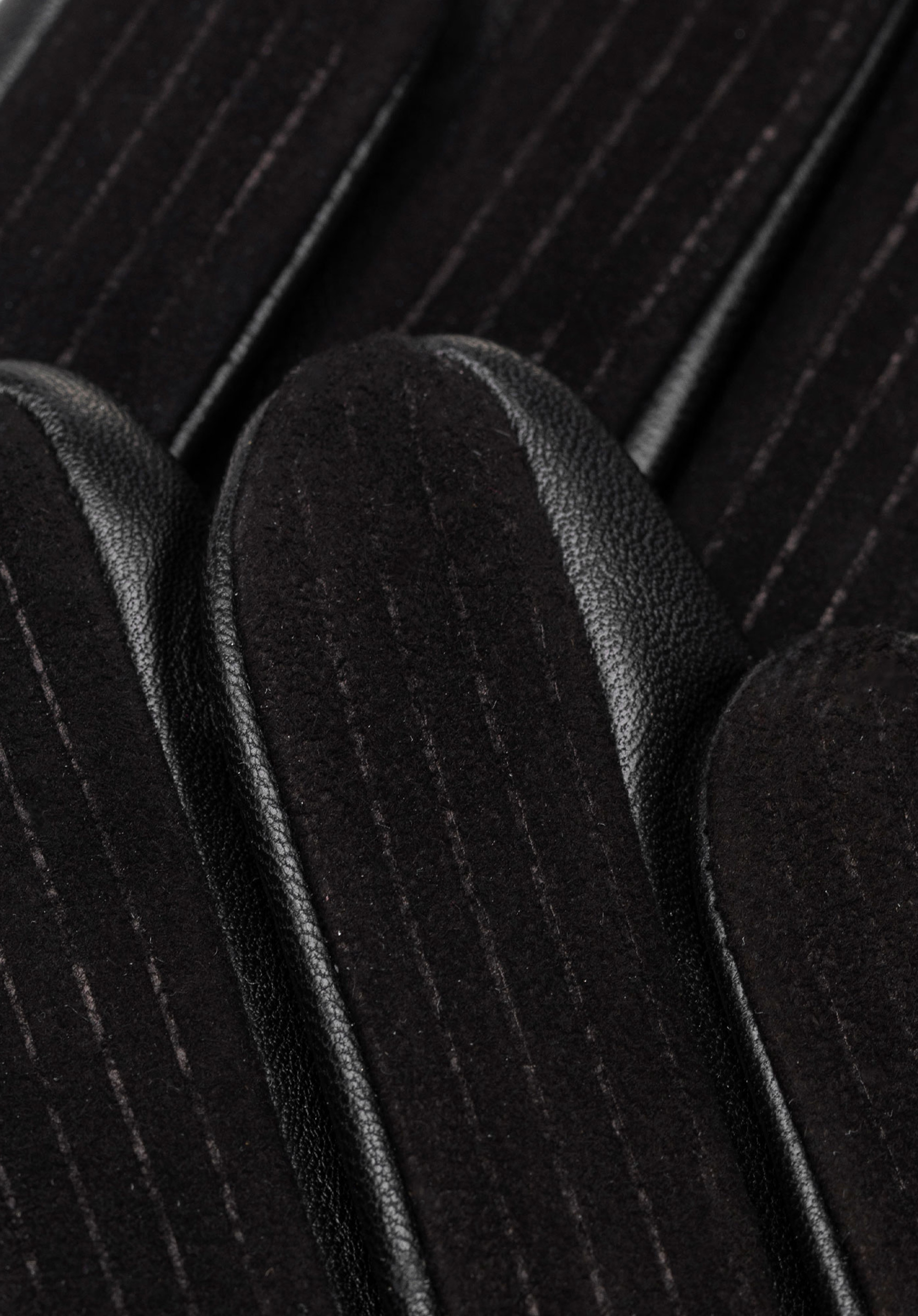 Adj egy csipetnyi kifinomultságot téli öltözékedhez ezzel a férfias darabbal. Kiváló minőségű természetes bőrből készült kesztyű. A puha poliészter anyaggal bélelt belső rész melegséget és kényelmet biztosít még a leghidegebb napokon is. A finom csíkos minta modern, elegáns megjelenést kölcsönöz ennek a kesztyűnek, amely könnyedén kiegészít bármilyen öltözéket.