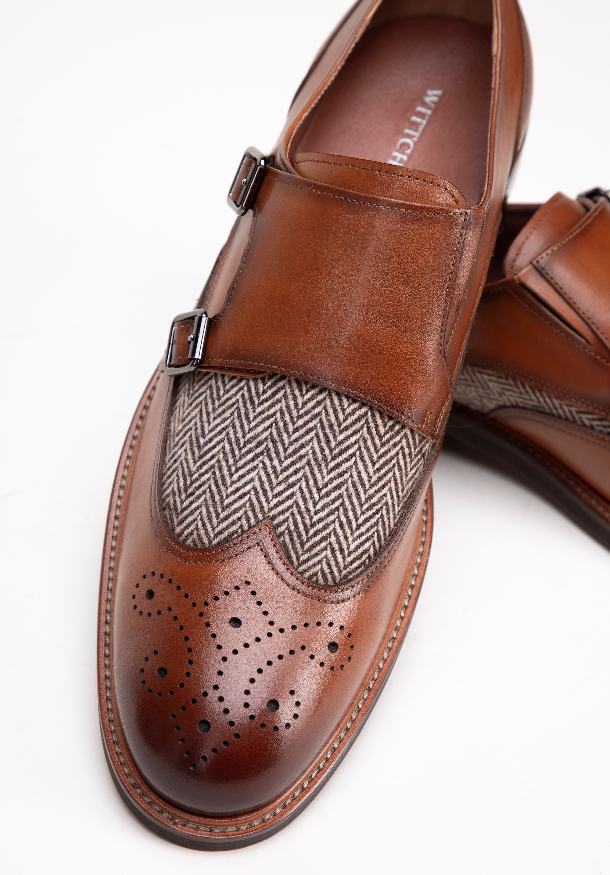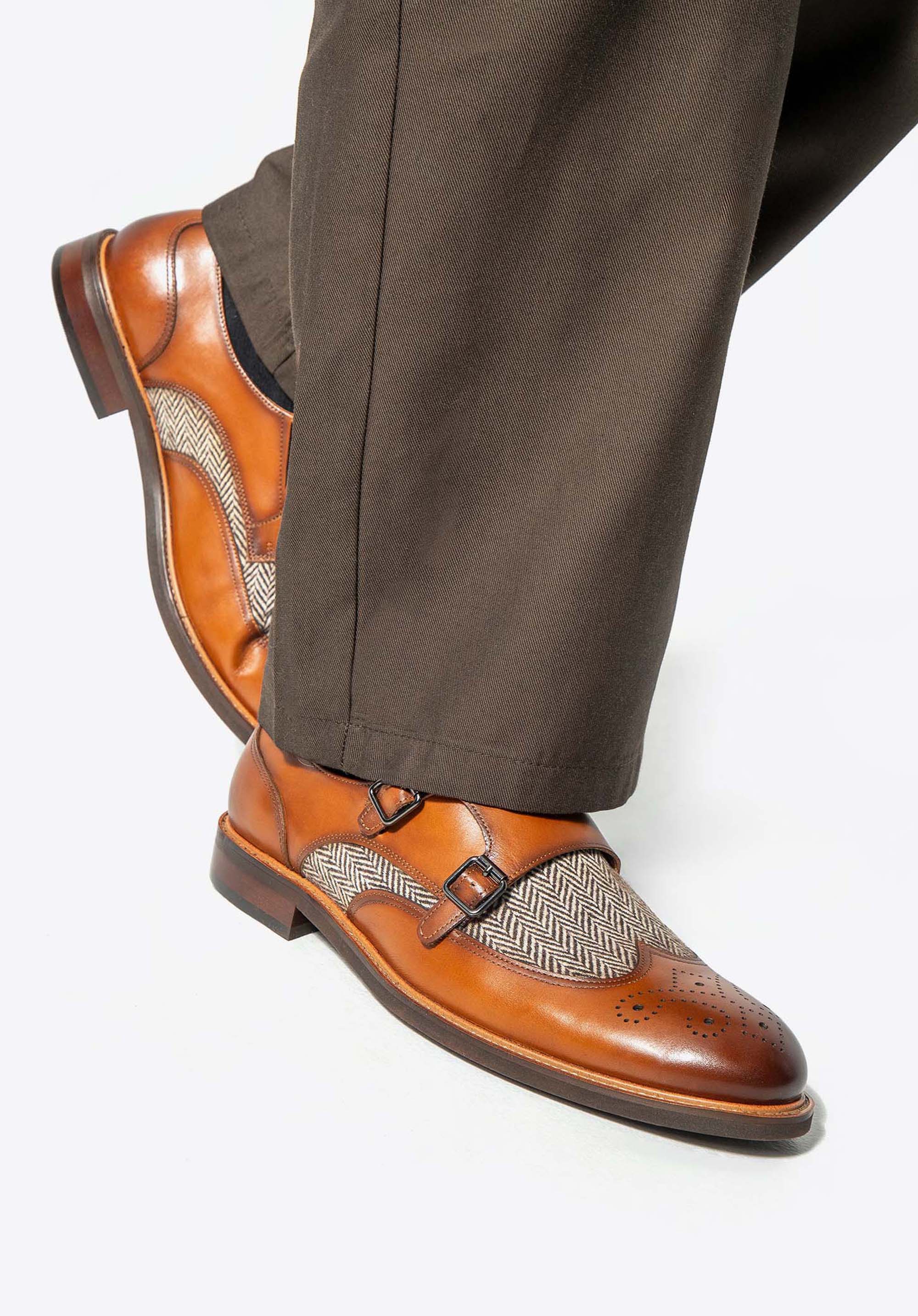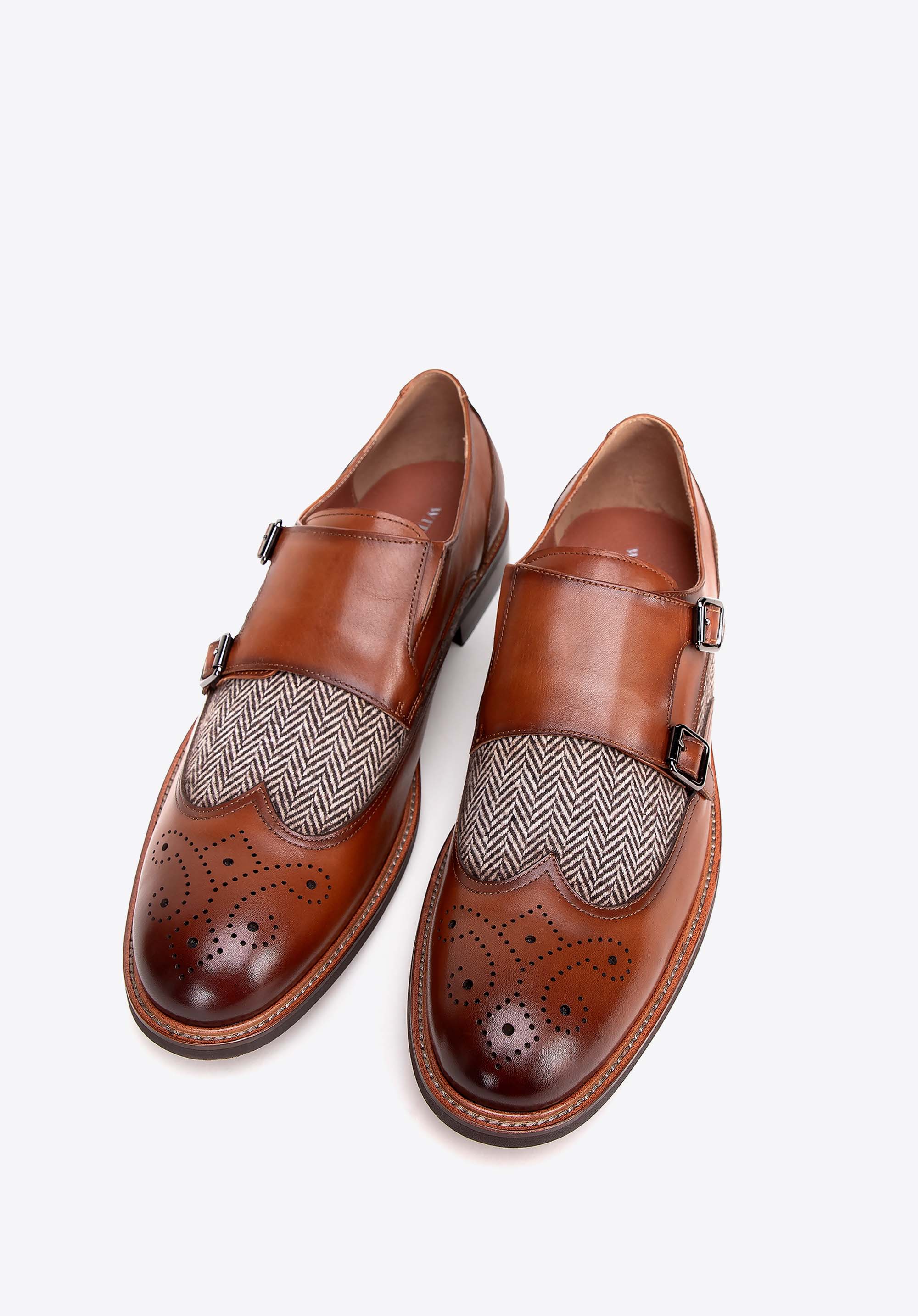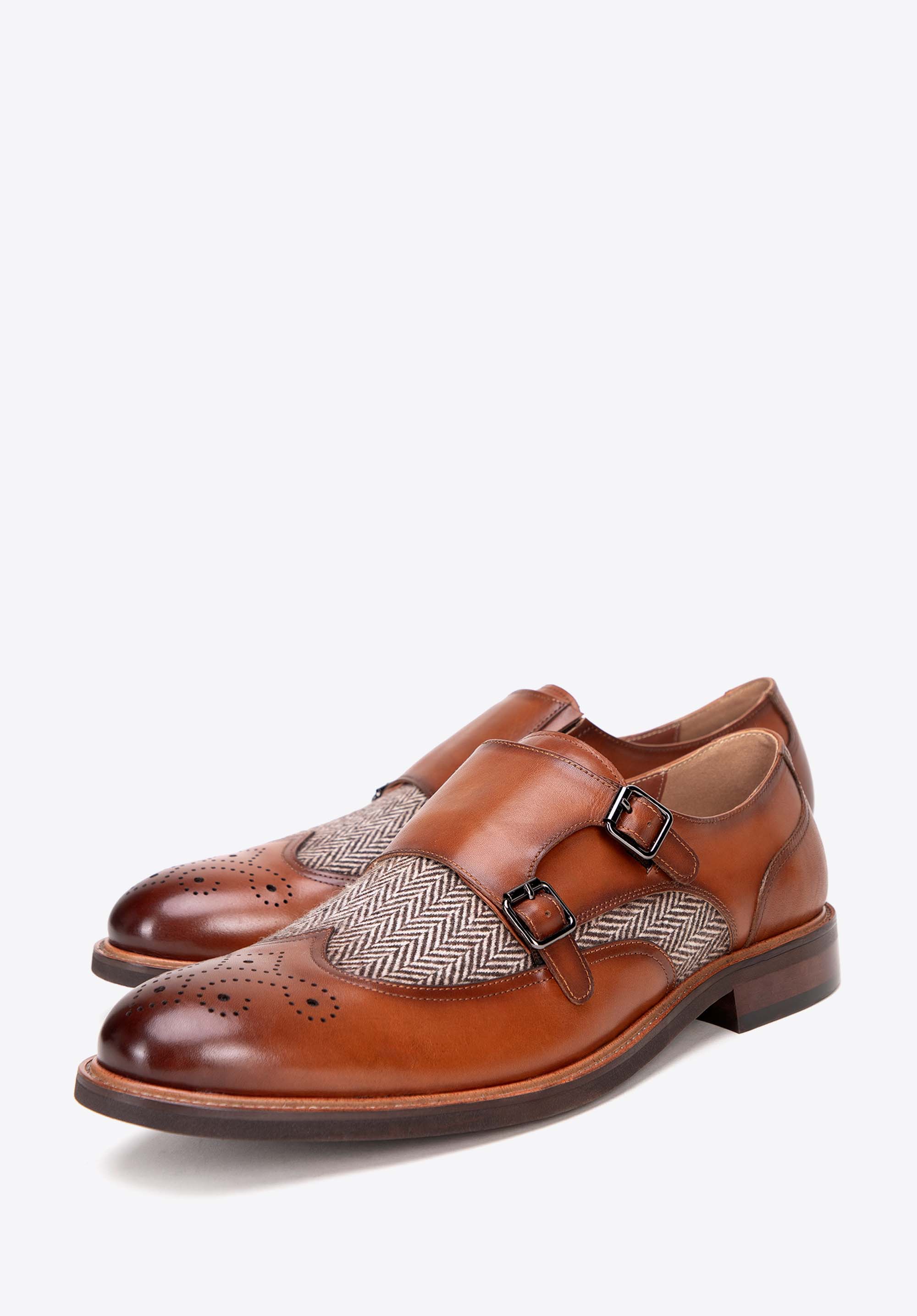 Fedezd fel a kivételes eleganciát és kényelmet ebben a férfi dupla csatos cipőben. Mindegyik pár aprólékosan kidolgozott, kiváló minőségű természetes bőrből készült, ami nemcsak a tartósságot, hanem az egyedi megjelenést is biztosítja. A puha bőrből és textil anyagból készült bélés páratlan kényelmet biztosít egész nap. A halszálkás minta egyedi karaktert kölcsönöz ezeknek a dupla csatos cipőknek, kiemelve kiváló minőségüket és gondos kivitelezésüket. Masszív felépítésüknek és a kiváló minőségű anyagoknak köszönhetően még sok éven át használhatod őket.