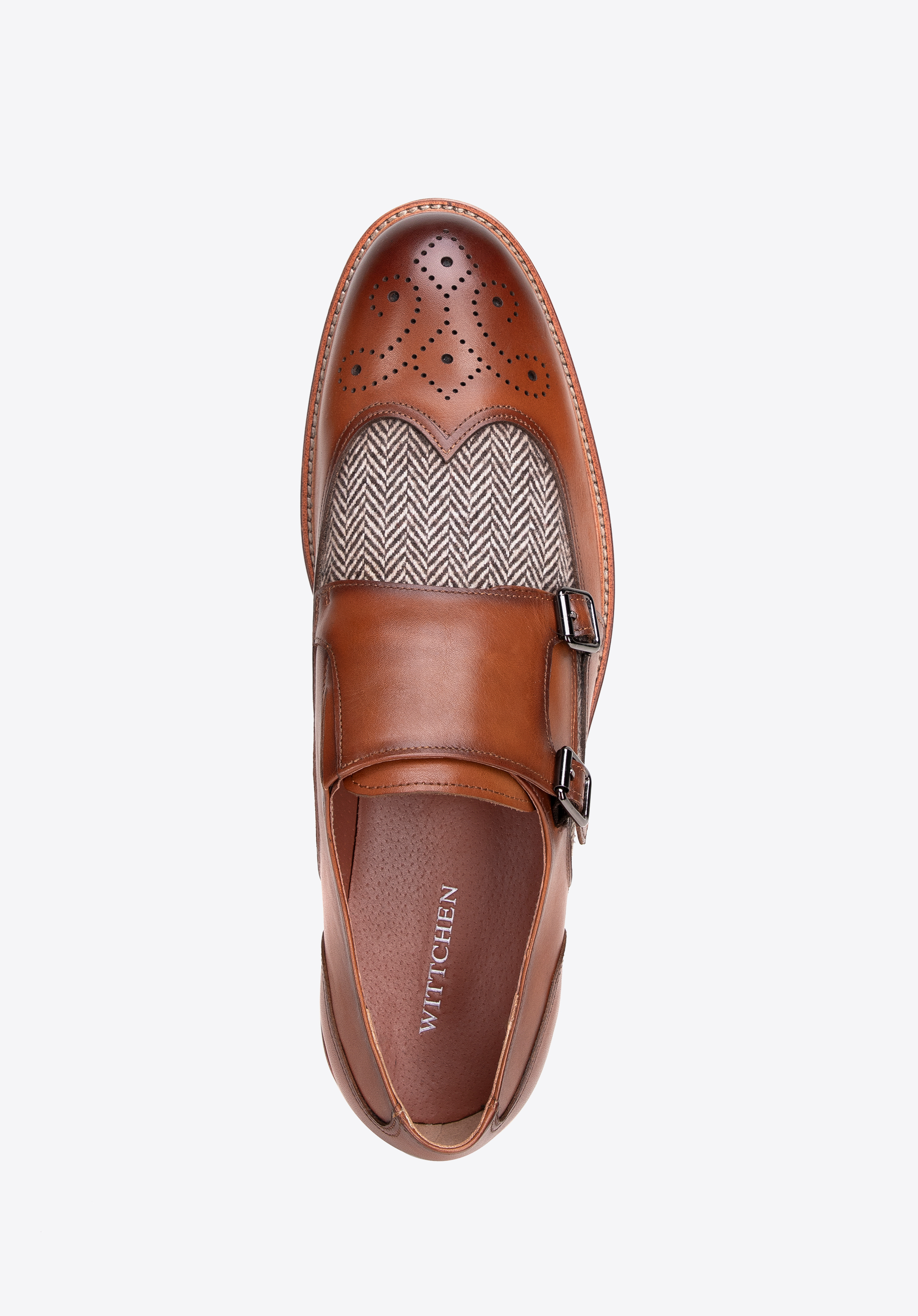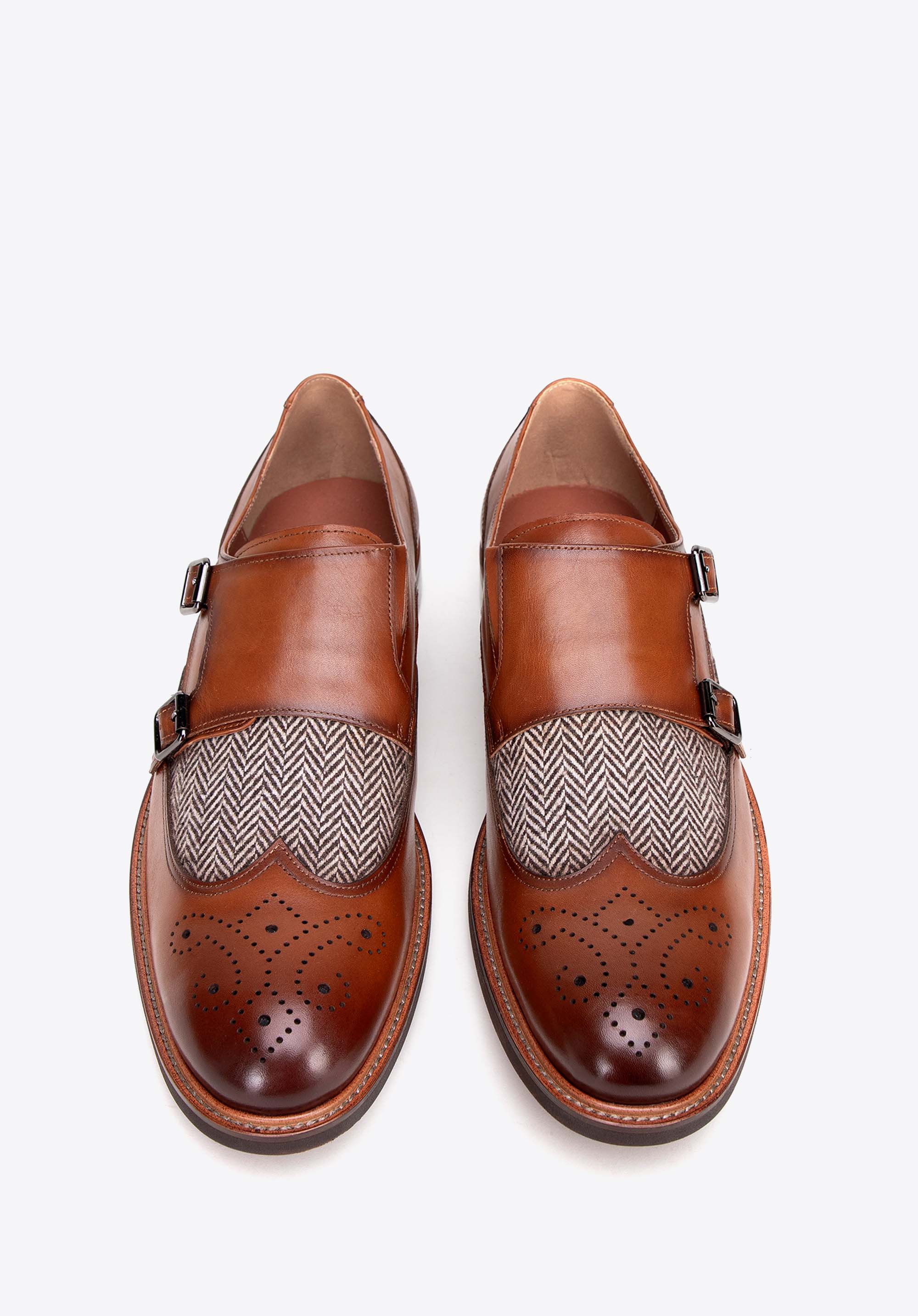 Férfi dupla csatos cipő halszálka mintával