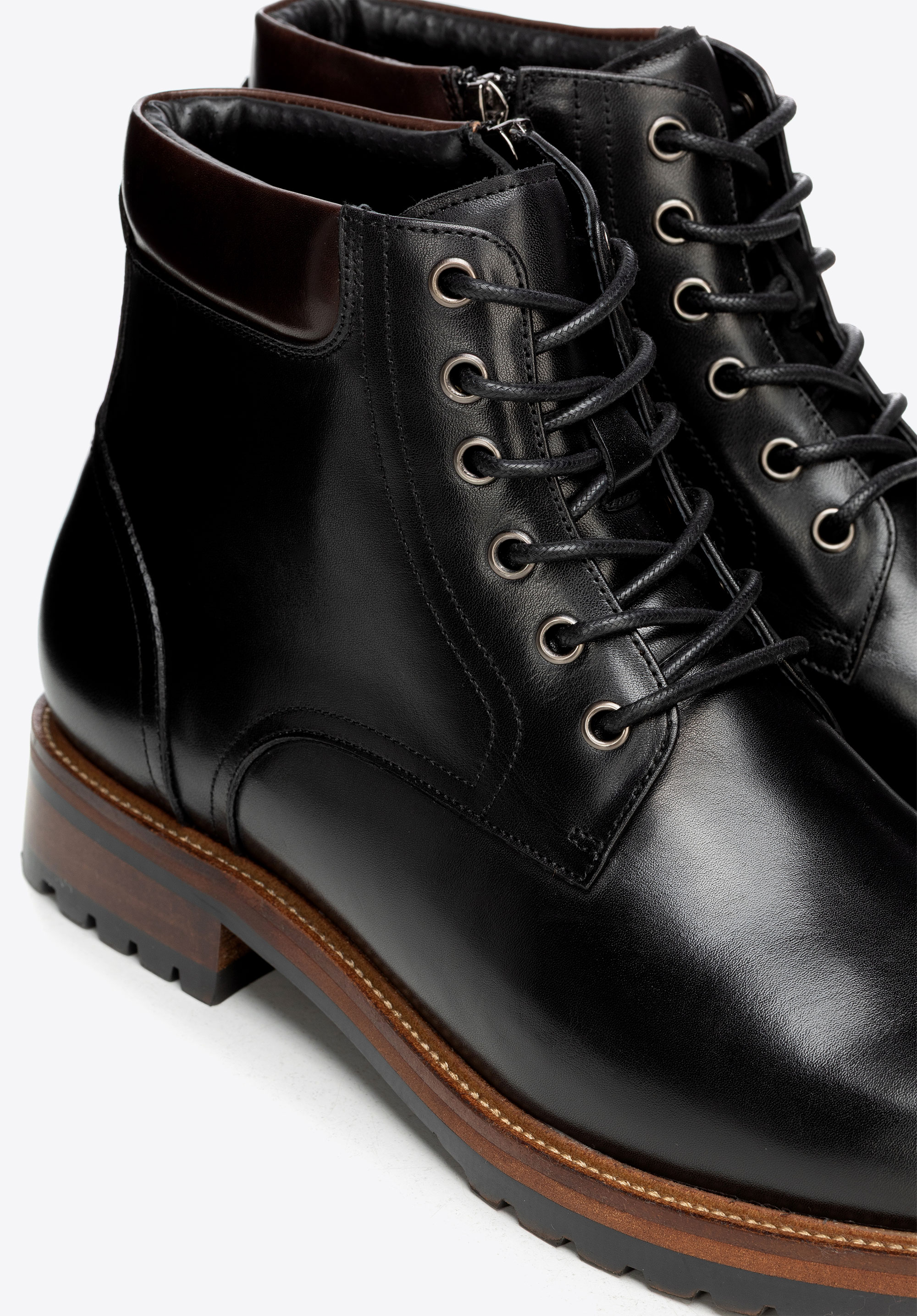 Fedezd fel a klasszikus stílus és a modern kényelem tökéletes keverékét prémium minőségű természetes bőrből készült férfi bőrcsizmáinkkal . A karcsú mandulaorr elegáns sziluettet kölcsönöz a csizmának, míg az átgondolt kialakítás a kényelmet praktikus megoldásokkal ötvözi. Az oldalsó cipzárak gyors fel- és levételt tesznek lehetővé, míg az elülső fűzők tökéletes illeszkedést biztosítanak. A lapos sarok és a masszív gumitalp stabilitást és magabiztosságot biztosít minden lépésnél.