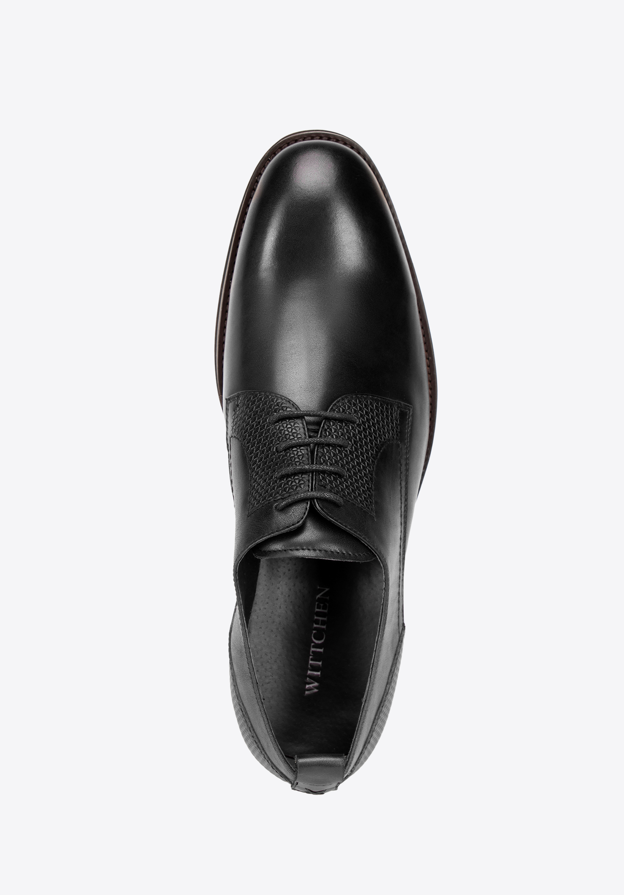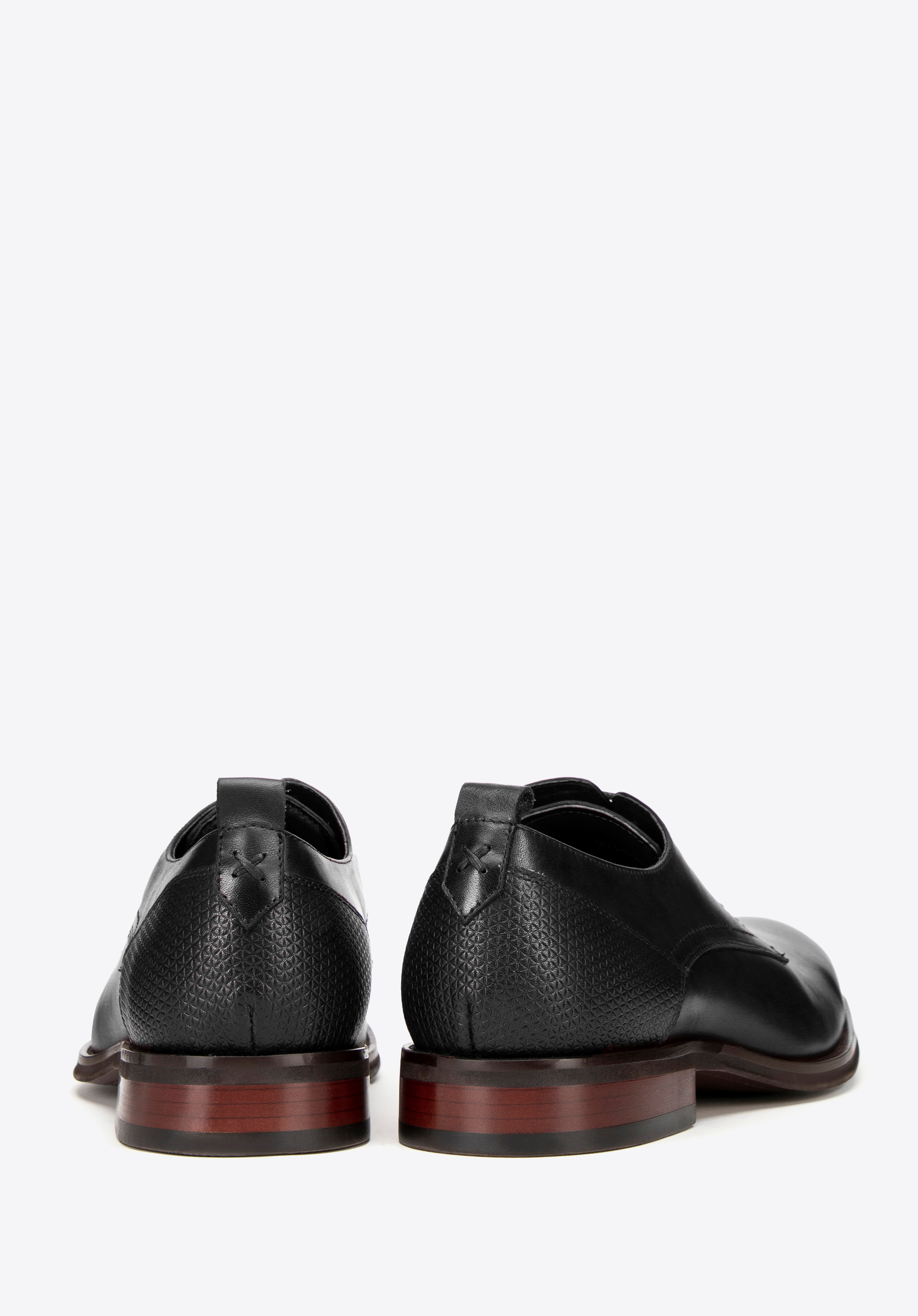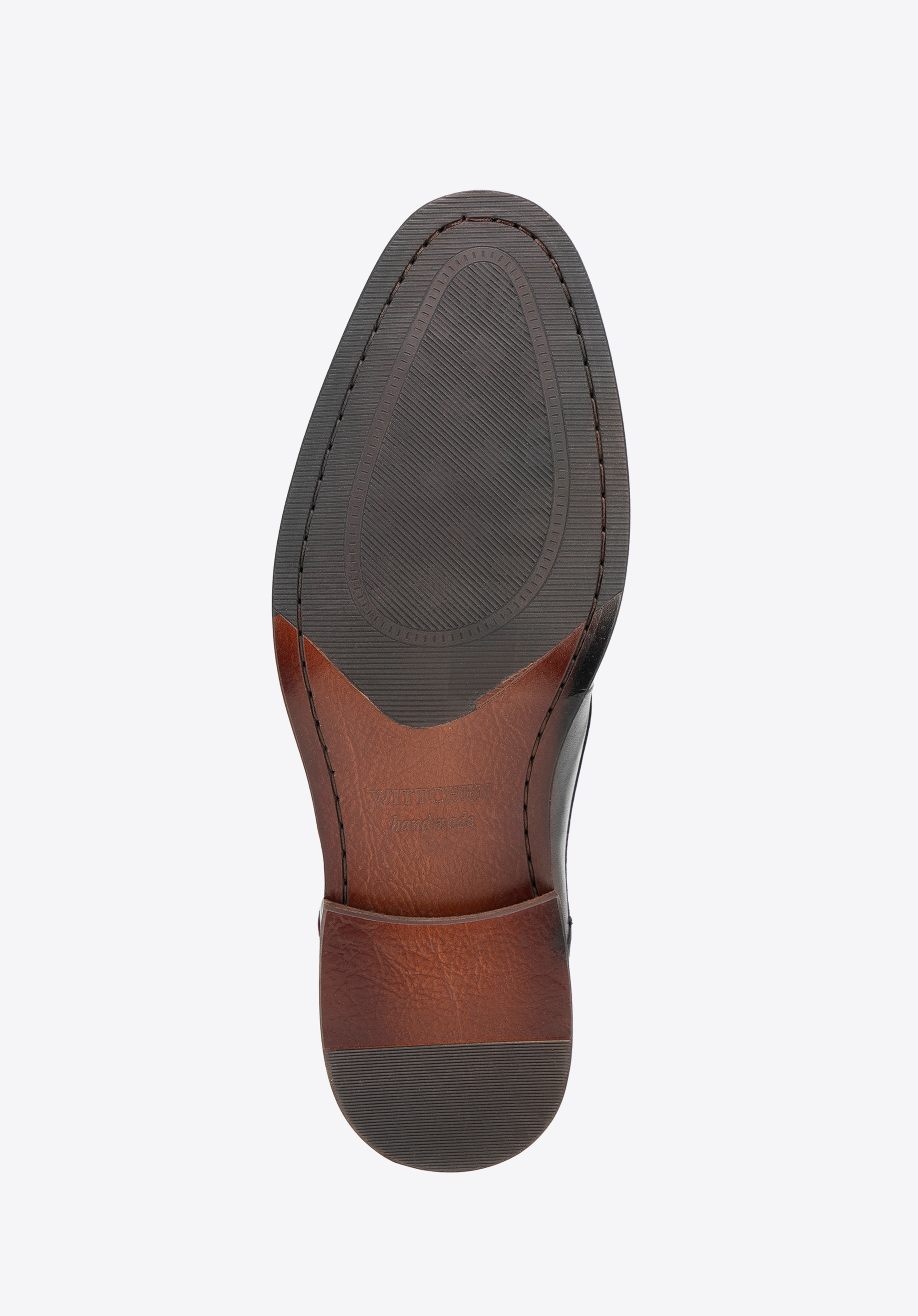 Ez a stílusos férfi félcipő kiváló választás minden elegáns férfi számára. A legjobb minőségű természetes bőrből készült cipők klasszikus dizájnnal büszkélkedhetnek, dekoratív geometrikus panelekkel díszítve. Ezek a finom részletek nem csak karaktert adnak, hanem kihangsúlyozzák tulajdonosuk eleganciáját is. A bőrtalpbetét és a puha bélés garantálja a kényelmet egész nap. Sokoldalú stílusuk sok évszakban divatos kiegészítővé teszi őket.