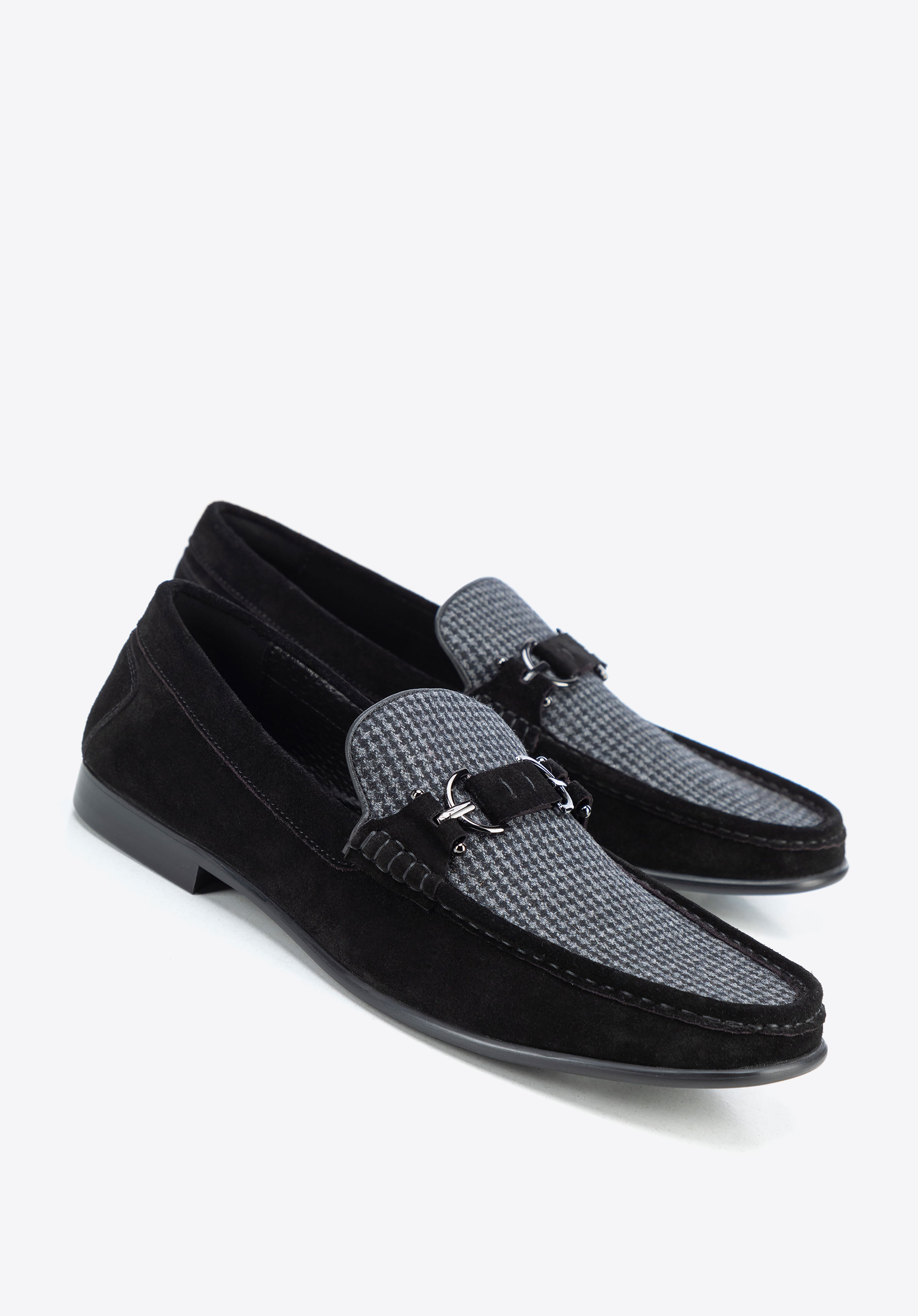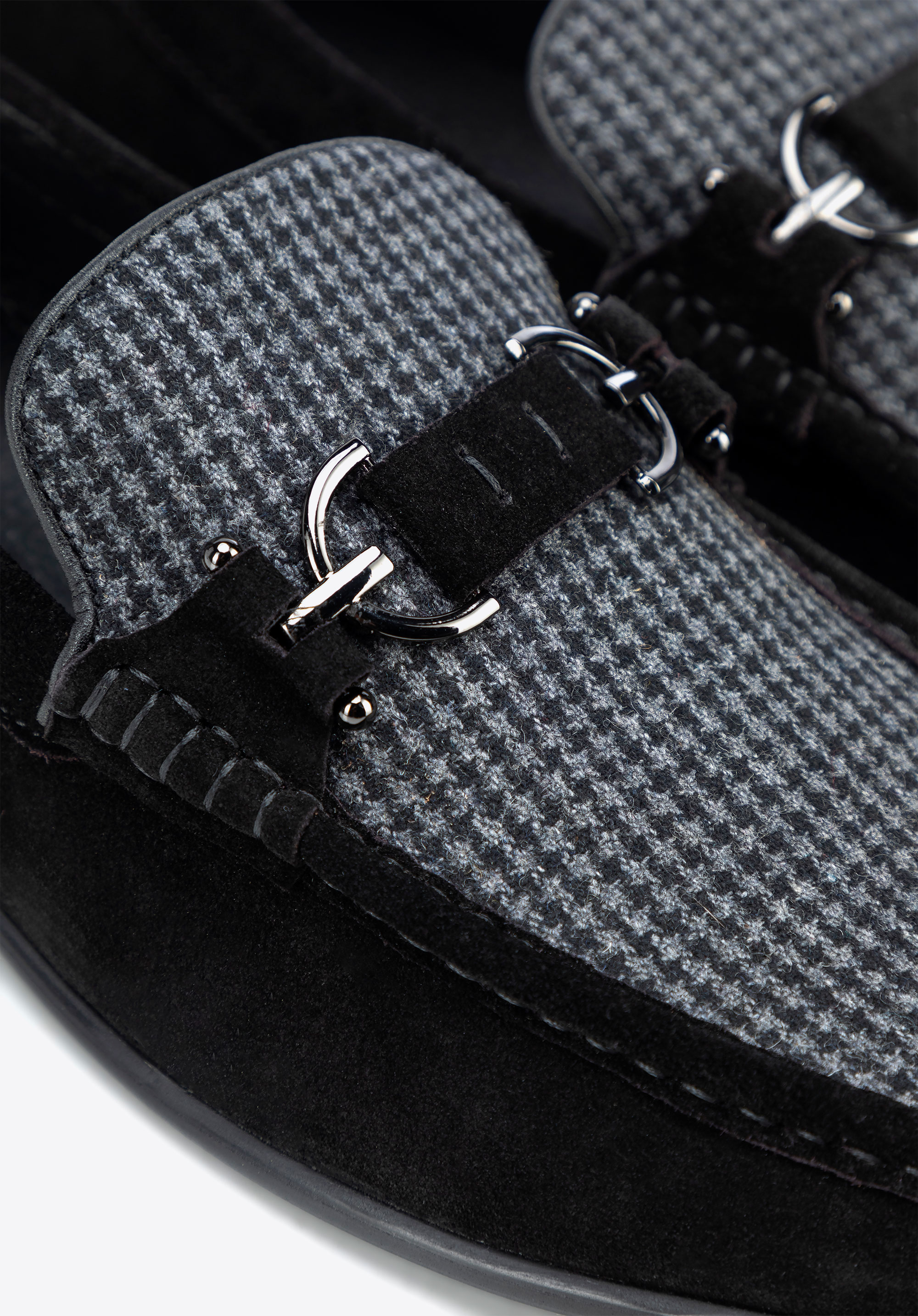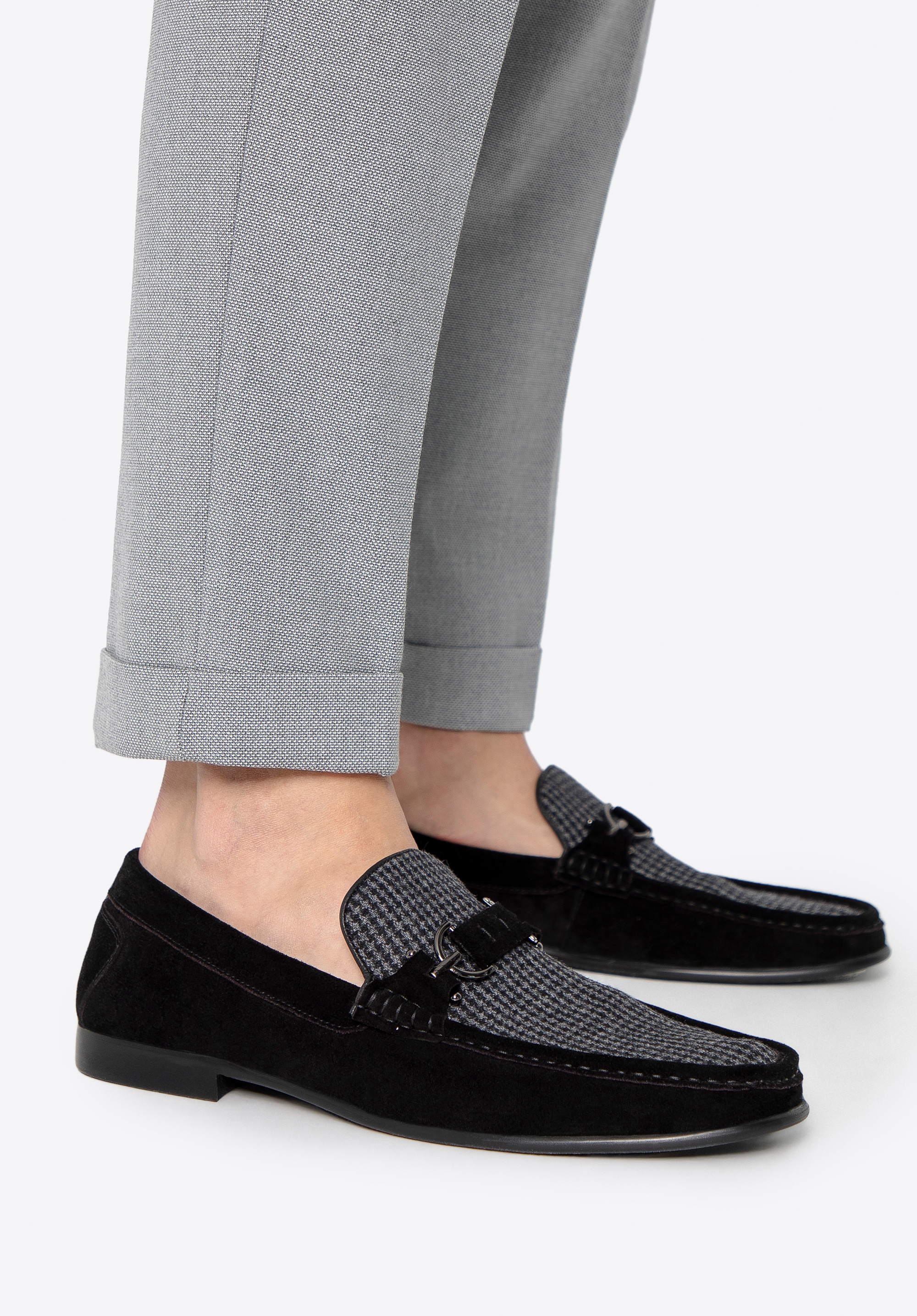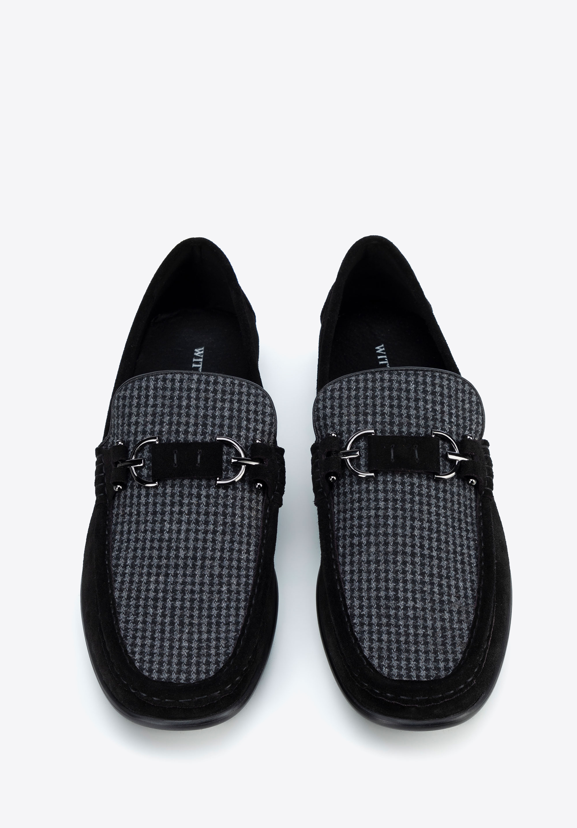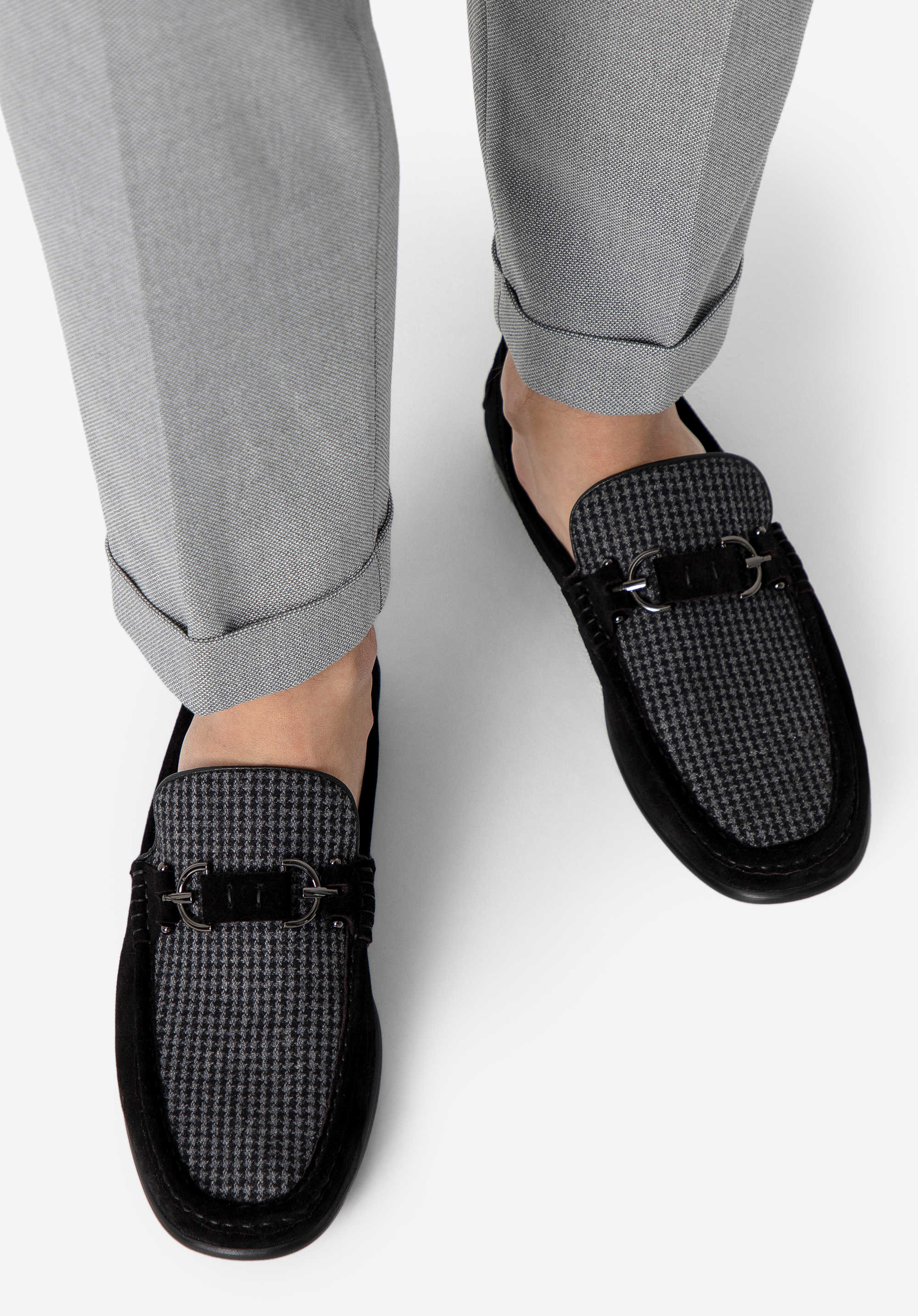 Ezek a mokaszin az elegancia és a kényelem tökéletes keveréke. Bőr és textilanyag kombinációjából készült, finom kockás mintával és dekoratív csattal rendelkezik, amely kifinomultabb megjelenést kölcsönöz. A bebújós kialakítás a kényelemről és a praktikumról gondoskodik, míg a bőr talpbetét és a puha bélés egész napos kényelmet biztosít. A masszív talp minden lépést élvezetessé tesz. Ezek a cipők könnyedén kiegészítik az alkalmi és elegáns ruhákat is.