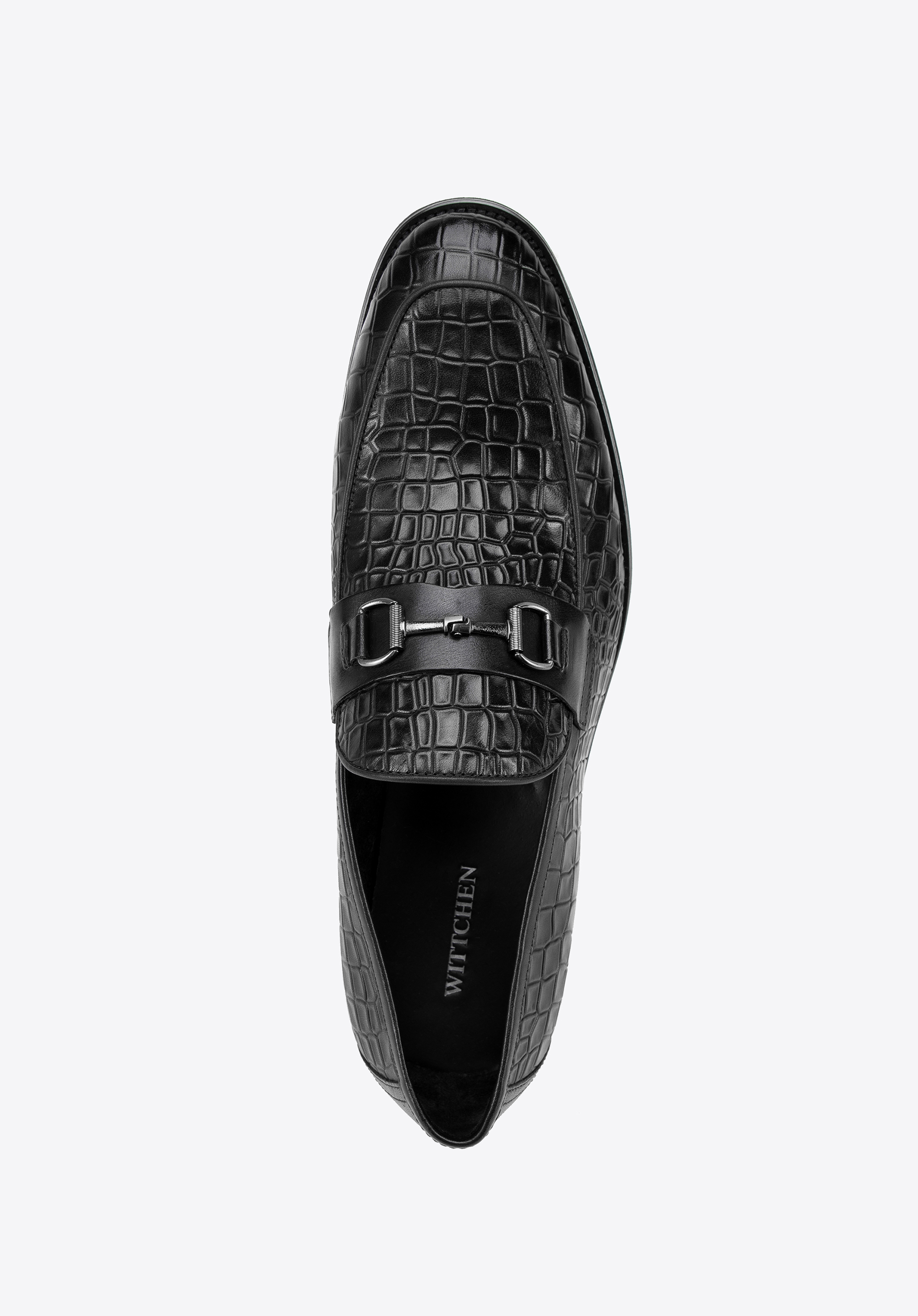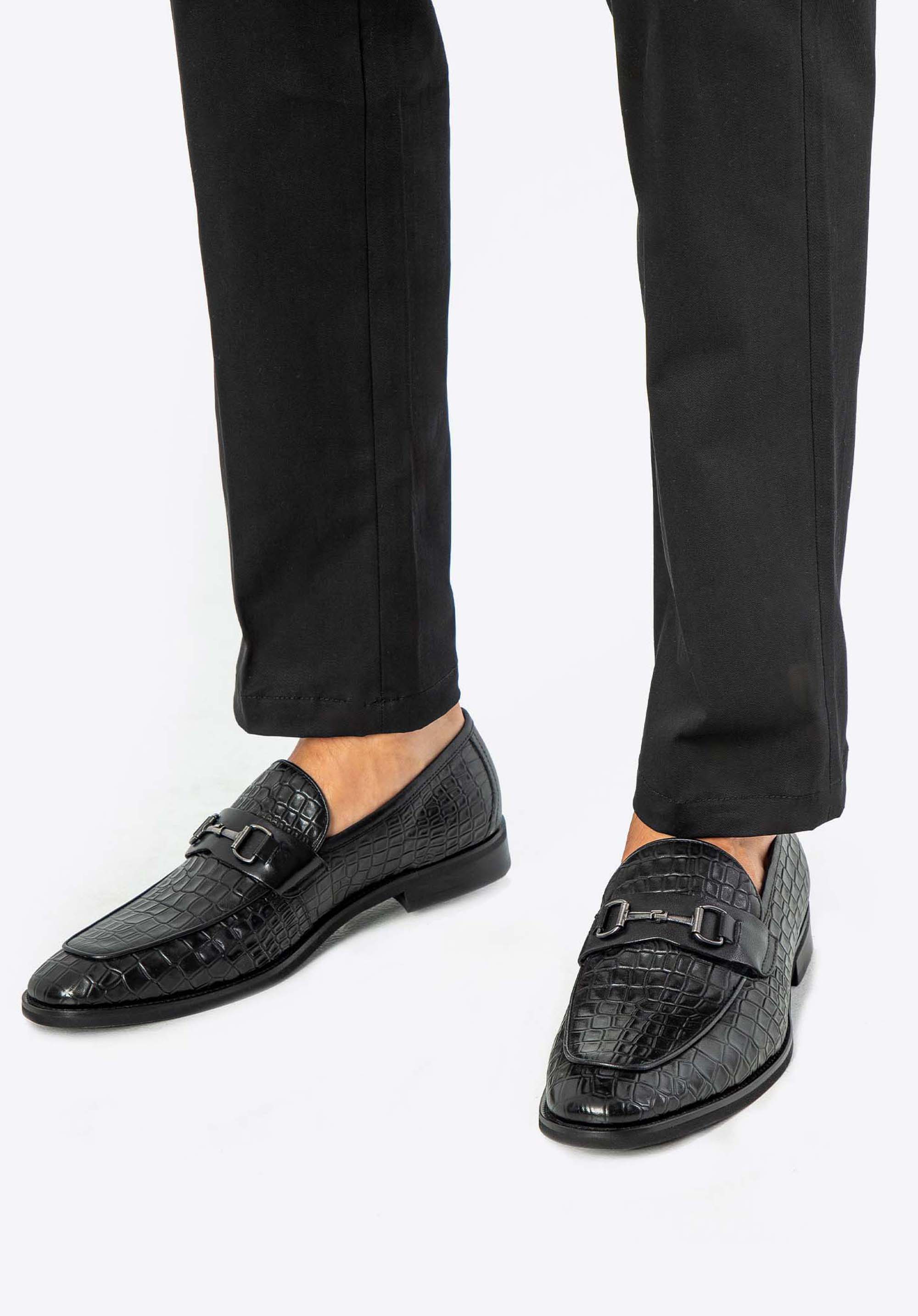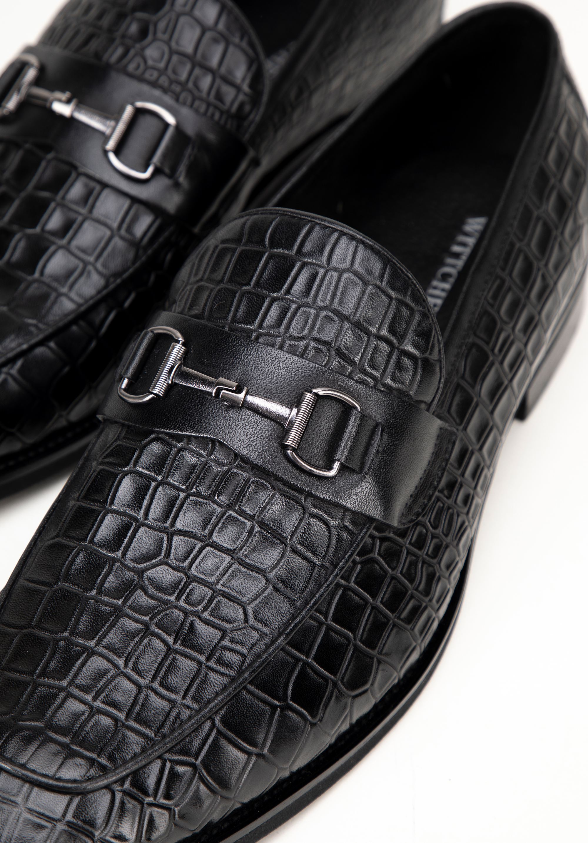Ez a férfi mokaszina kényelem és a kifinomultság tökéletes keverékét kínálja, ideális a mindennapi viselethez. Prémium minőségű természetes bőrből készült, jellegzetes krokodilbőr textúrájú, és dekoratív csat is díszíti. Ez a férfi mokaszin divatos lekerekített orrral és praktikus belebújós stílussal büszkélkedhet, így nem csak elegáns, de könnyű és kényelmes viselet is. Felcsúsztatni őket igazi élvezet, kialakítása pedig tökéletesen kiegészíti a hétköznapi és alkalmi viseleteket is.