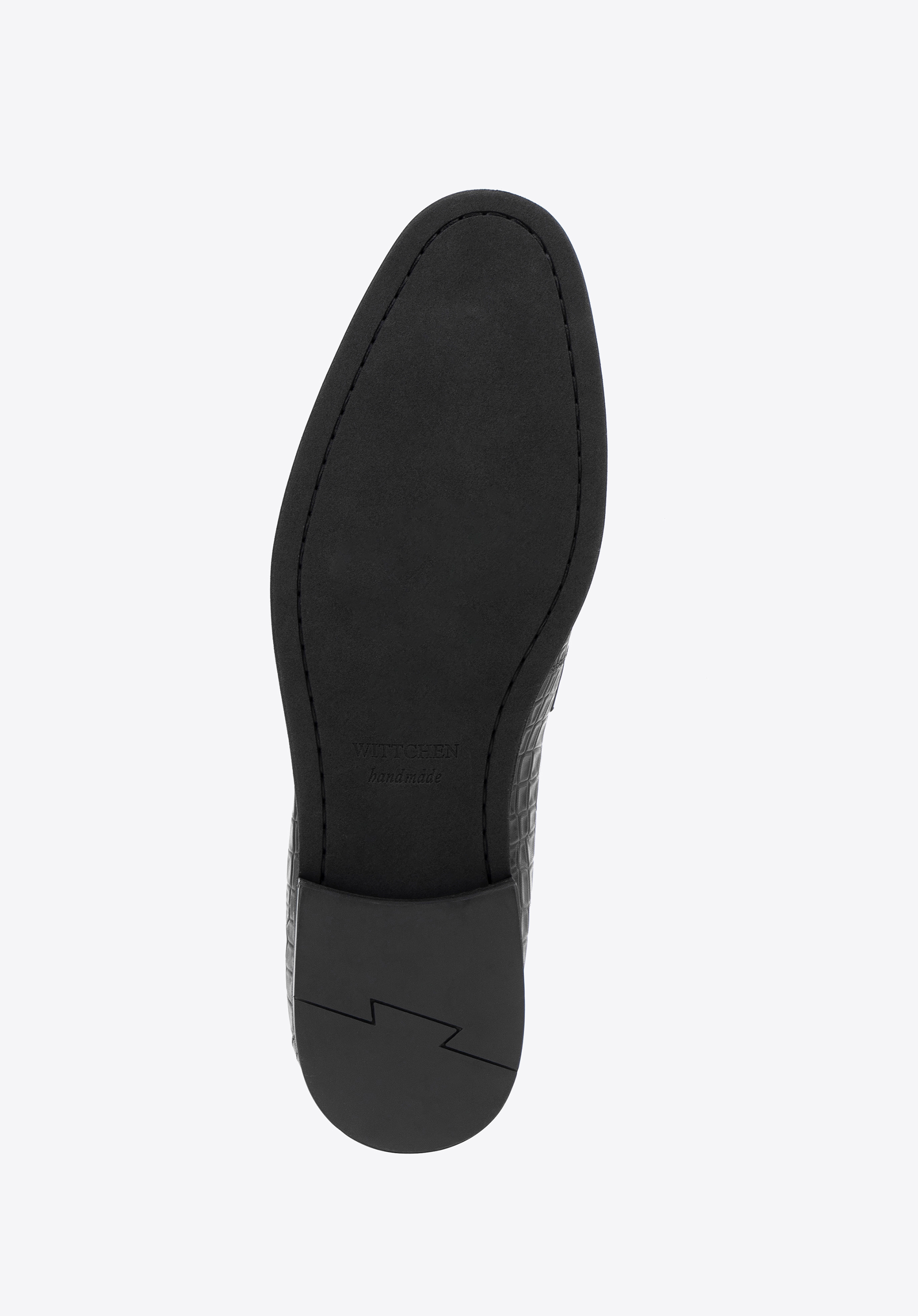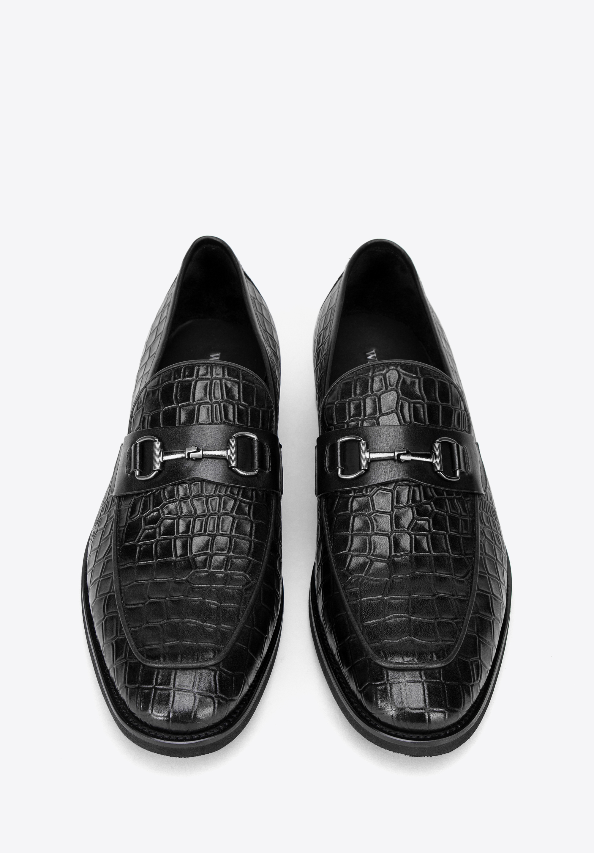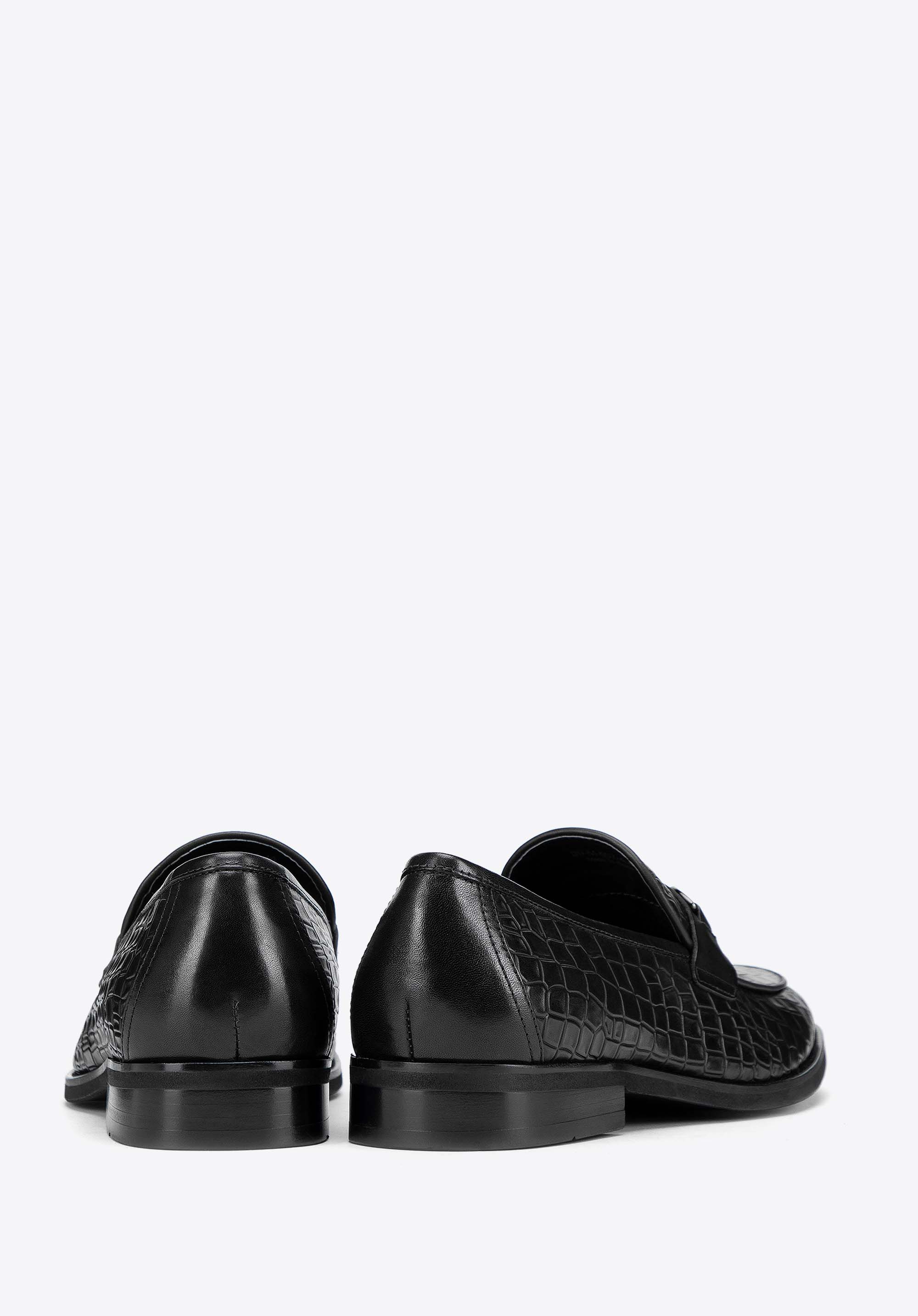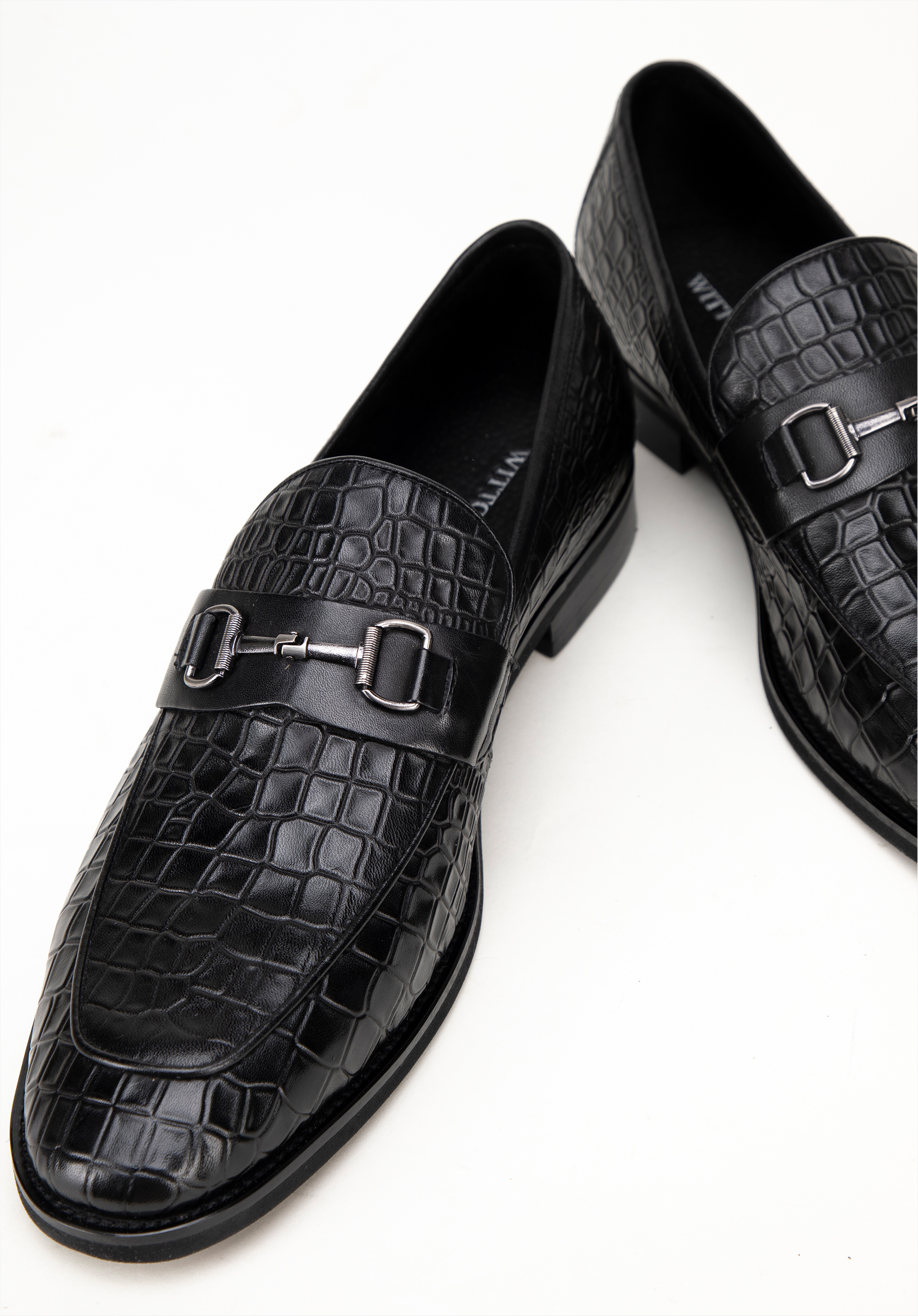 Ez a férfi mokaszina kényelem és a kifinomultság tökéletes keverékét kínálja, ideális a mindennapi viselethez. Prémium minőségű természetes bőrből készült, jellegzetes krokodilbőr textúrájú, és dekoratív csat is díszíti. Ez a férfi mokaszin divatos lekerekített orrral és praktikus belebújós stílussal büszkélkedhet, így nem csak elegáns, de könnyű és kényelmes viselet is. Felcsúsztatni őket igazi élvezet, kialakítása pedig tökéletesen kiegészíti a hétköznapi és alkalmi viseleteket is.