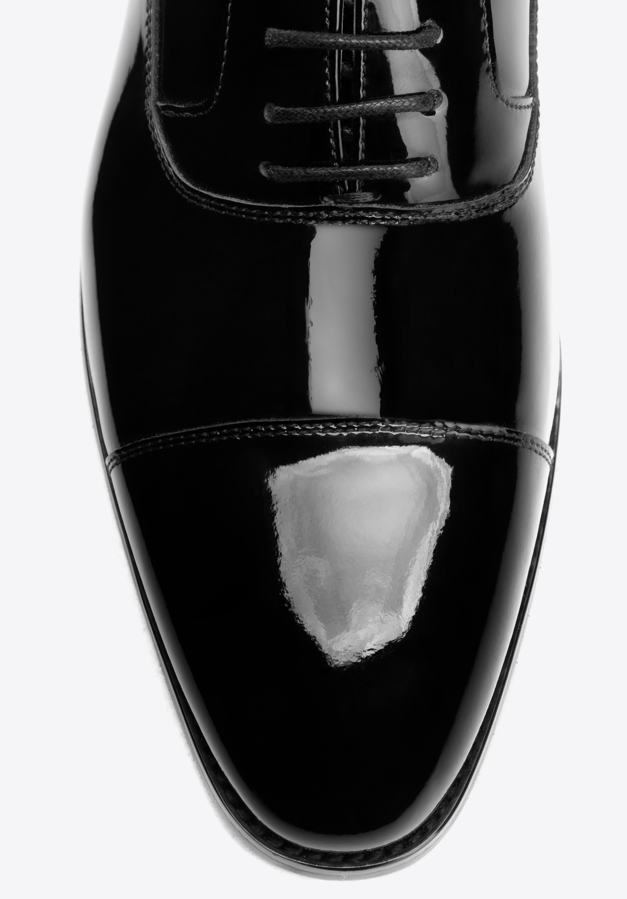 Anyag: Lakkbőr – elegáns, fényes luxus megjelenést kölcsönöz a cipőnek, és kiemeli kivételesen formális stílusát.