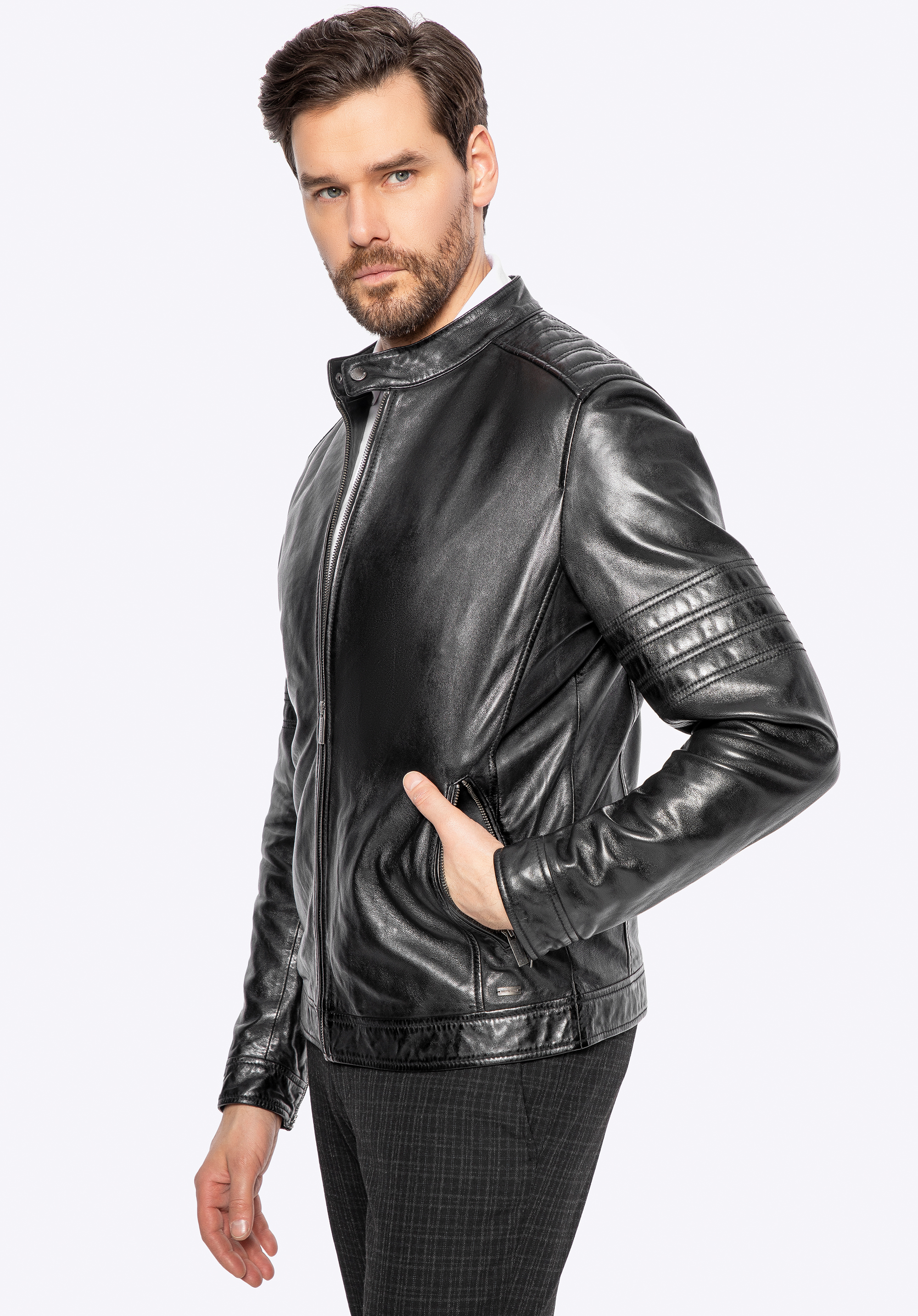 Készülj fel a ruhatár frissítésére! Ez a természetes báránybőrből készült férfi kabát az időtlen dizájnt ötvözi a modern részletekkel, amelyek kiemelik a te stílusodat. A fém díszítések, beleértve a márka logóját is, jellegzetes karaktert adnak neki. A vállakon és az ujjakon található dekoratív steppelt panelek masszív, férfias hatást adnak, míg az állítható cipzáras mandzsetta tökéletes illeszkedést biztosít.