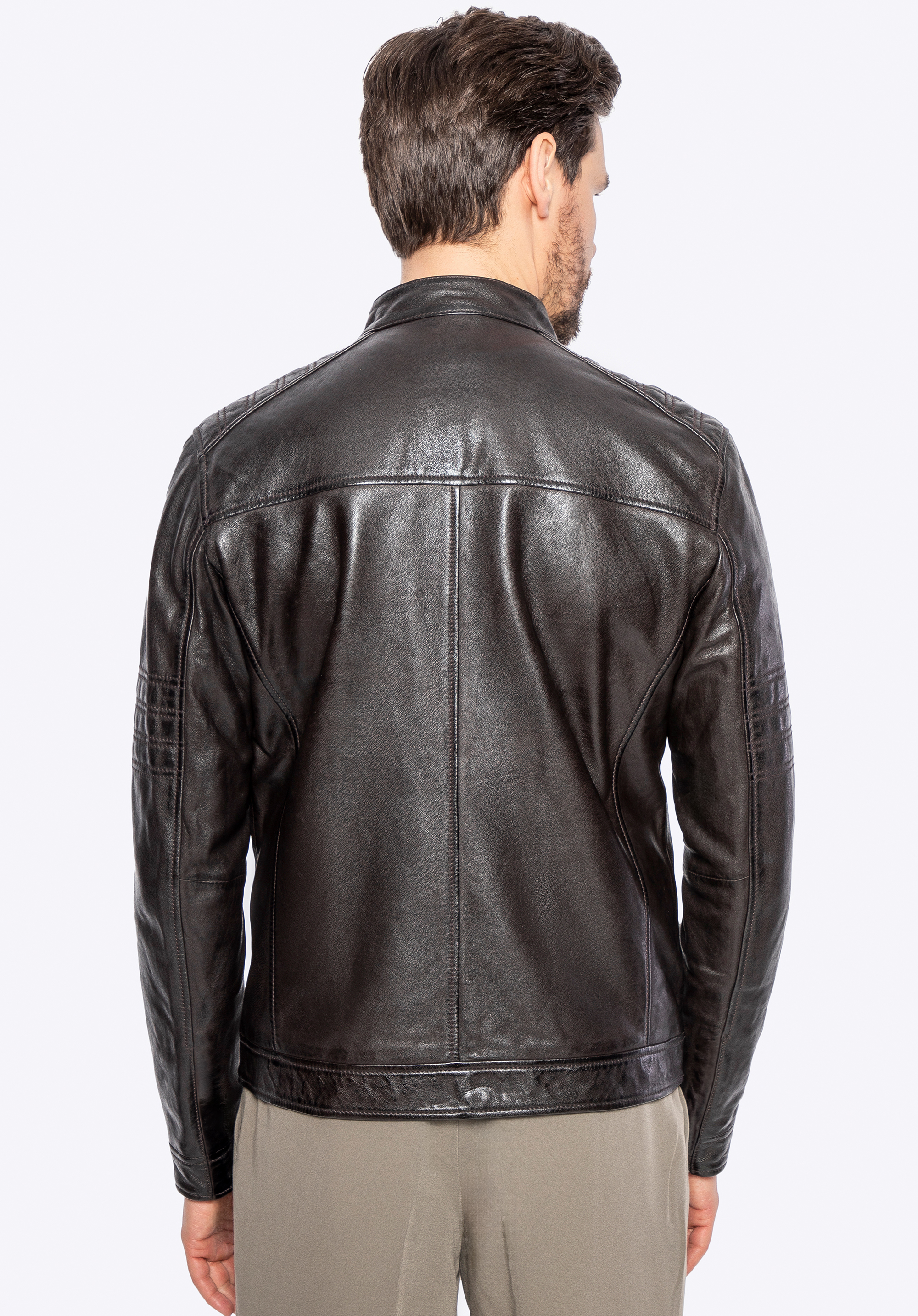 Készülj fel a ruhatár frissítésére! Ez a természetes báránybőrből készült férfi kabát az időtlen dizájnt ötvözi a modern részletekkel, amelyek kiemelik a te stílusodat. A fém díszítések, beleértve a márka logóját is, jellegzetes karaktert adnak neki. A vállakon és az ujjakon található dekoratív steppelt panelek masszív, férfias hatást adnak, míg az állítható cipzáras mandzsetta tökéletes illeszkedést biztosít.