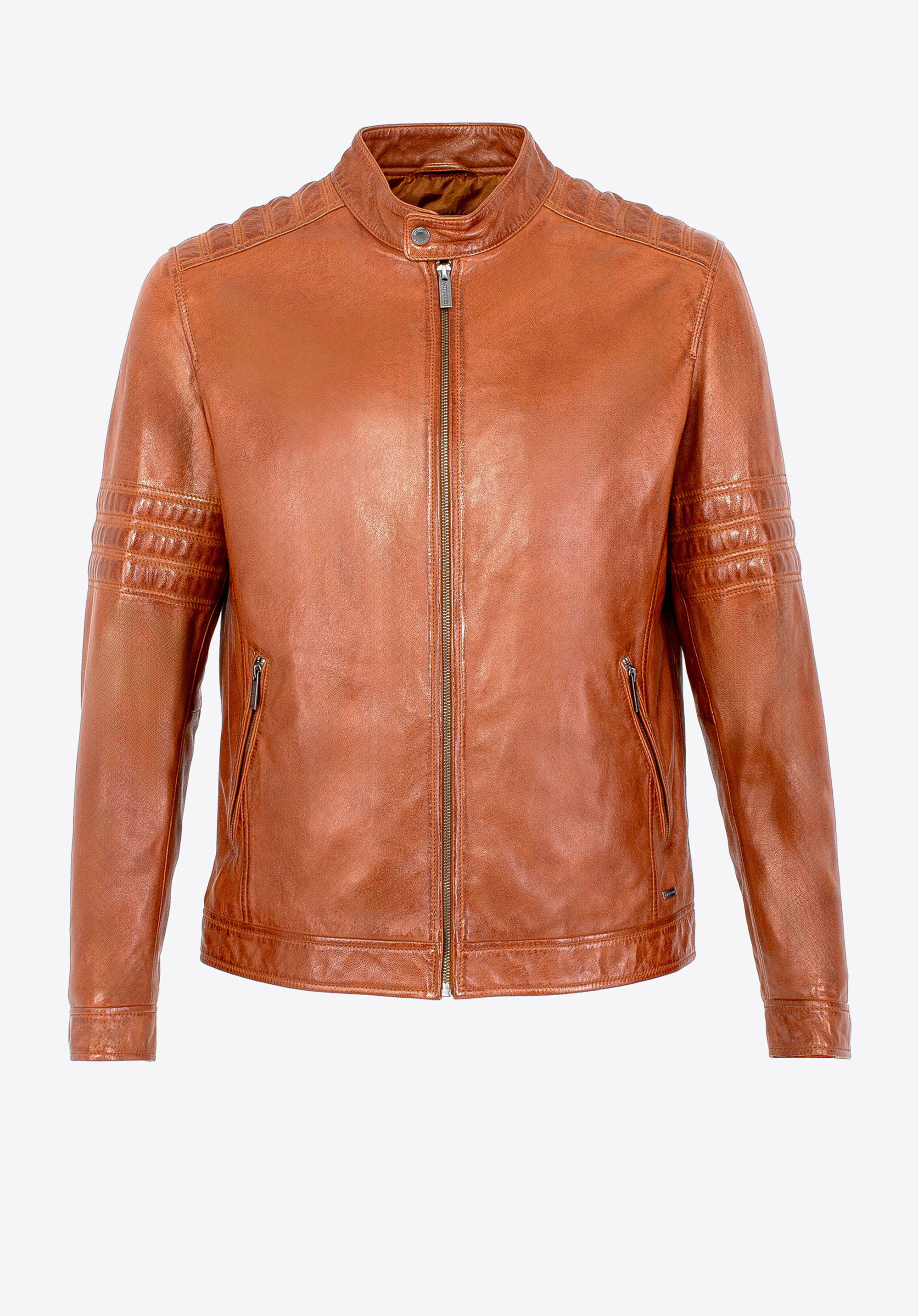 Készülj fel a ruhatár frissítésére! Ez a természetes báránybőrből készült férfi kabát az időtlen dizájnt ötvözi a modern részletekkel, amelyek kiemelik a te stílusodat. A fém díszítések, beleértve a márka logóját is, jellegzetes karaktert adnak neki. A vállakon és az ujjakon található dekoratív steppelt panelek masszív, férfias hatást adnak, míg az állítható cipzáras mandzsetta tökéletes illeszkedést biztosít.