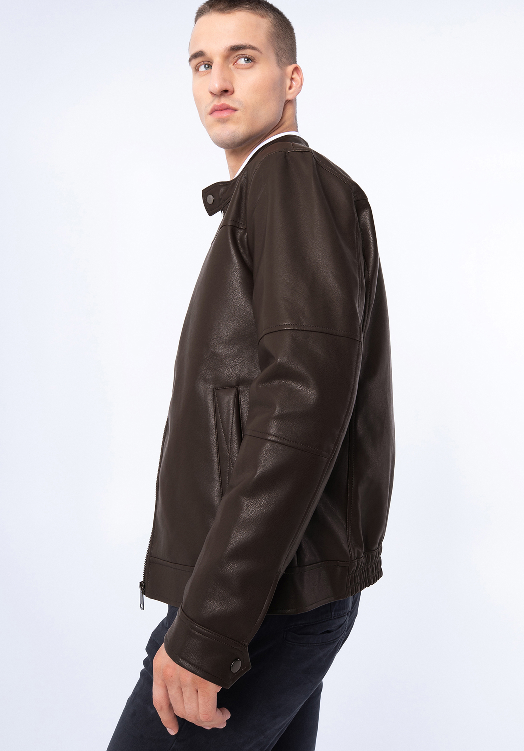 Ez a klasszikus férfi dzseki stílusosan frissíti a modern gardróbot. Ez a rövid állógallérral és dekoratívan díszített zsebekkel befejezett műbőr kabát hihetetlenül elegáns stílussal büszkélkedhet. A kényelmes vágás és a minőségi kidolgozás kombinációja kiváló védelmet nyújt a hidegebb napokon. Ez a ruha tökéletesen passzol sok férfias ruhához, például farmerhez vagy más típusú nadrághoz is. A férfi műbőr kabát időtálló kiegészítő, amelyet tavasszal és ősszel ismételten viselhetünk.