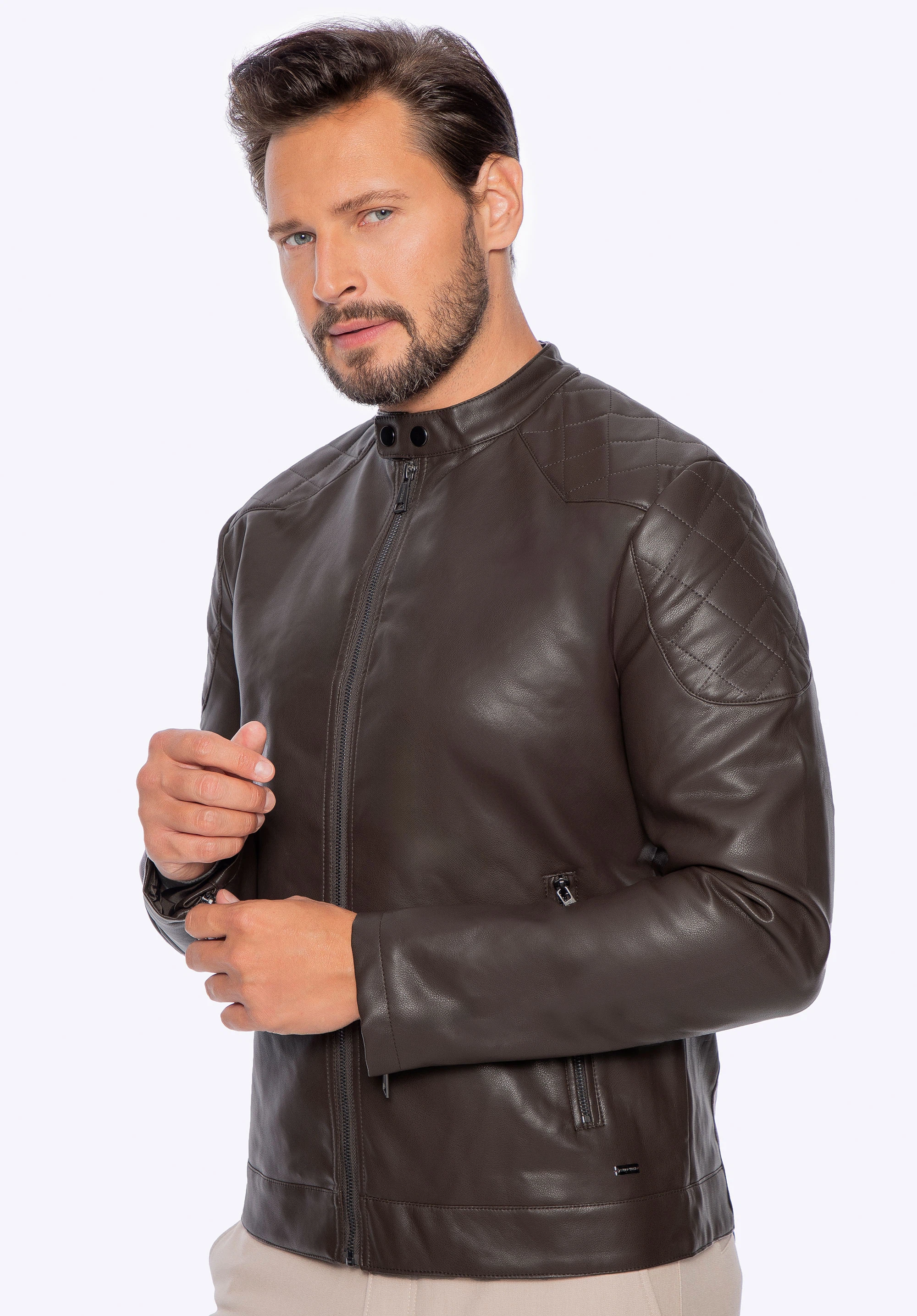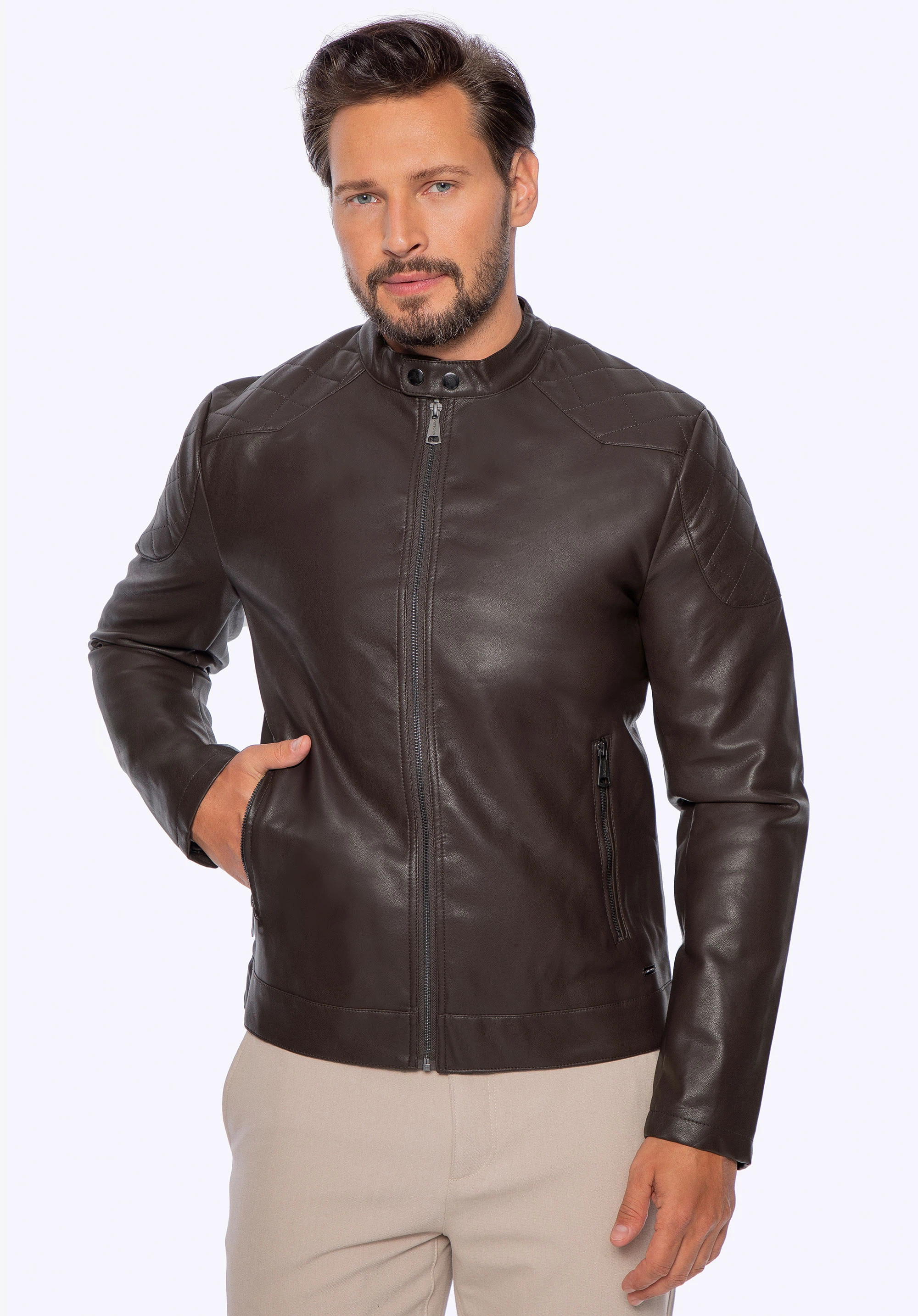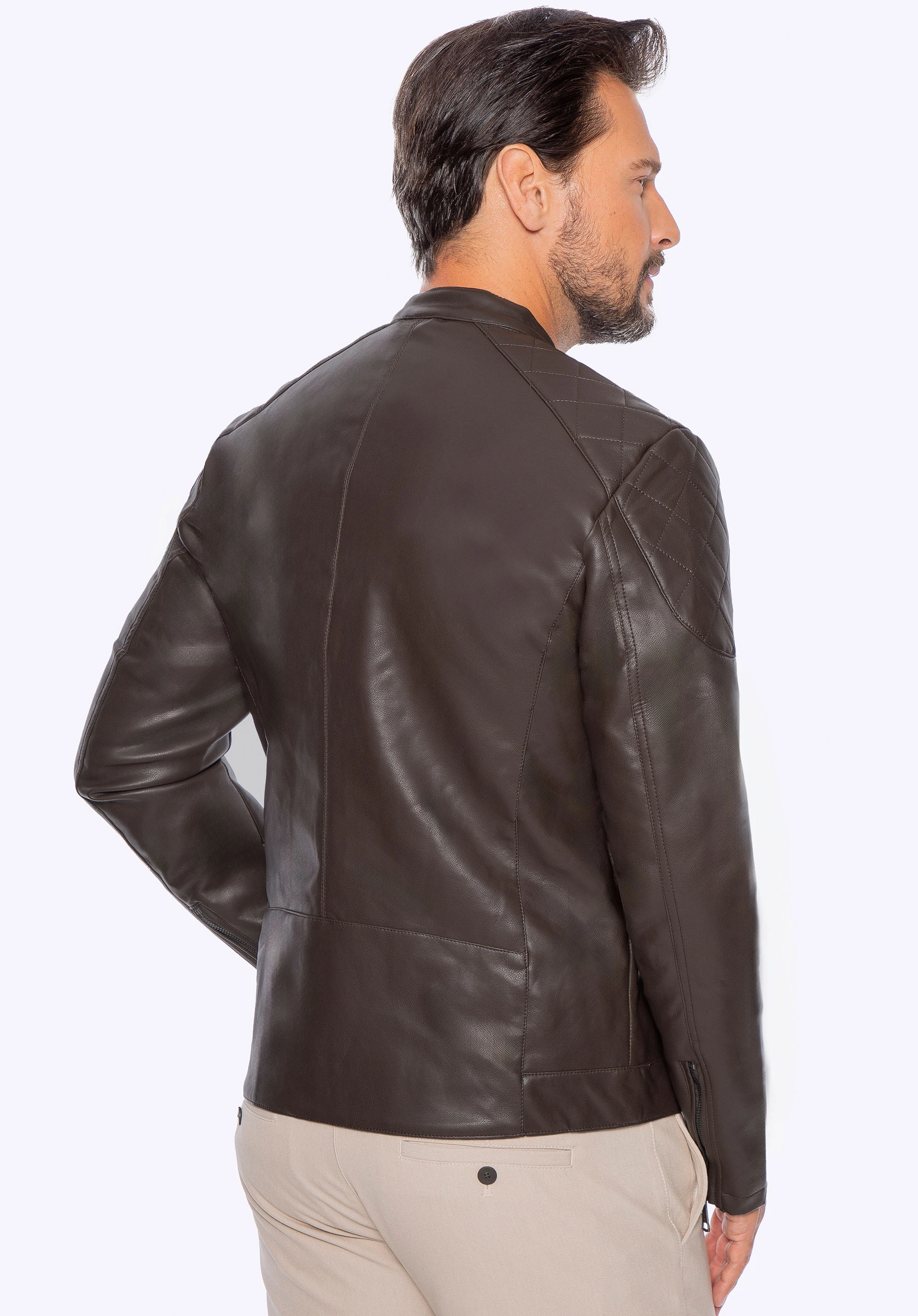 Ez a klasszikus férfi dzseki stílusosan frissíti a modern gardróbot. Steppelt dizájnnal, dupla pattintható záródású, rövid állógallérral és két cipzáras kézi zsebbel készült. Ez a prémium minőségű műbőr kabát hihetetlenül letisztult stílussal büszkélkedhet. A kényelmes vágás és a minőségi kidolgozás kombinációja kiváló védelmet nyújt a hidegebb napokon. Ez a kiegészítő tökéletesen passzol sokféle férfias ruhához. Ez a steppelt férfi műbőr kabát minden modern férfi időtlen kiegészítője.