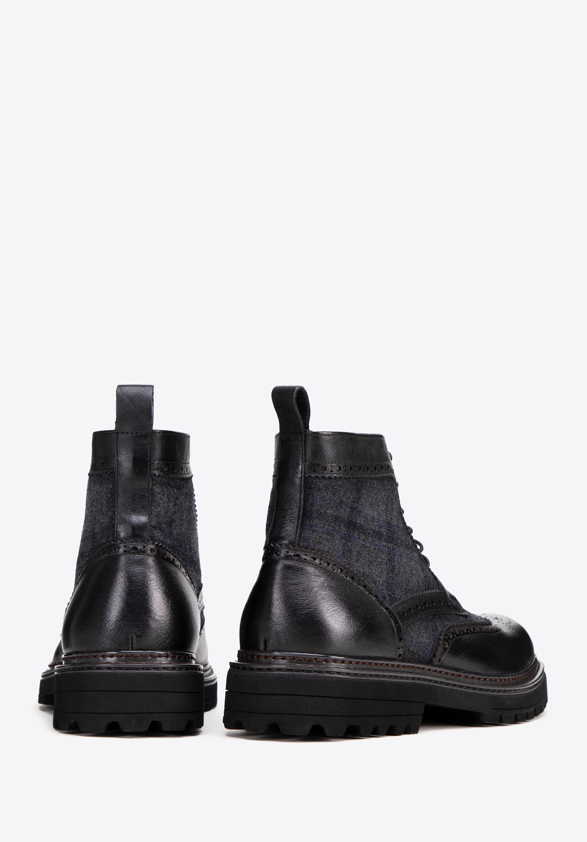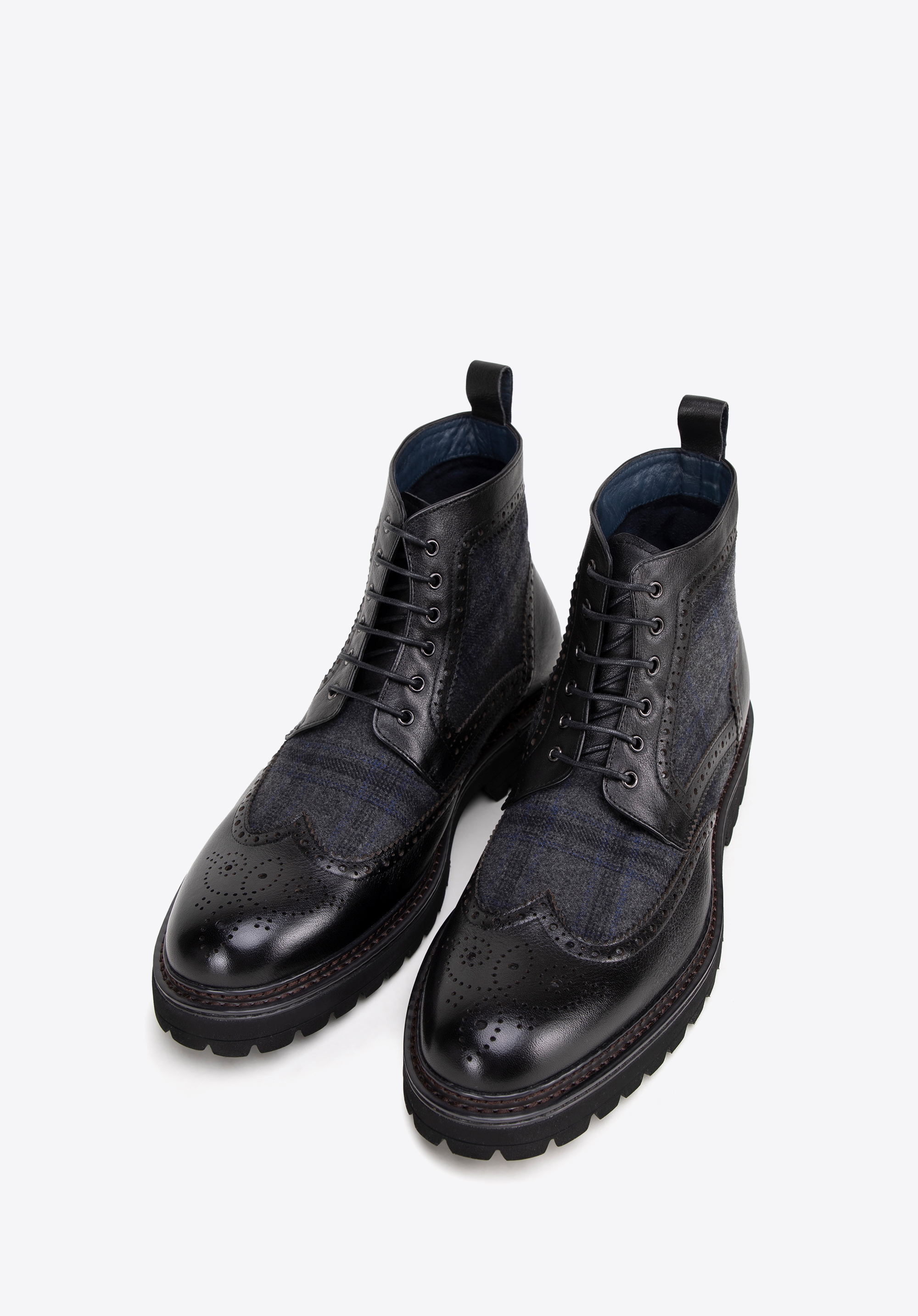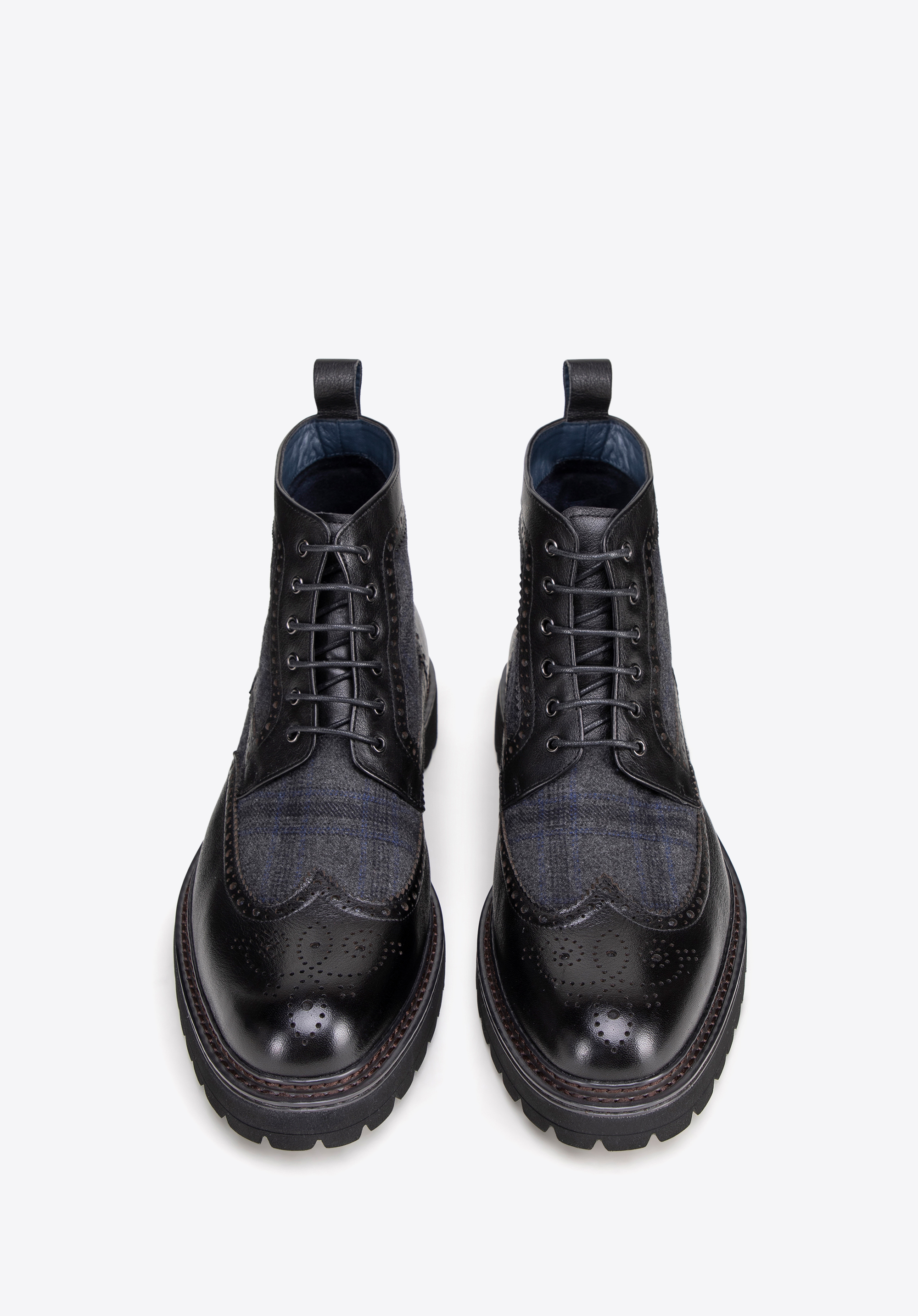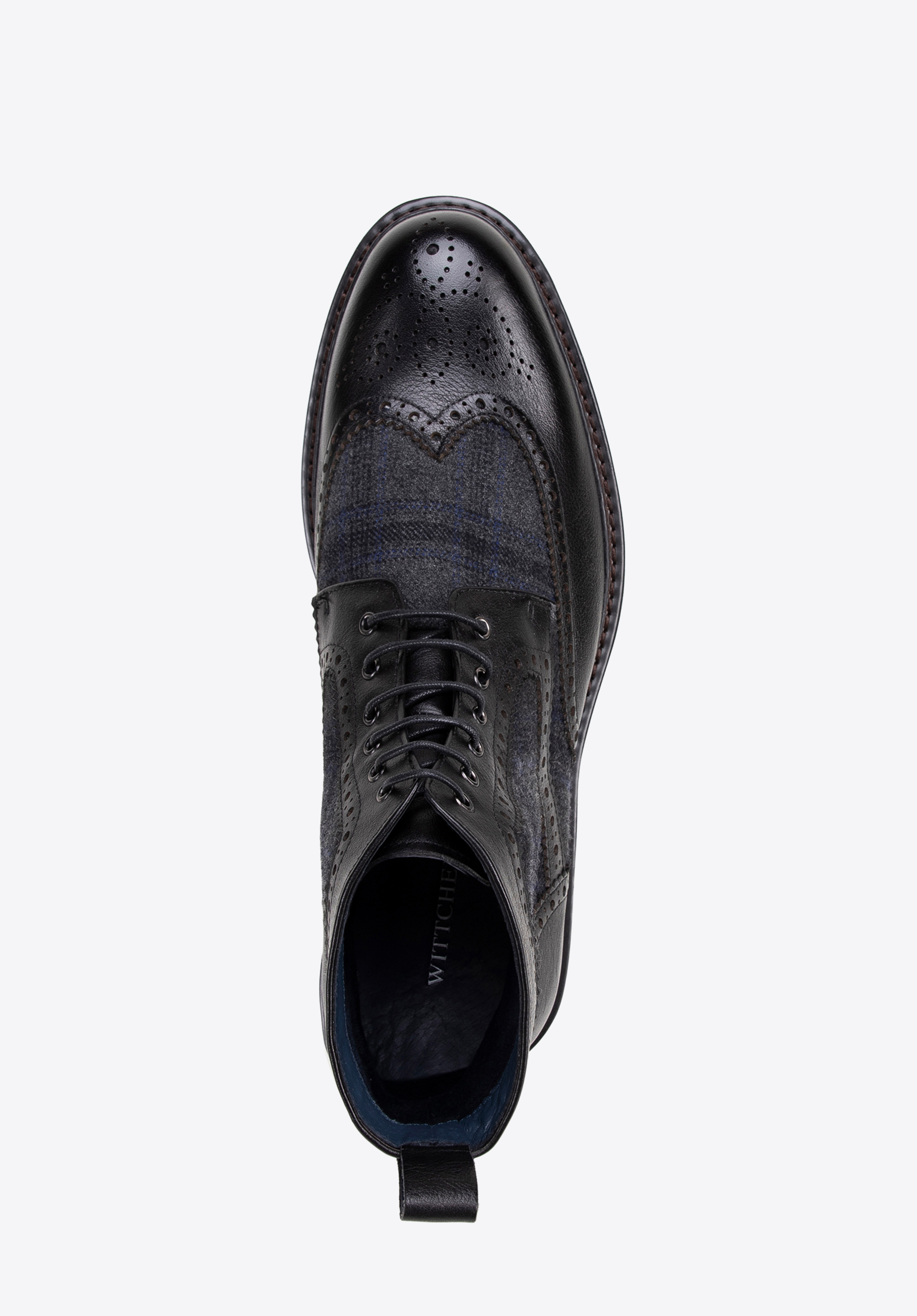 Aszövetbetétes bőr csizma a klasszikus stílust modern kivitelezéssel ötvözi. A kiváló minőségű természetes bőrből és textilanyagokból készült cipő tökéletes választás lesz az eleganciát és kényelmet értékelő férfiak számára.