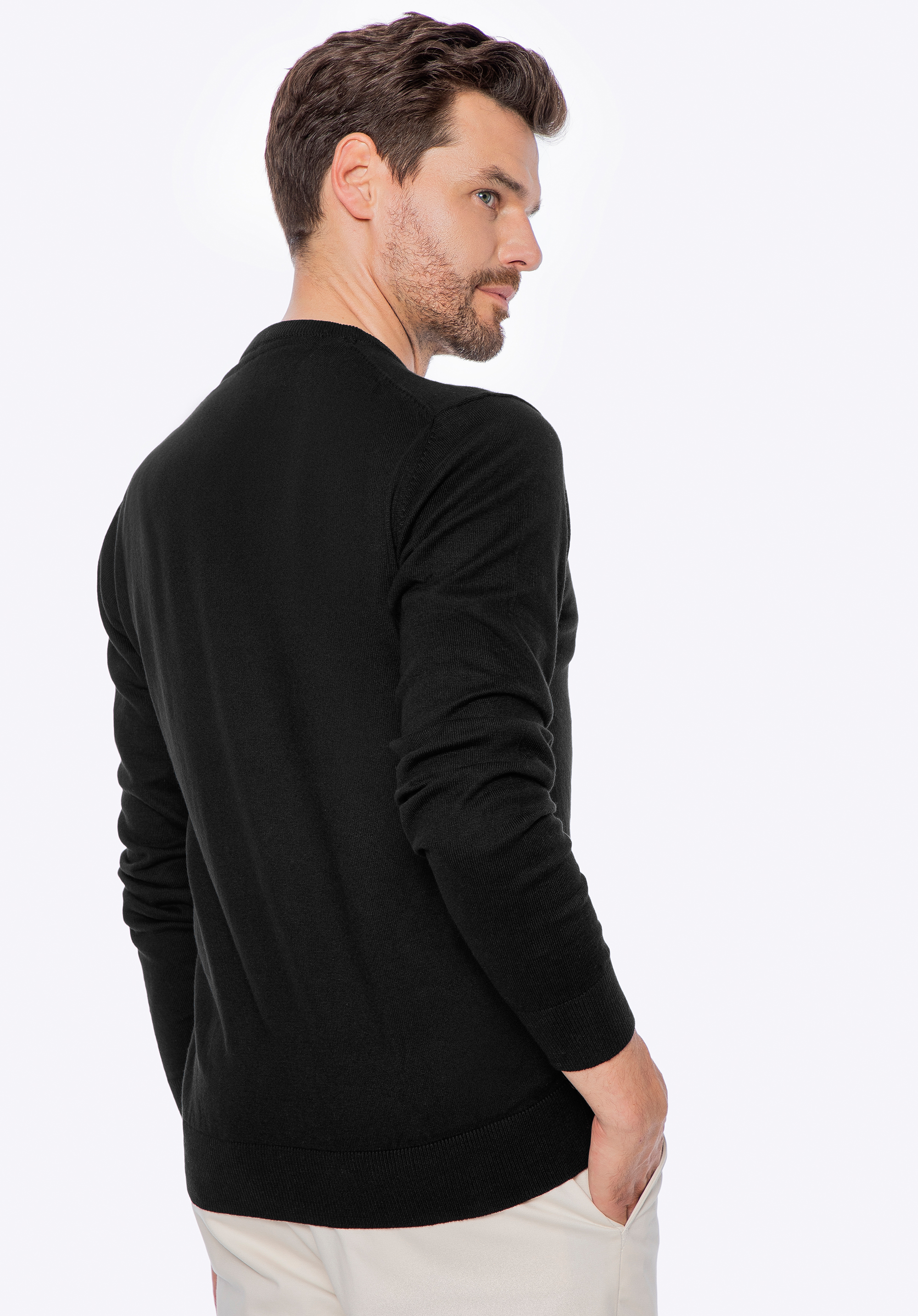 Férfi pamut és kasmír keverék pulóver Szín: fekete