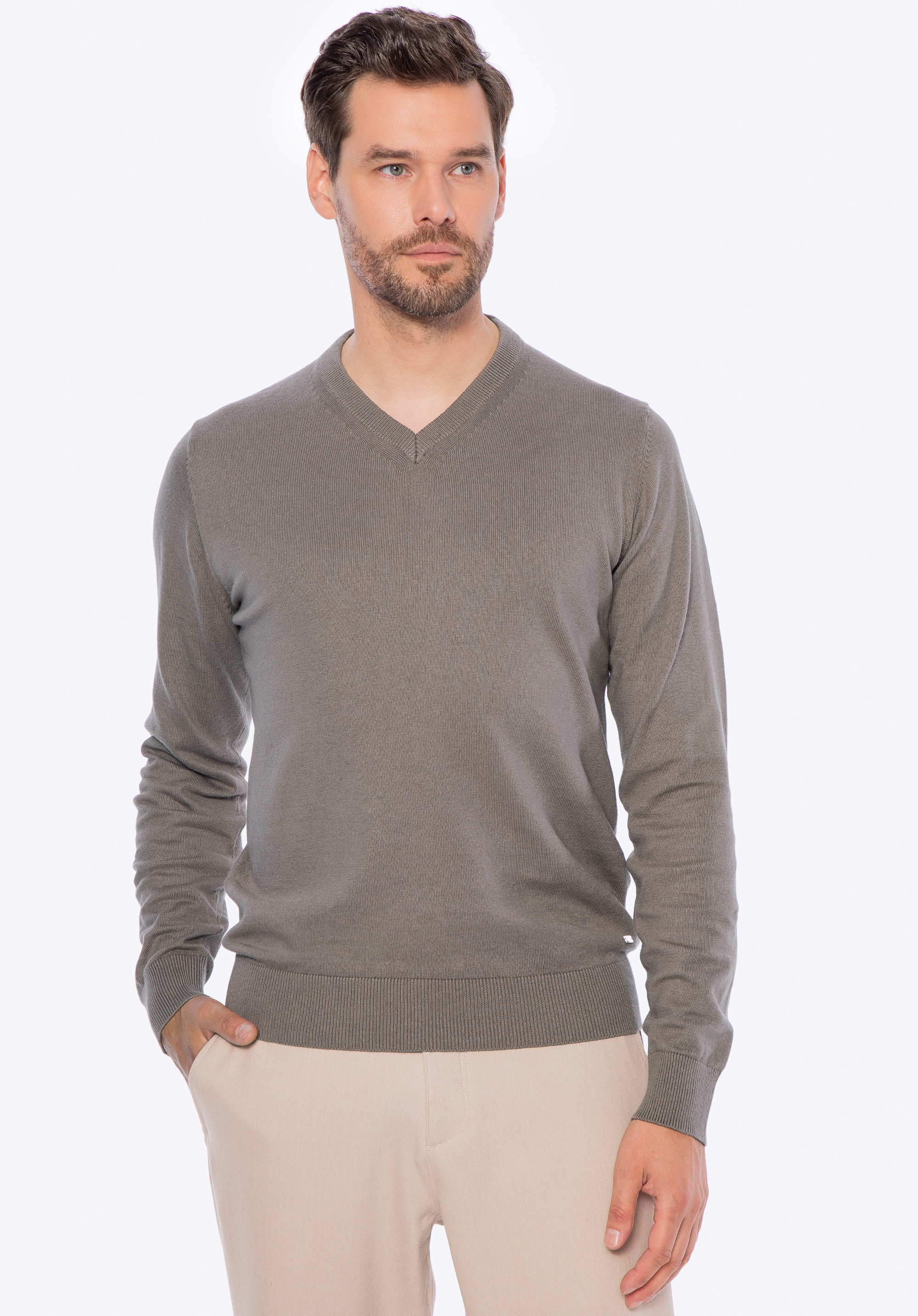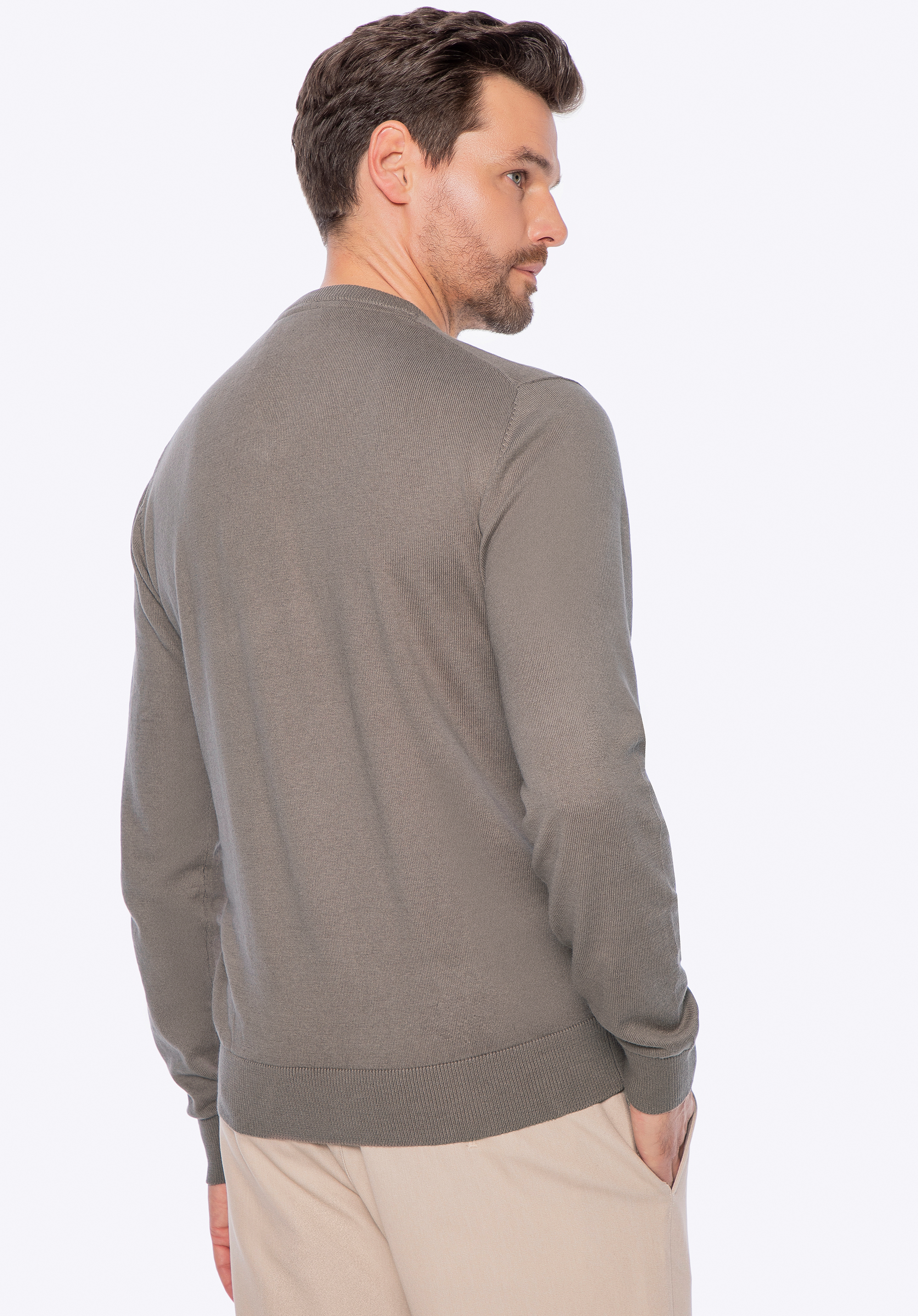 Ez a pulóver tökéletes választás azoknak a férfiaknak, akik értékelik a kényelmet, az egyszerűséget és a kifogástalan kidolgozást. Kiváló minőségű pamutból , egy csipetnyi kasmírral készült, puhaságával és természetes légáteresztő képességével kápráztat el, kellemes meleget biztosítva a hideg napokon. A klasszikus, enyhén testhezálló szabás gyönyörűen ráesik a sziluettre, míg a finom kidolgozású V-nyak kifinomult jelleget kölcsönöz neki. Ez a fazon könnyen kombinálható különféle öltözékekkel – mind hétköznapi, mind elegánsabb viseletekkel.