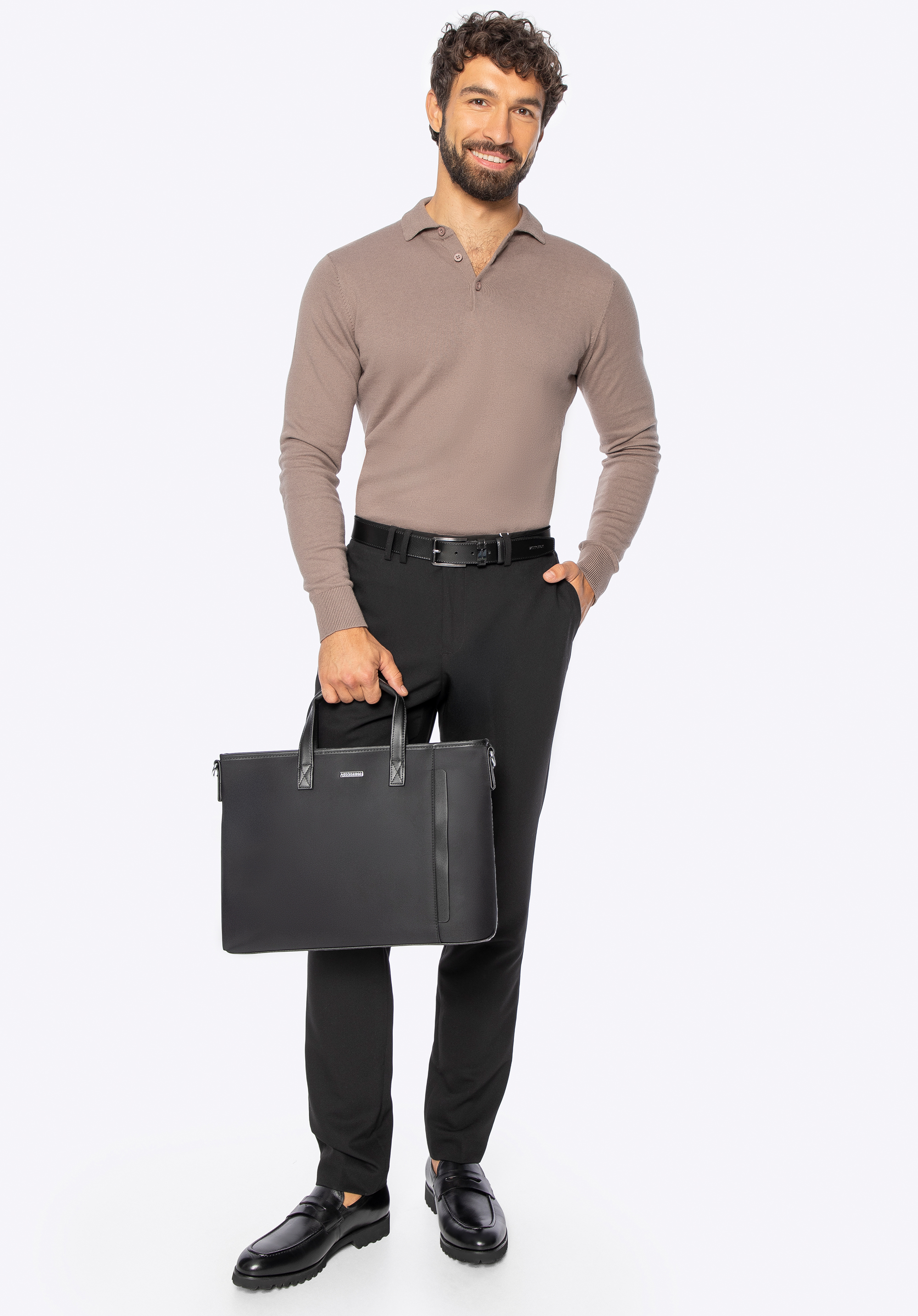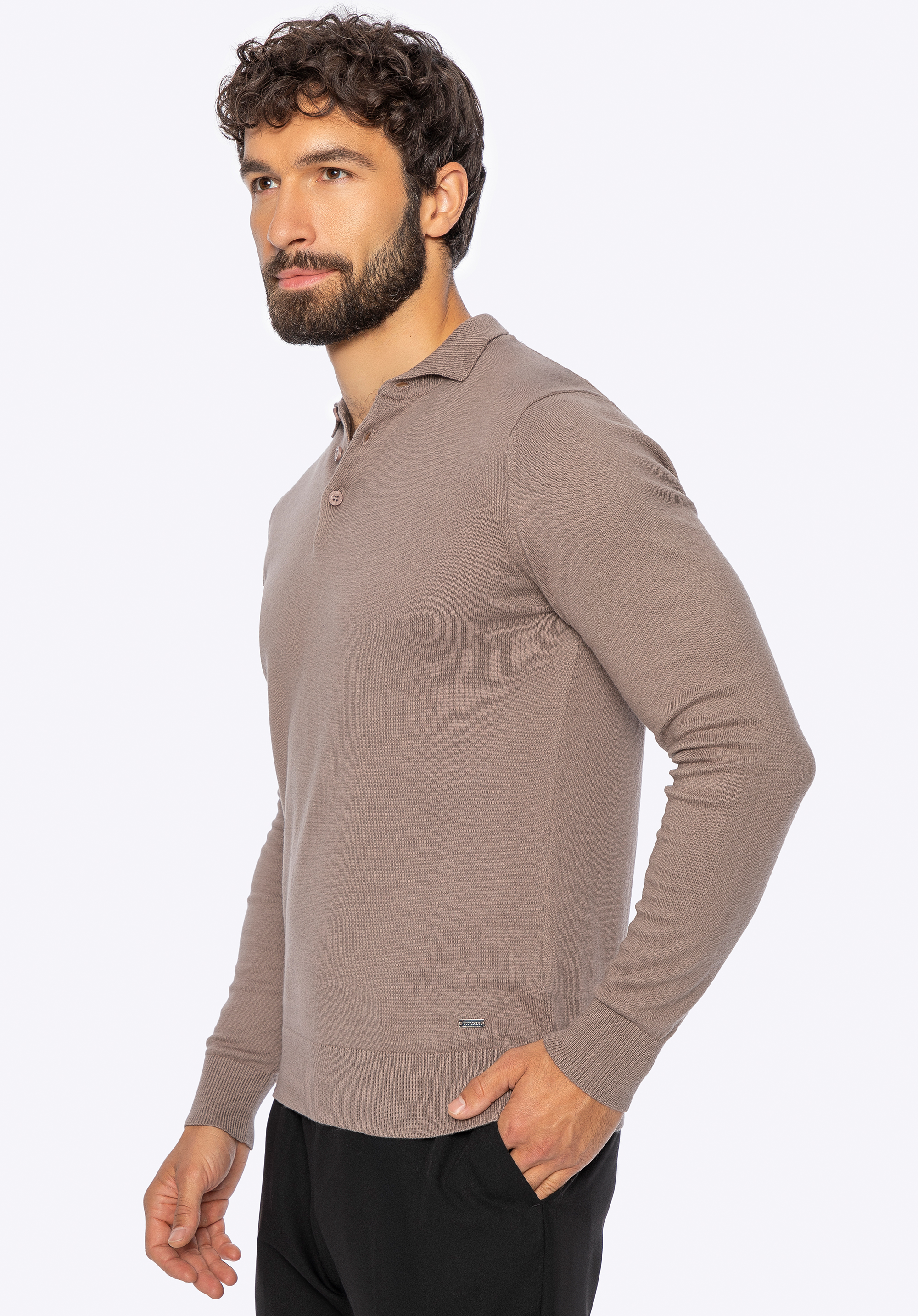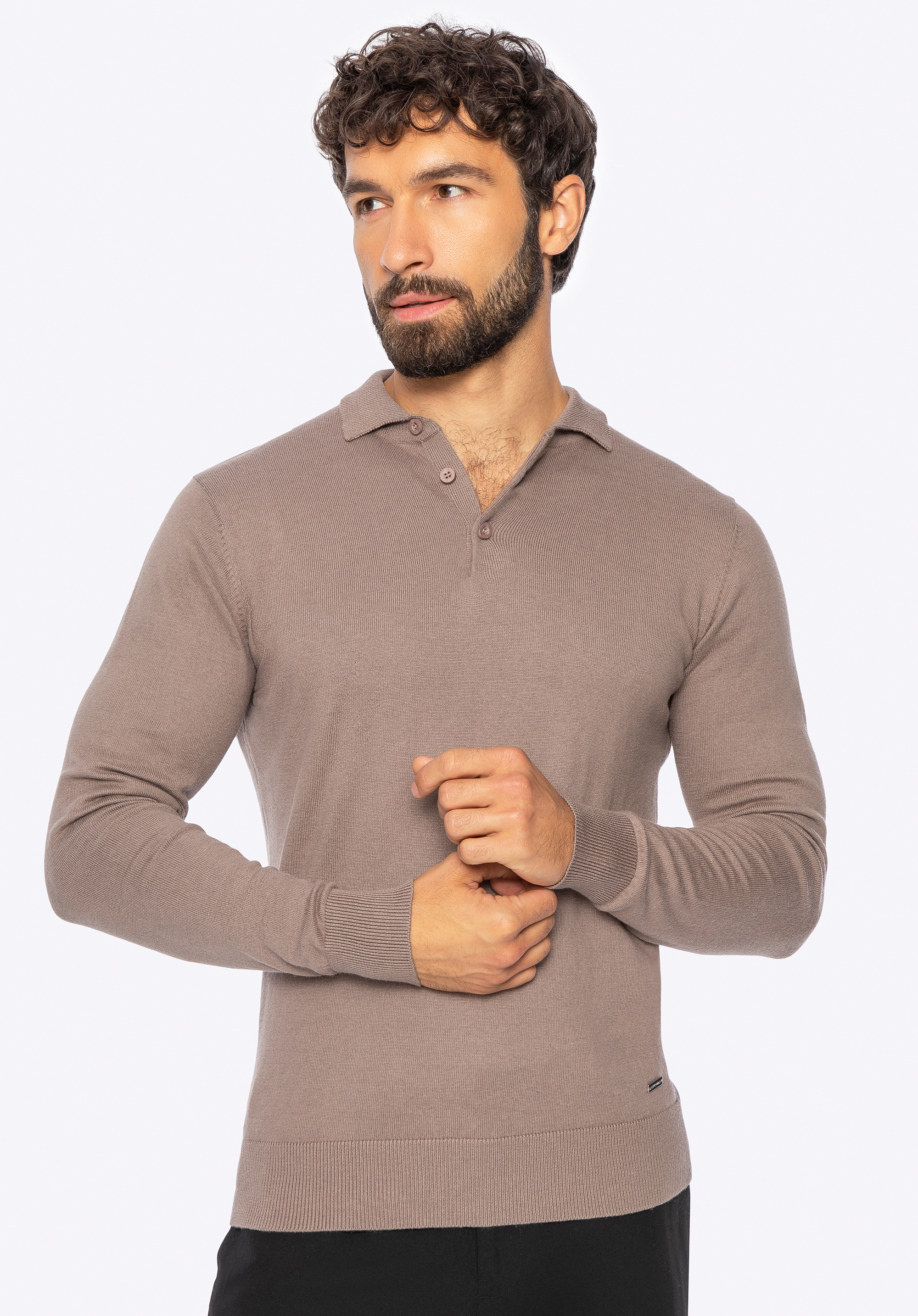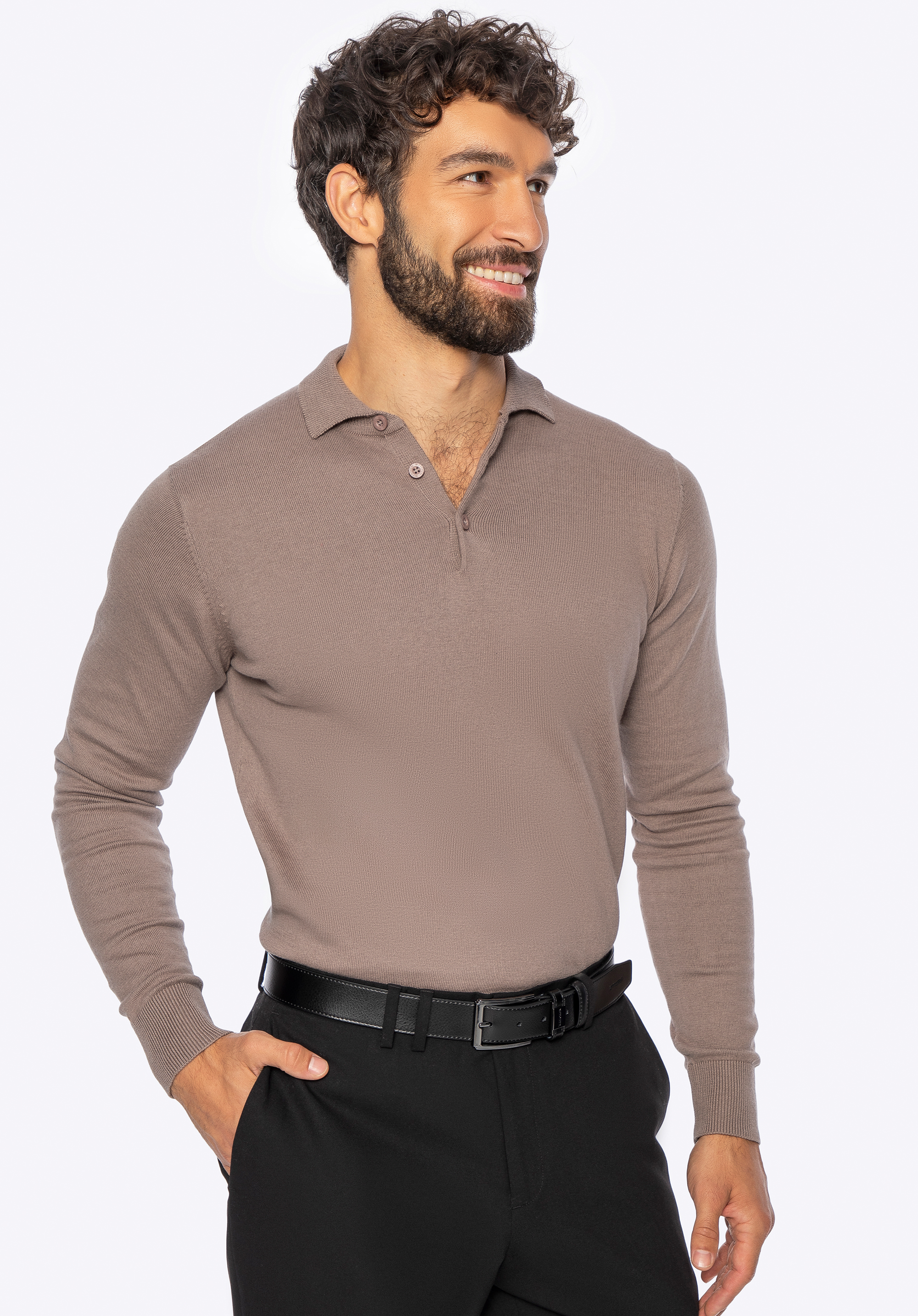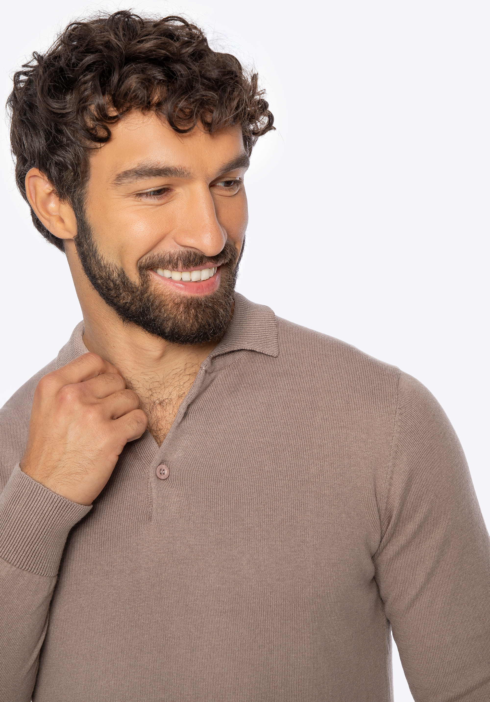 Finom, mindennapi luxus – ez a férfi hosszú ujjú pulóver az időtlen klasszikusok előtt tiszteleg, amelyet minden olyan férfi értékel, aki értékeli a kényelmet és a minőséget. Puha, kasmírral kevert pamutból készült, így melegen ölel körül, miközben természetes légáteresztő képességet biztosít – tökéletes a hűvösebb napokra. Legfontosabb jellemzője az elegáns gallér gombos nyakkivágással – egyetlen mozdulattal laza megjelenést kölcsönözhetsz egy kifinomultabb, elegánsabb-lezserebb stílusnak. Az alsó szélén található diszkrét fém logó teszi teljessé a dizájnt – egy apró részlet, amely sokat elárul a minőségről.
