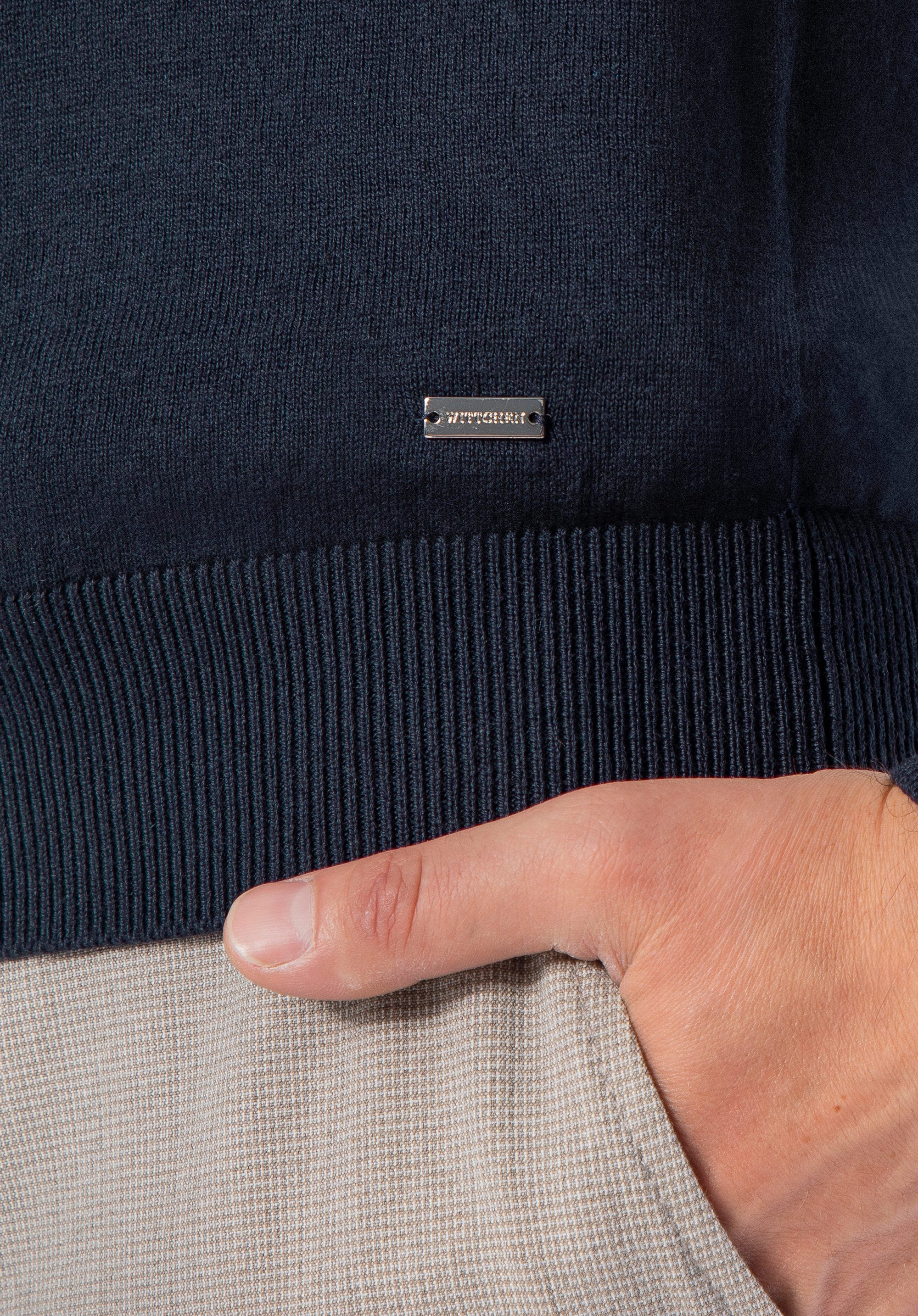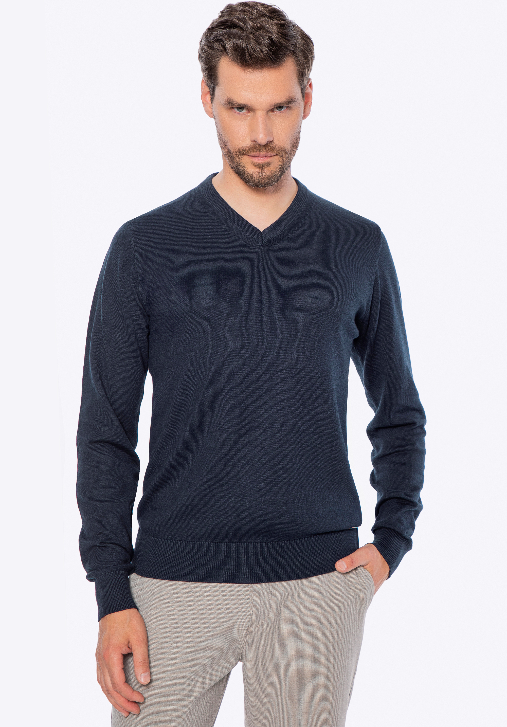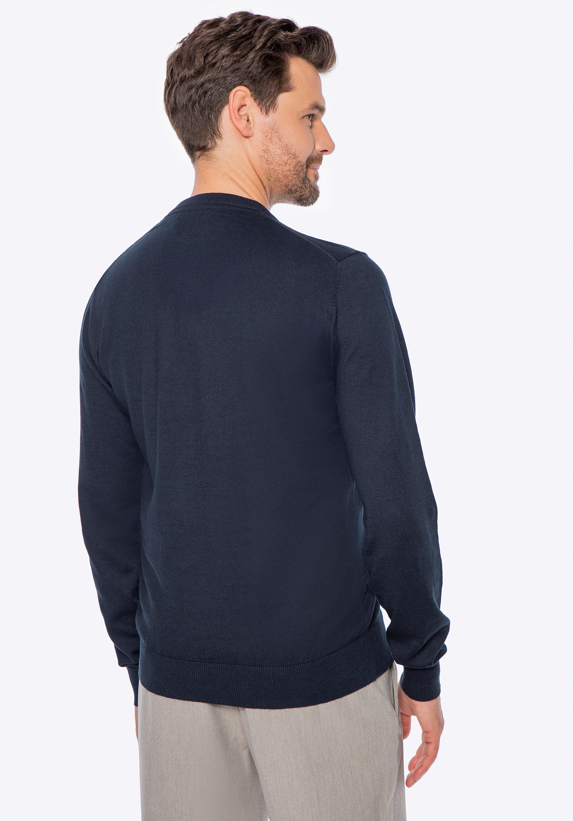 Ez a pulóver tökéletes választás azoknak a férfiaknak, akik értékelik a kényelmet, az egyszerűséget és a kifogástalan kidolgozást. Kiváló minőségű pamutból , egy csipetnyi kasmírral készült, puhaságával és természetes légáteresztő képességével kápráztat el, kellemes meleget biztosítva a hideg napokon. A klasszikus, enyhén testhezálló szabás gyönyörűen ráesik a sziluettre, míg a finom kidolgozású V-nyak kifinomult jelleget kölcsönöz neki. Ez a fazon könnyen kombinálható különféle öltözékekkel – mind hétköznapi, mind elegánsabb viseletekkel.